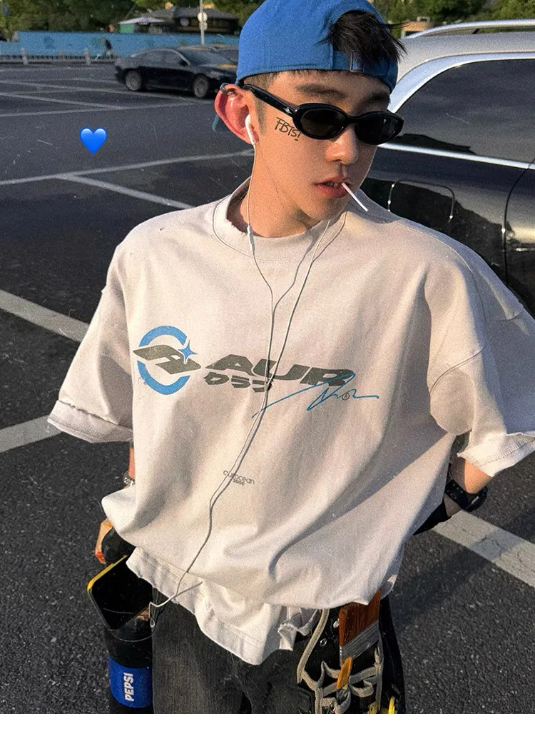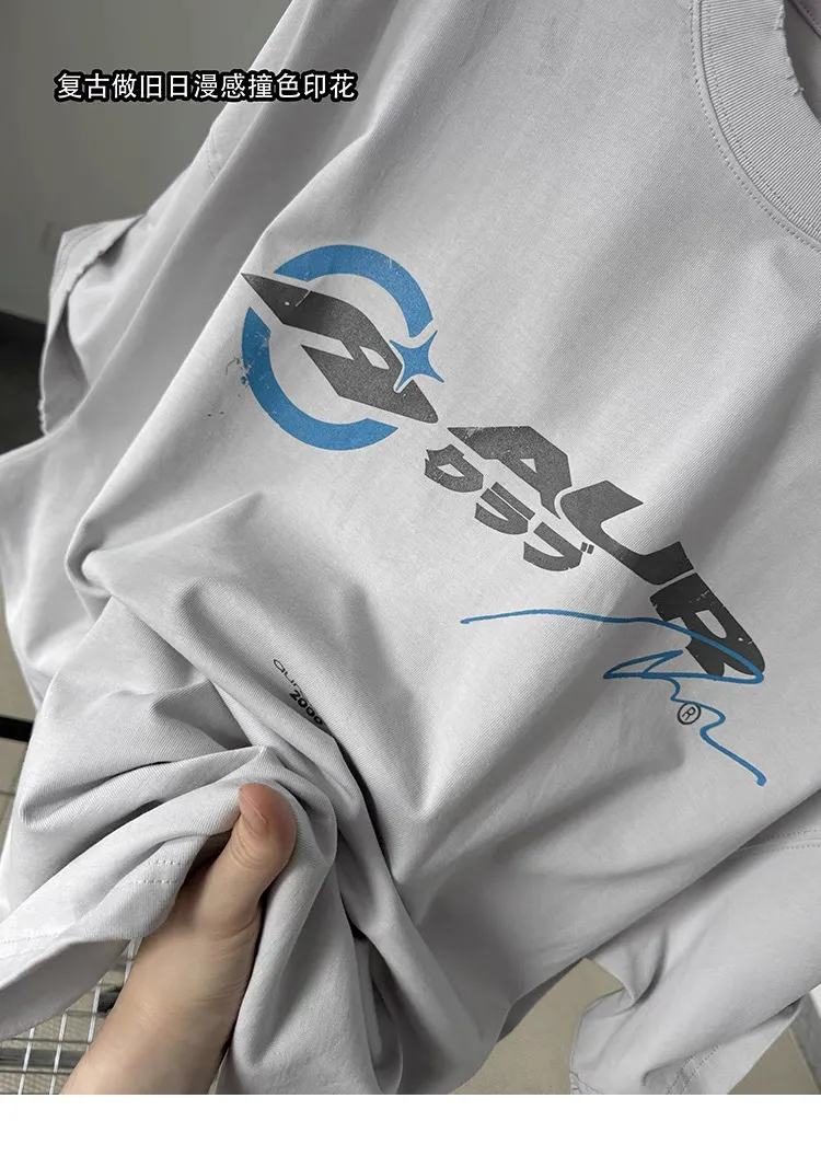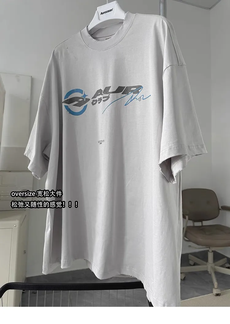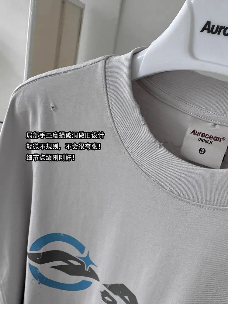 AUROCEAN 千禧少年 油墨印花 做舊破壞 短袖(灰白)