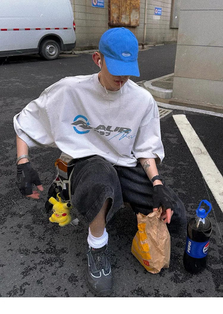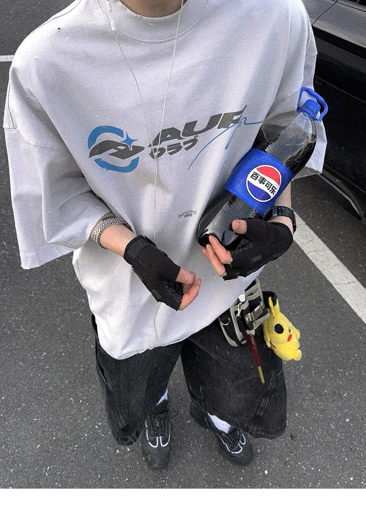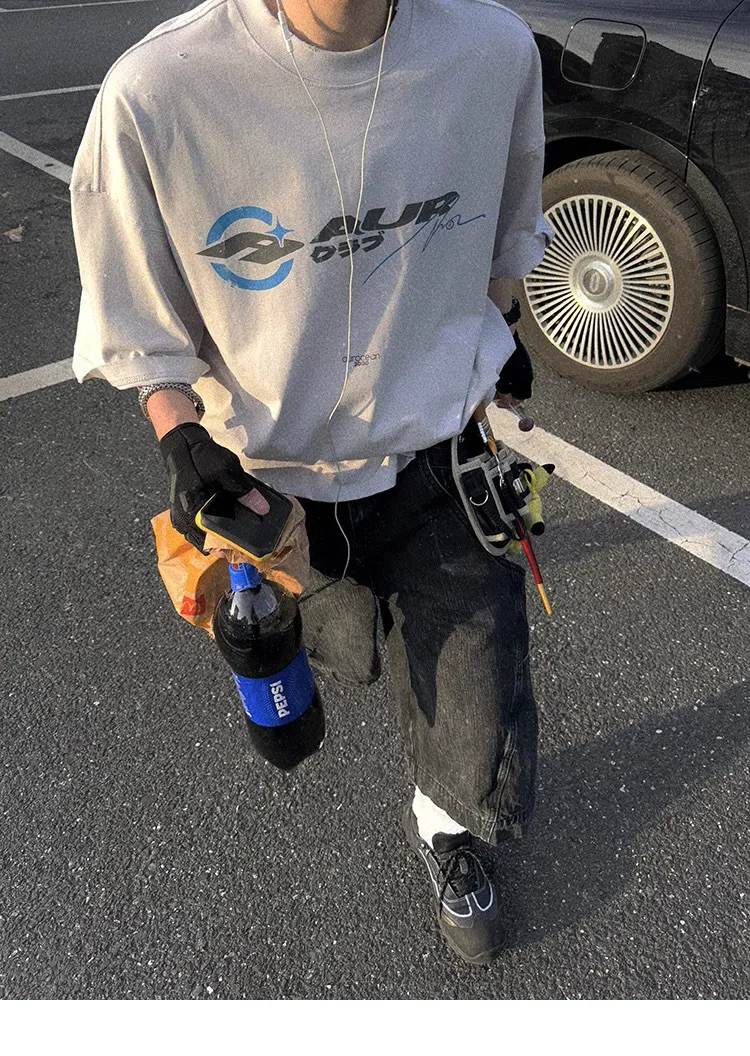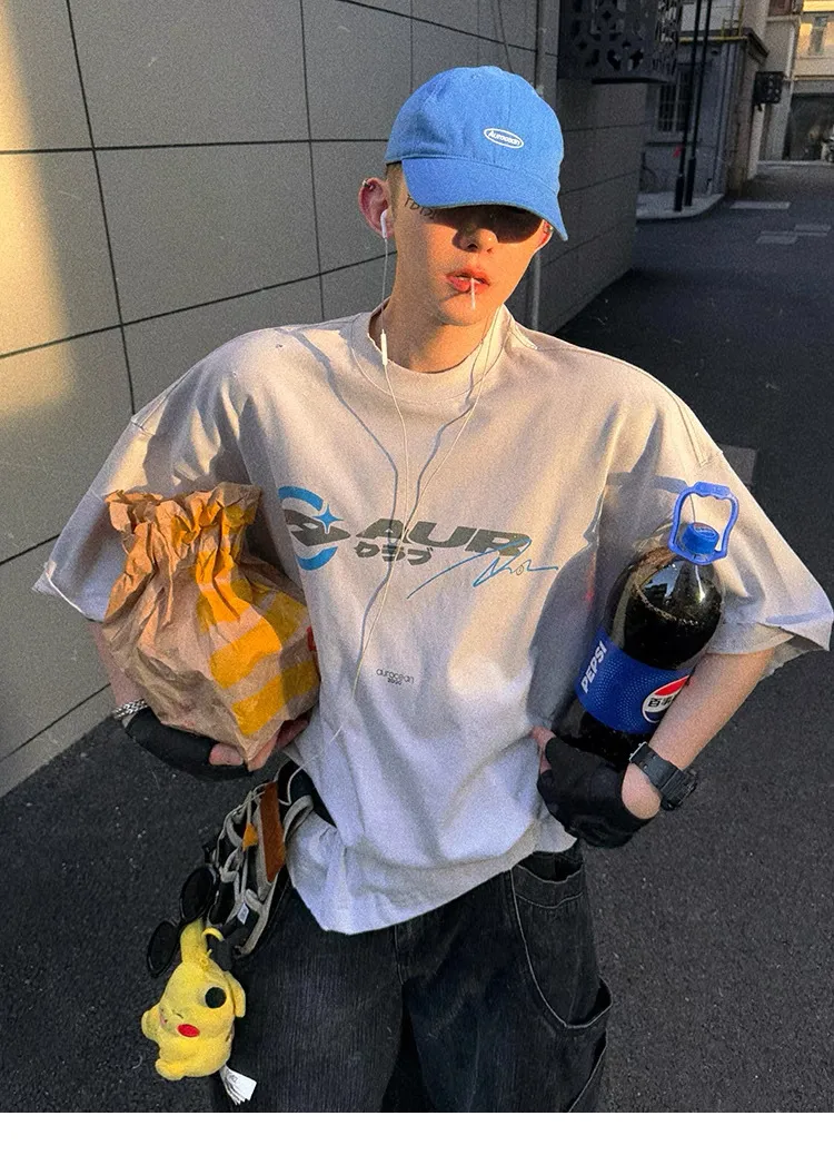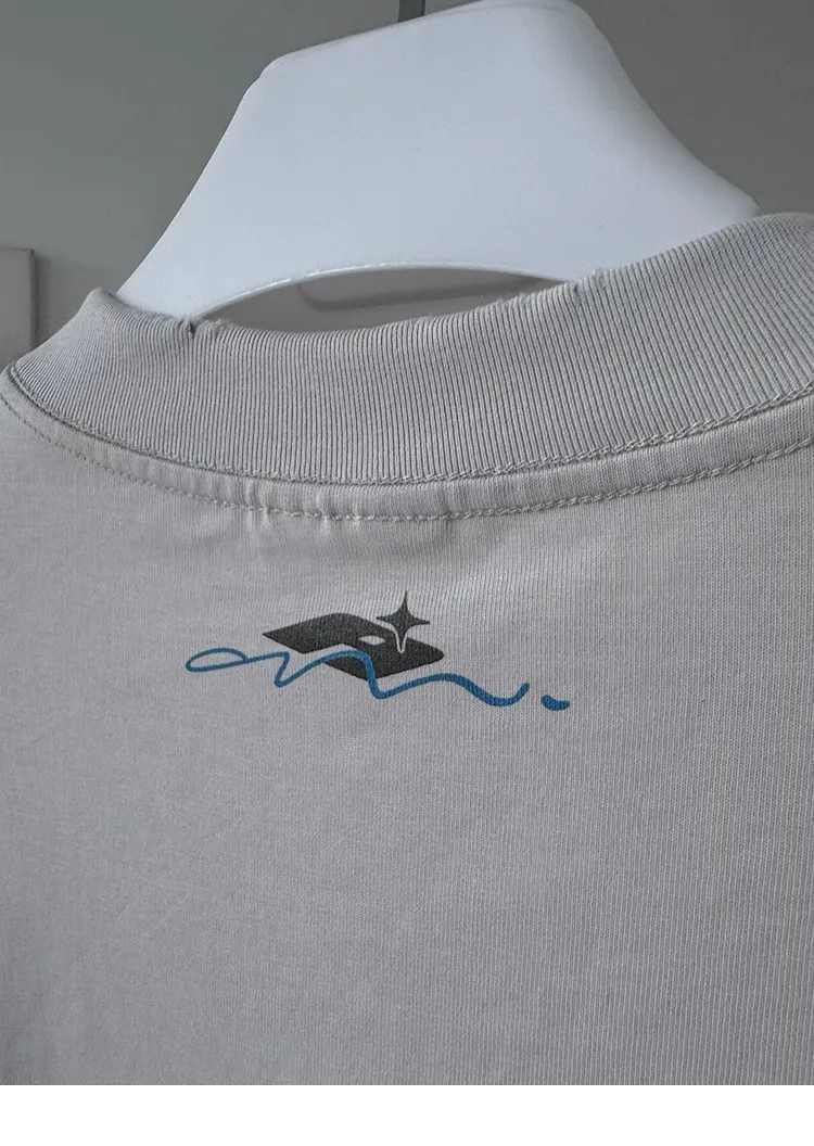 AUROCEAN 千禧少年 油墨印花 做舊破壞 短袖(灰白)