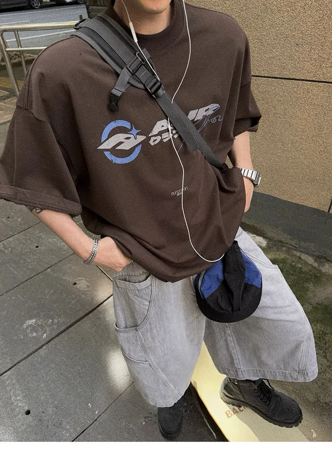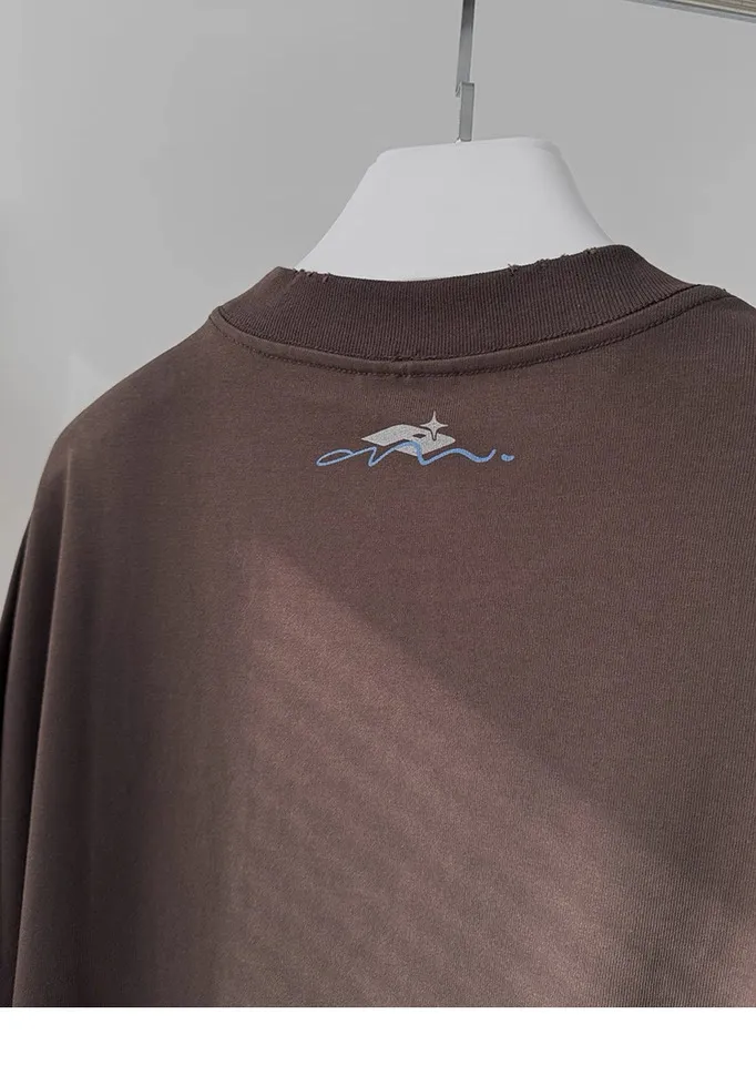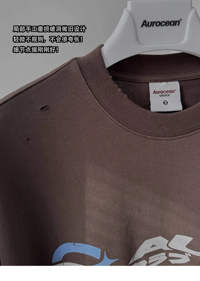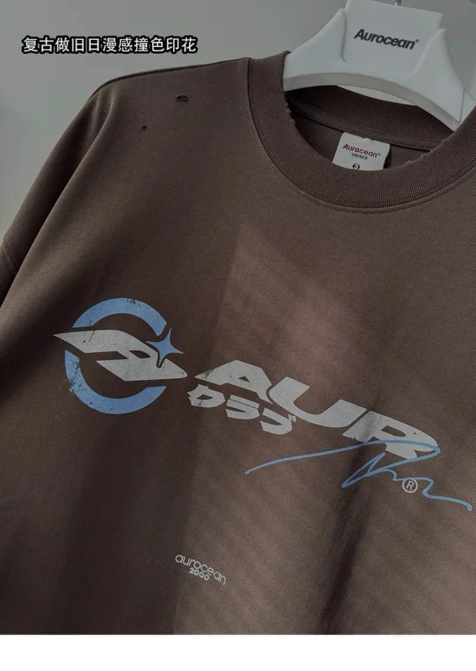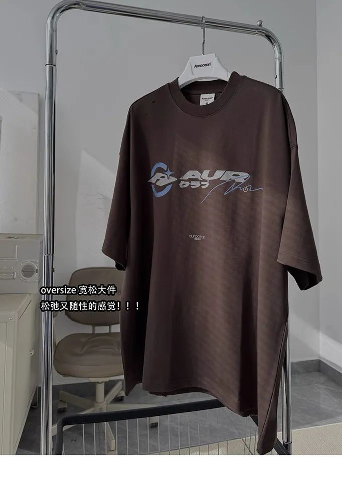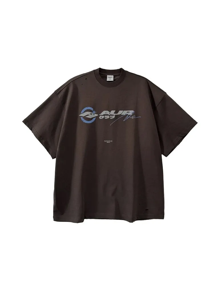 AUROCEAN 千禧少年 油墨印花 做舊破壞 短袖(深咖)