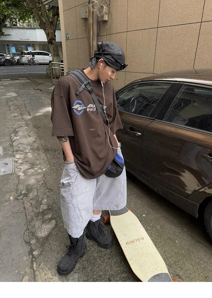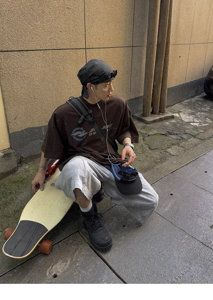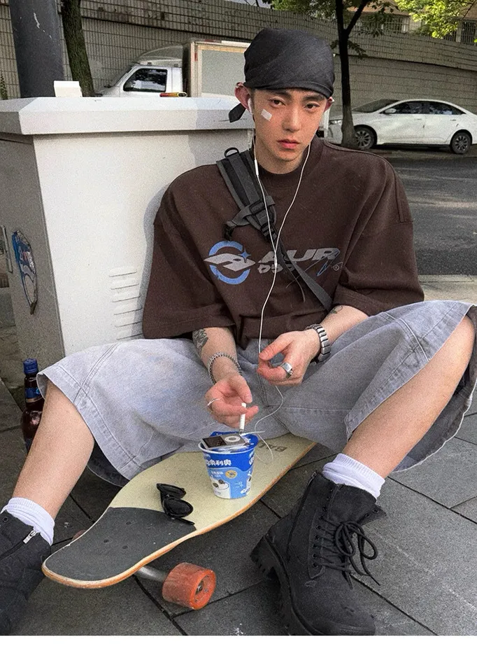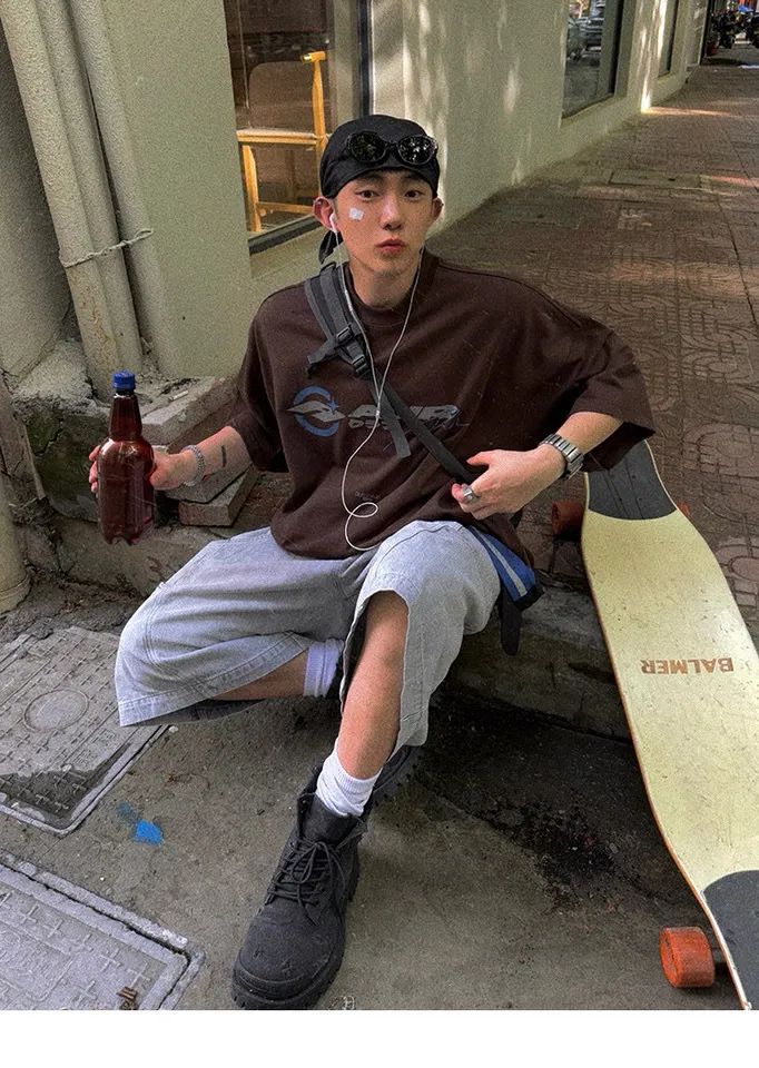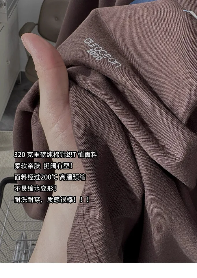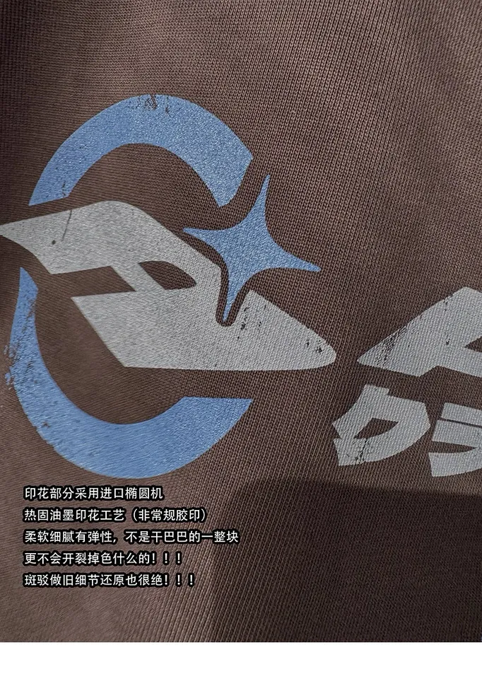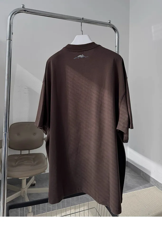 AUROCEAN 千禧少年 油墨印花 做舊破壞 短袖(深咖)
