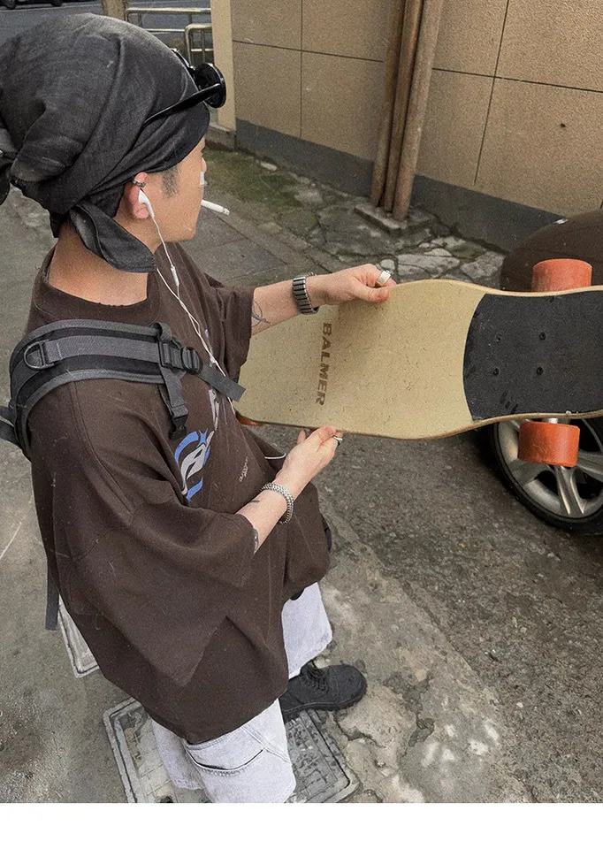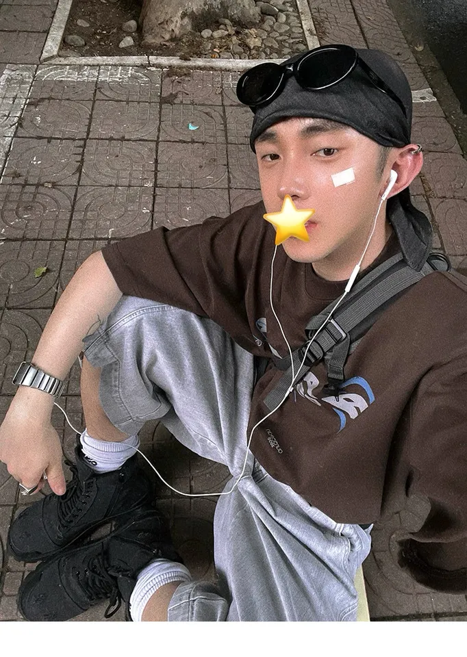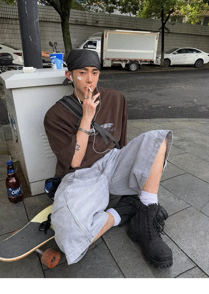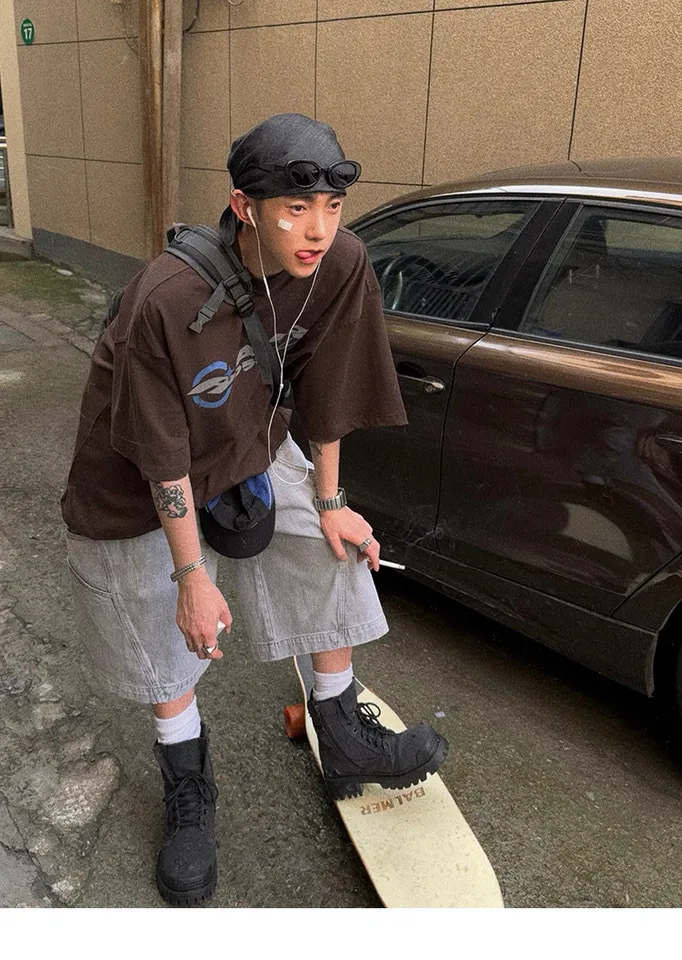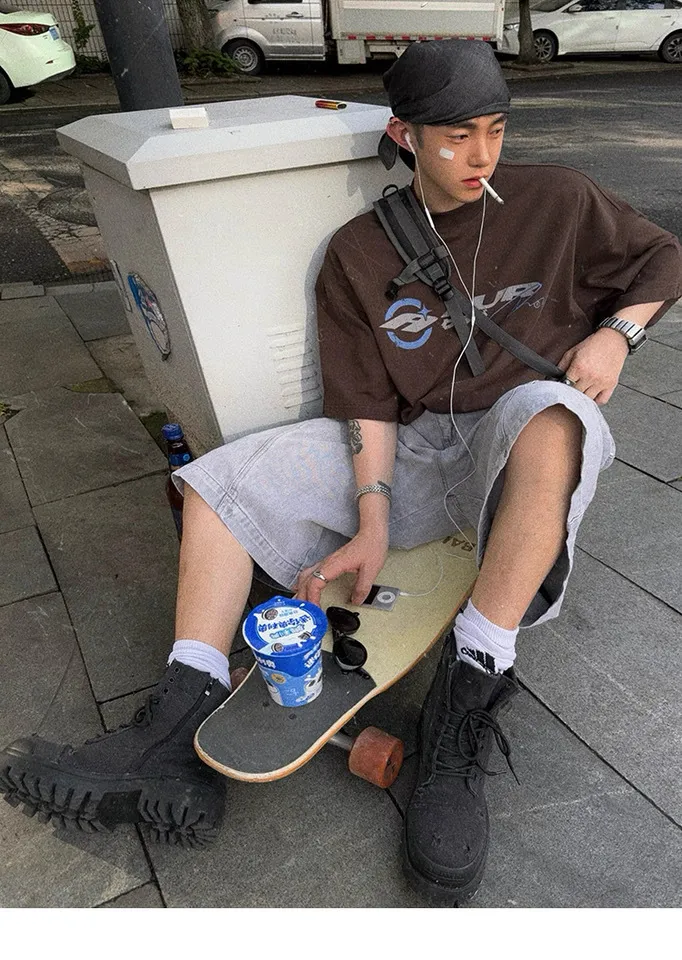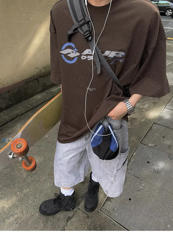 AUROCEAN 千禧少年 油墨印花 做舊破壞 短袖(深咖)
