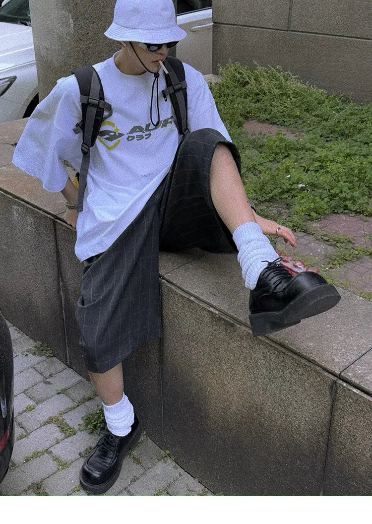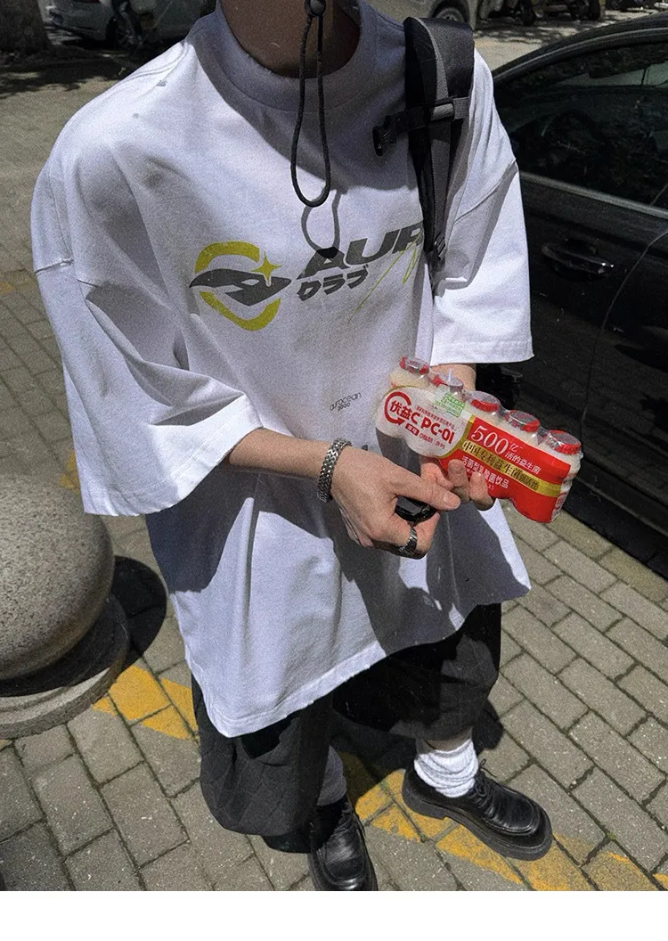 AUROCEAN 千禧少年 油墨印花 做舊破壞 短袖(灰白)