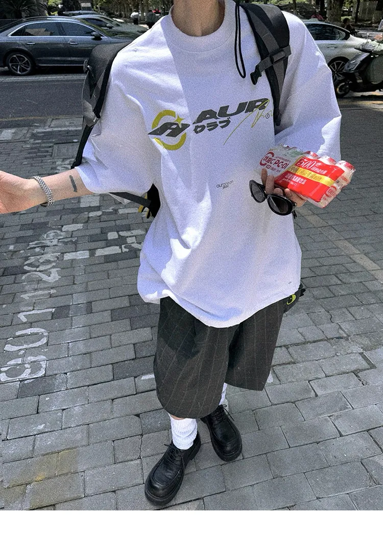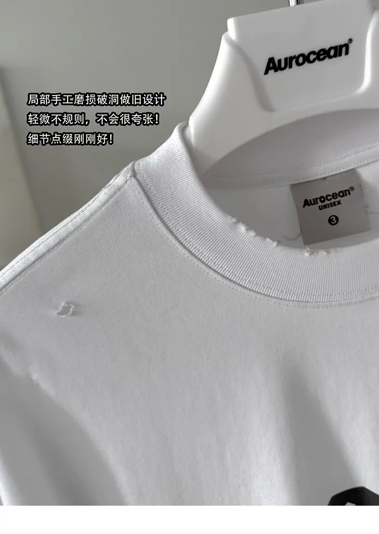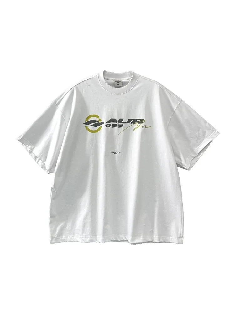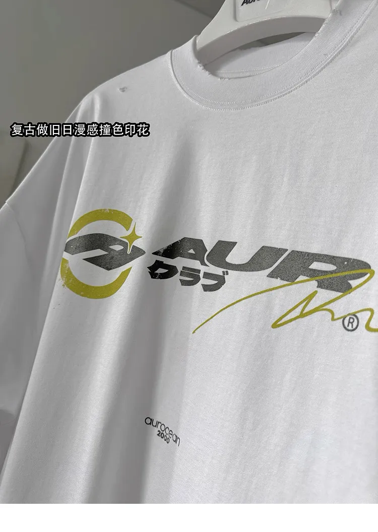 AUROCEAN 千禧少年 油墨印花 做舊破壞 短袖(白色)