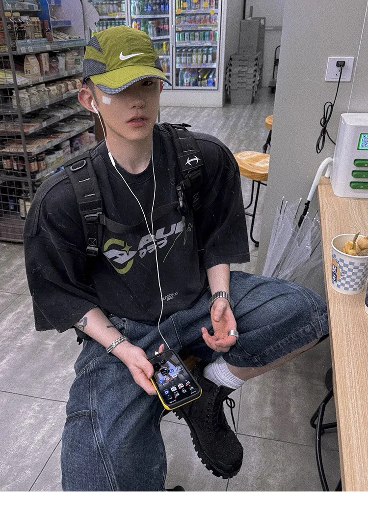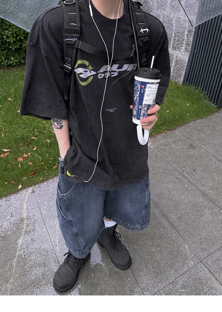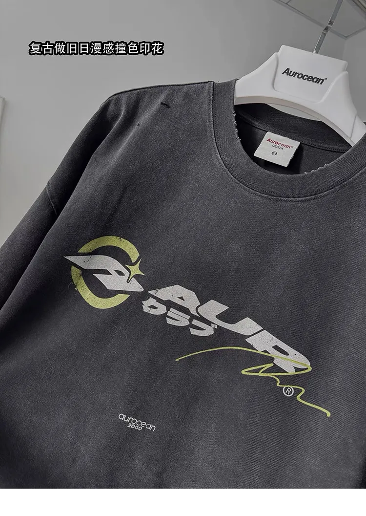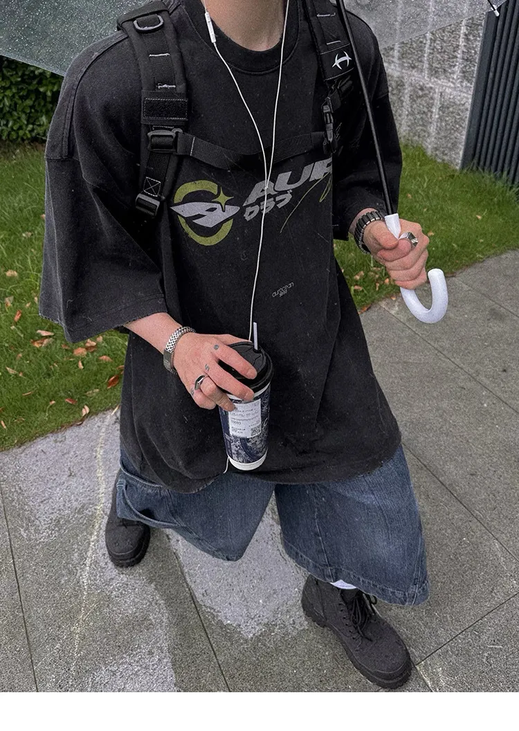 AUROCEAN 千禧少年 油墨印花 做舊破壞 短袖(黑色)