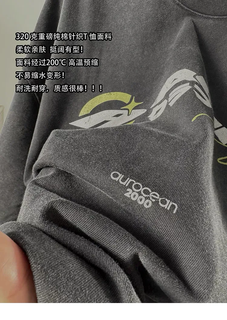 AUROCEAN 千禧少年 油墨印花 做舊破壞 短袖(灰白)