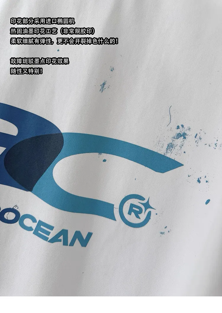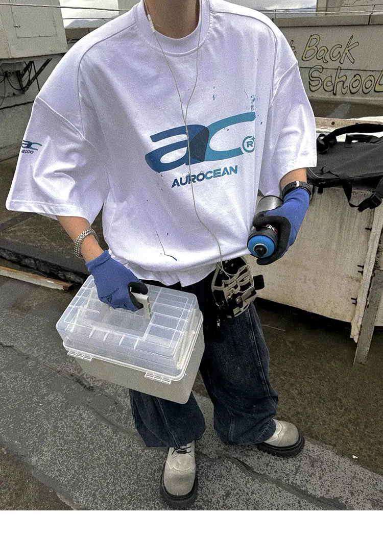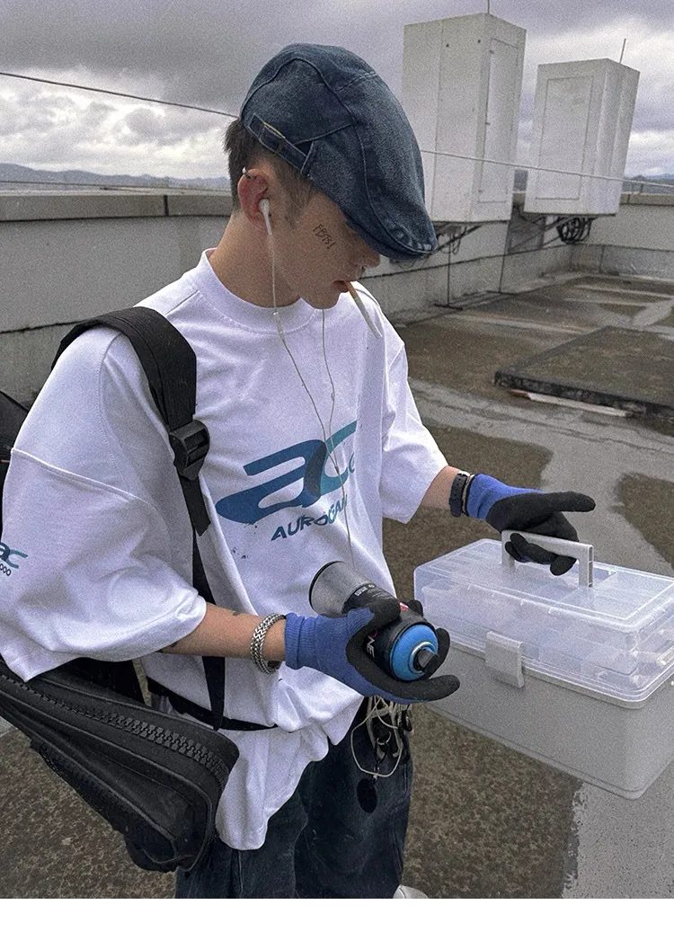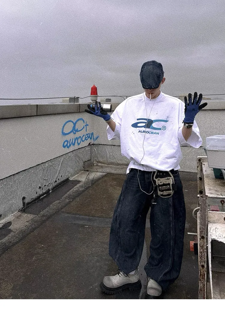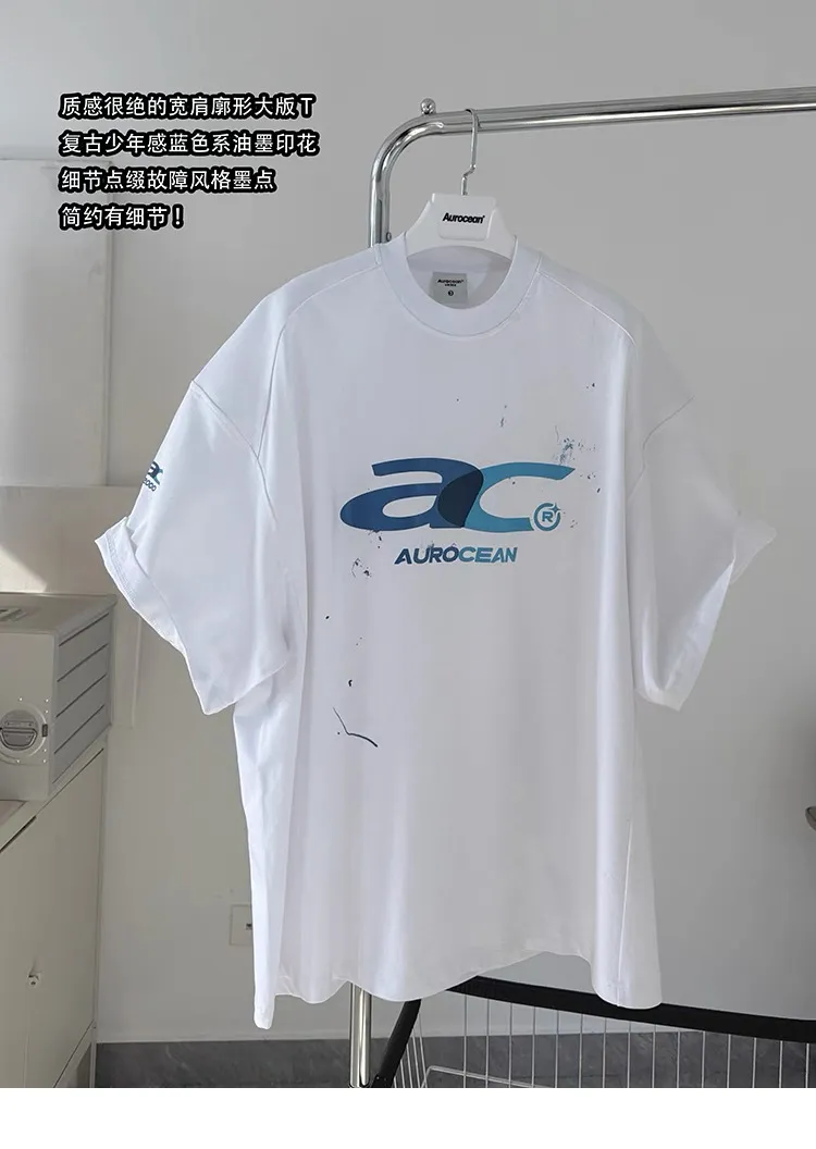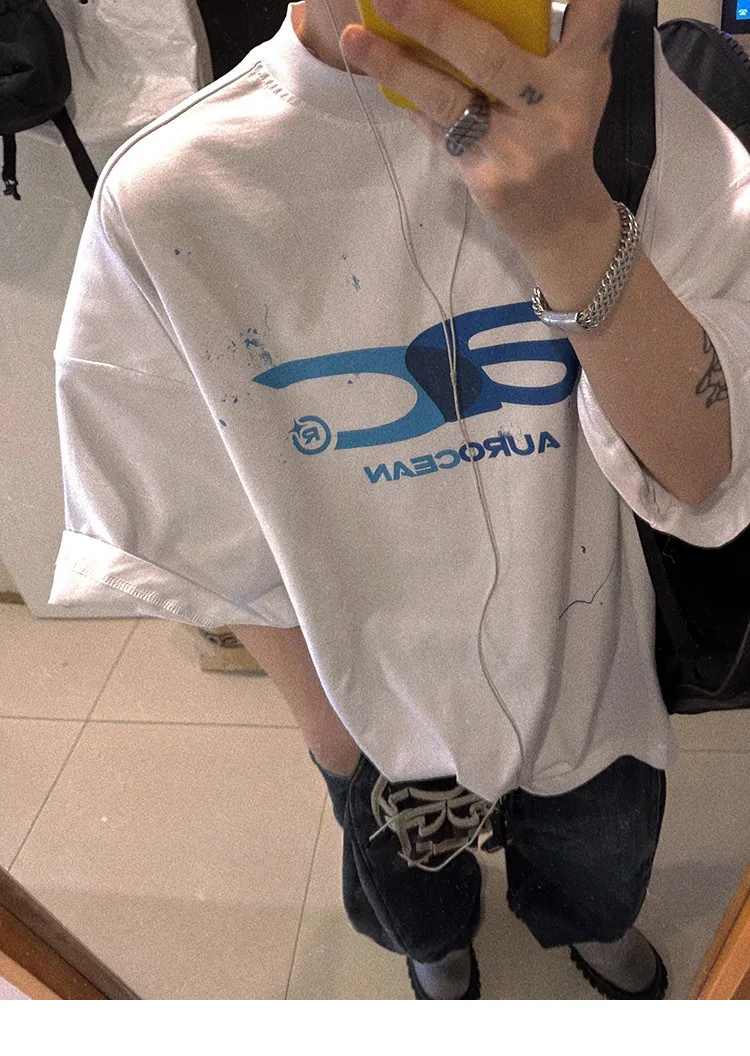AUROCEAN 千禧少年 油墨印花 做舊破壞 短袖(白色)