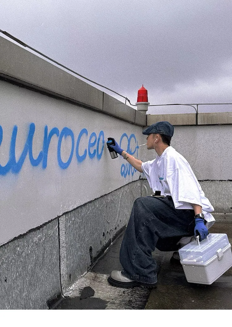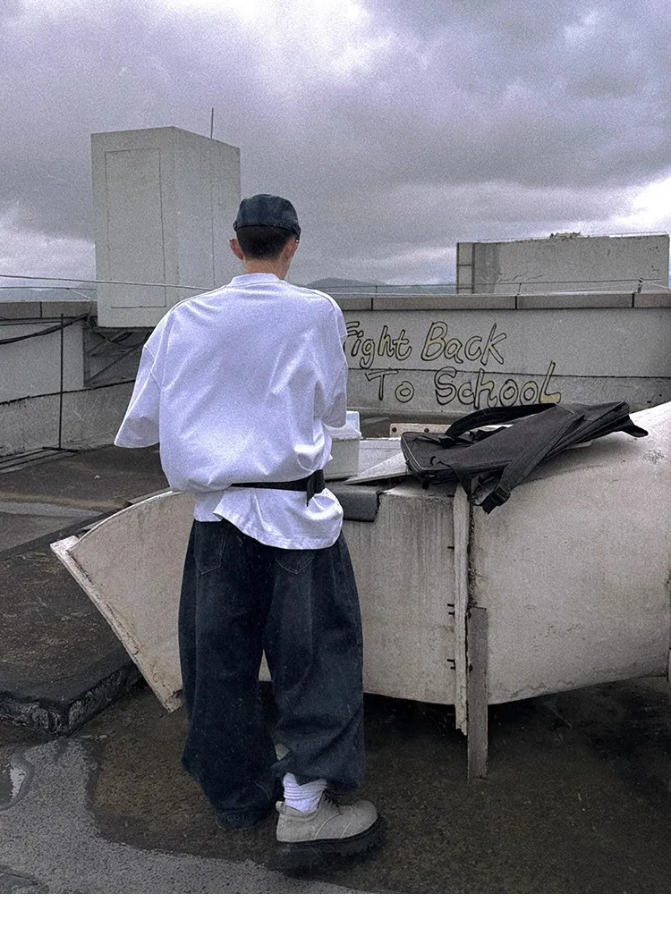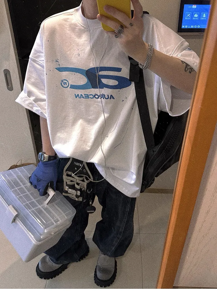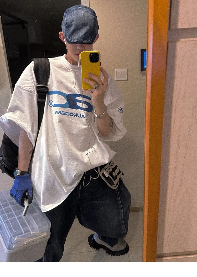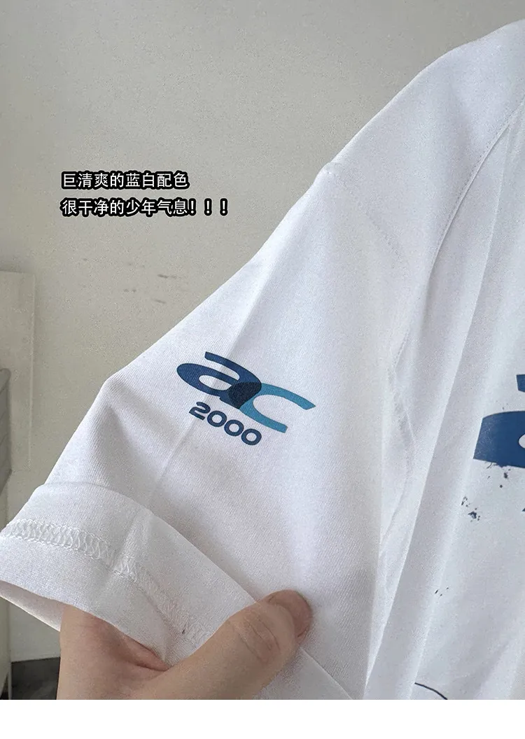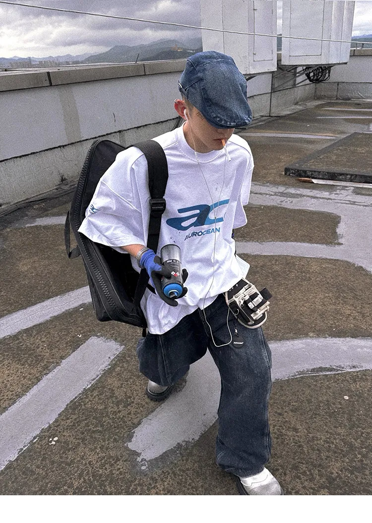 AUROCEAN 千禧少年 油墨印花 做舊破壞 短袖(白色)