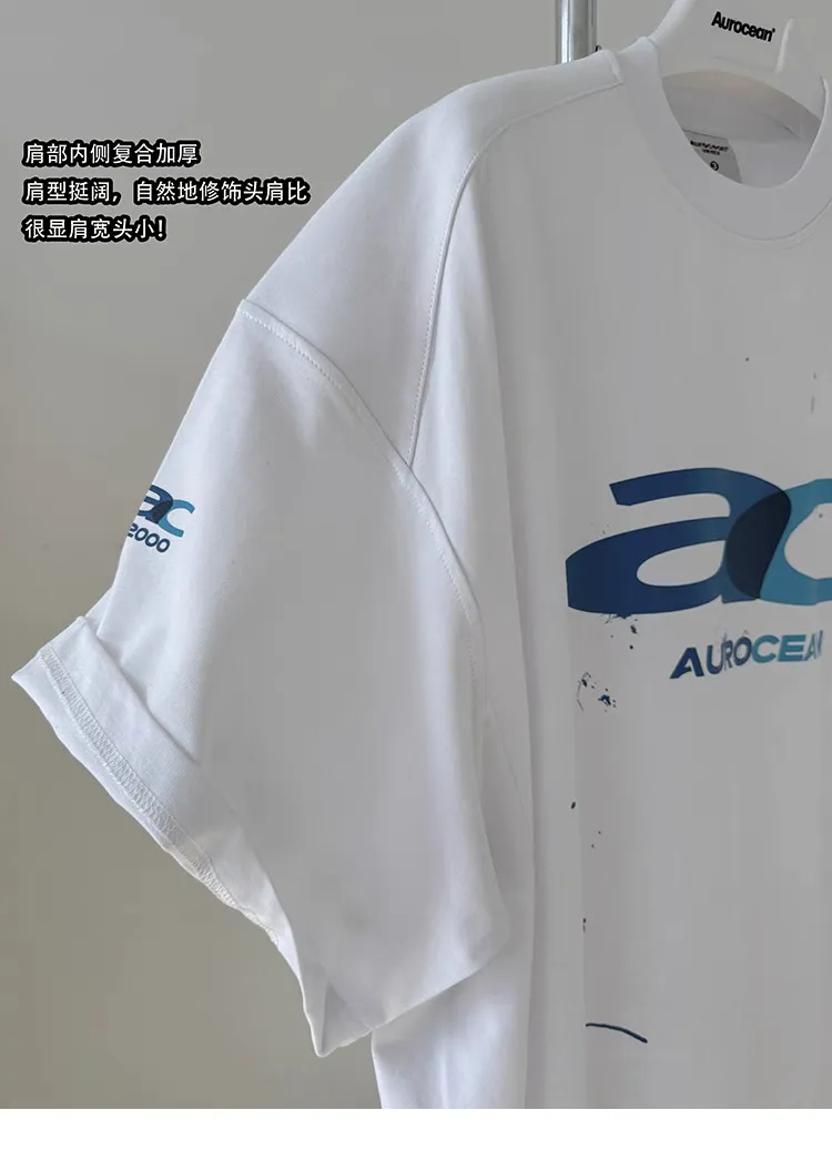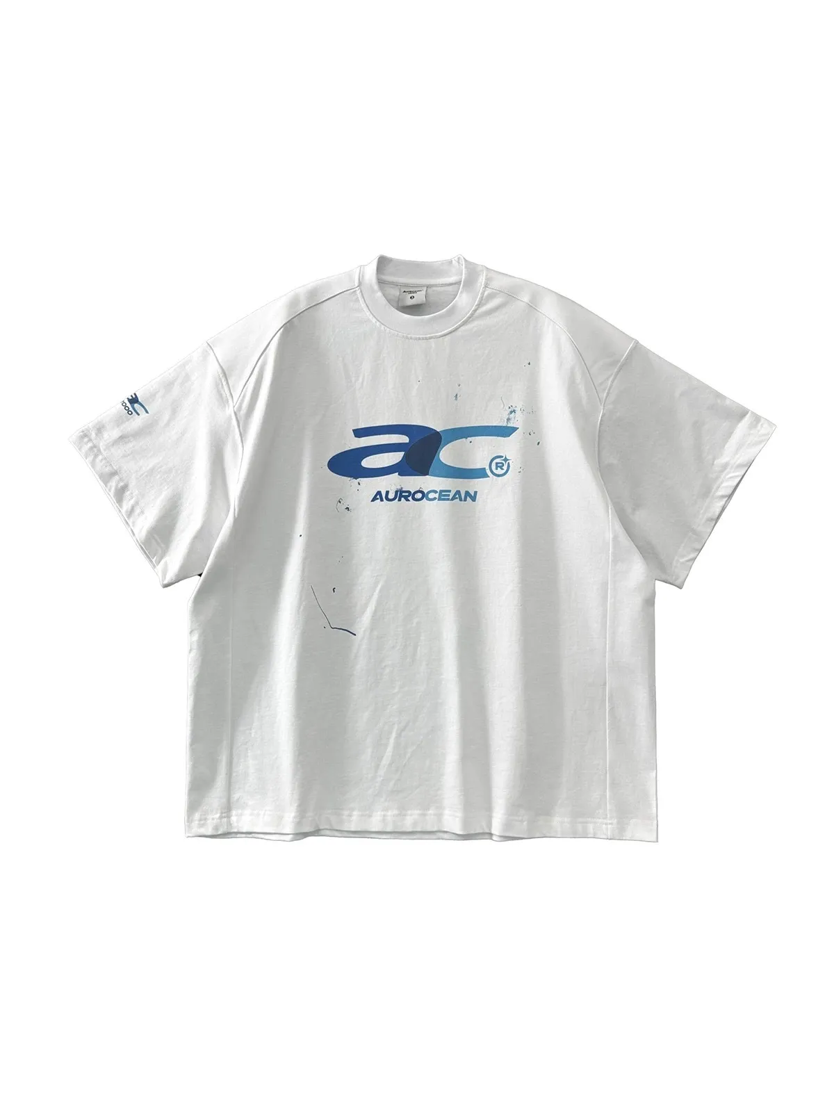 AUROCEAN 故障印花 油墨感 寬肩廓型 短袖(白色)