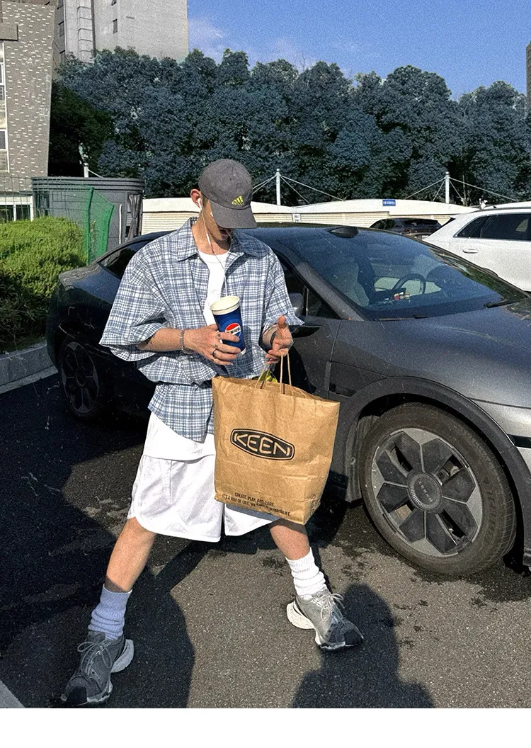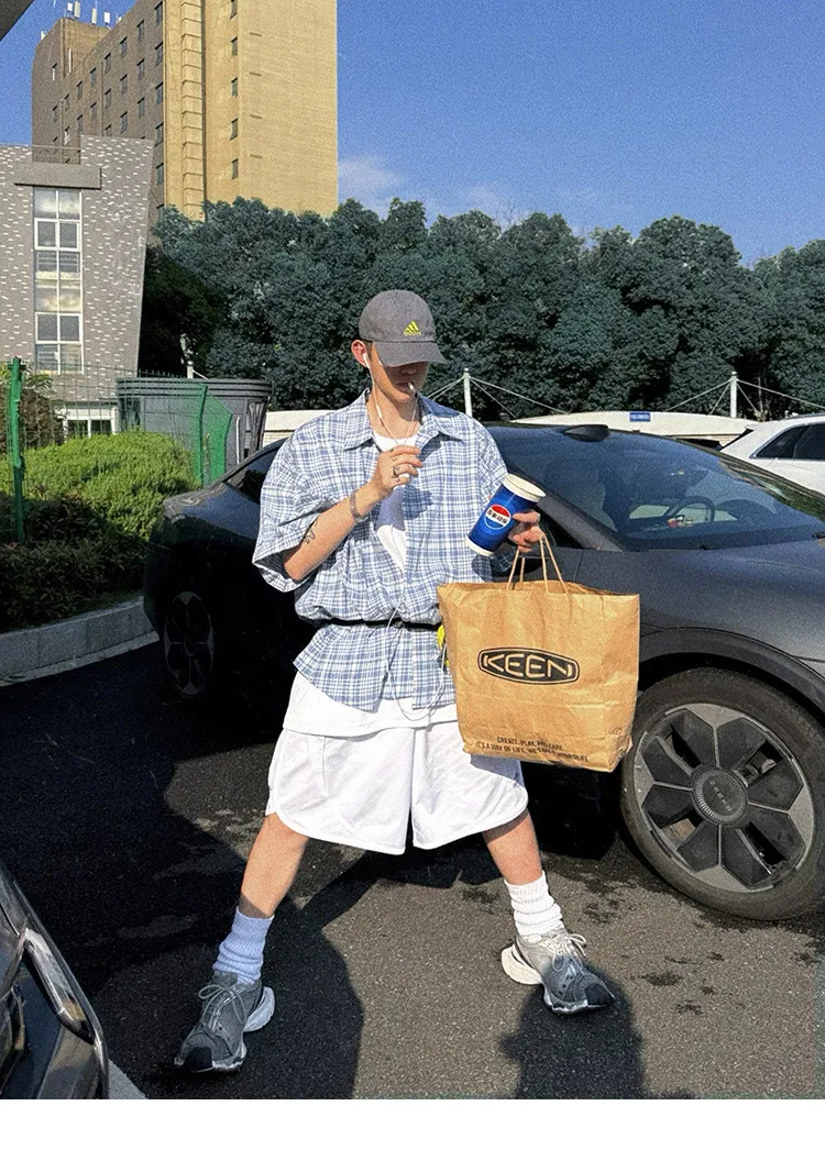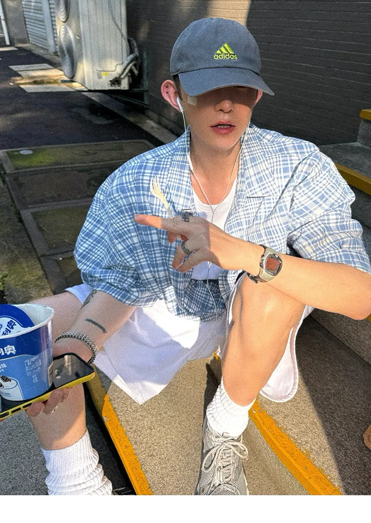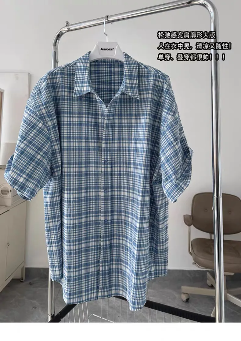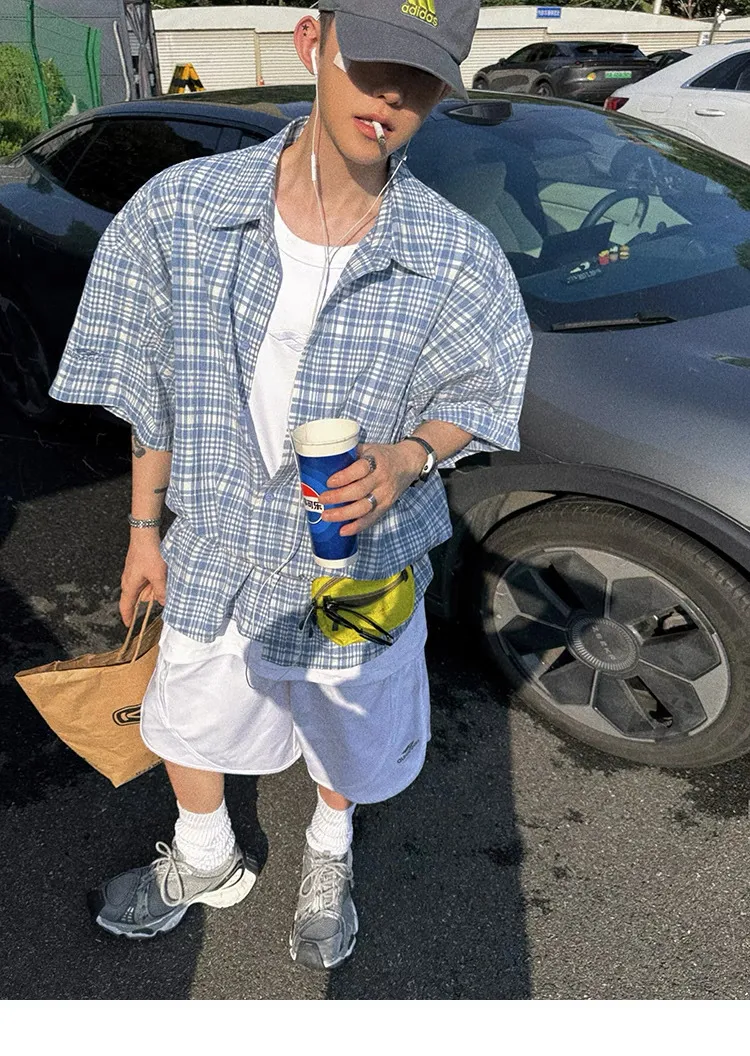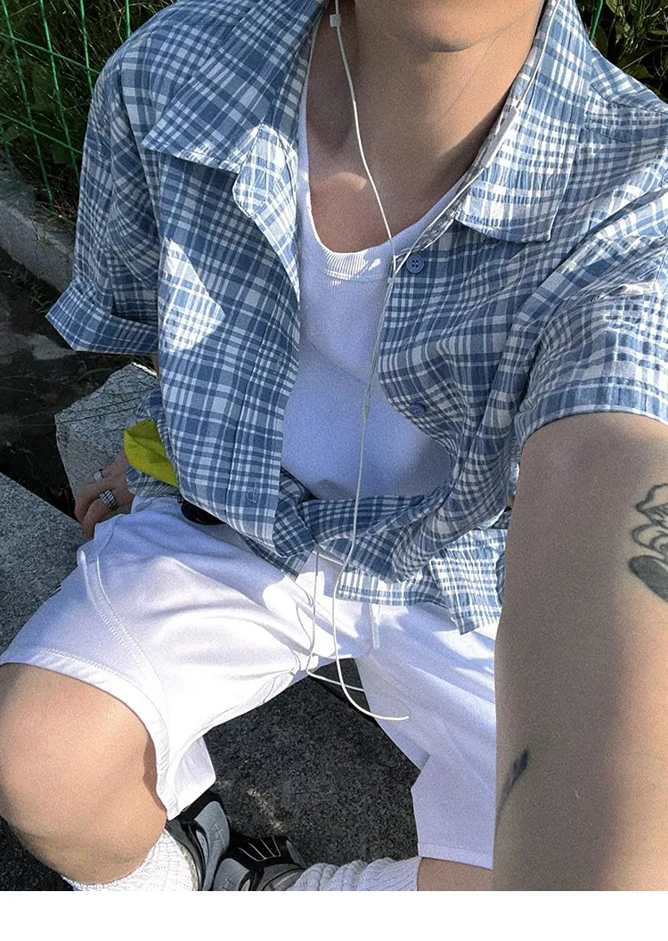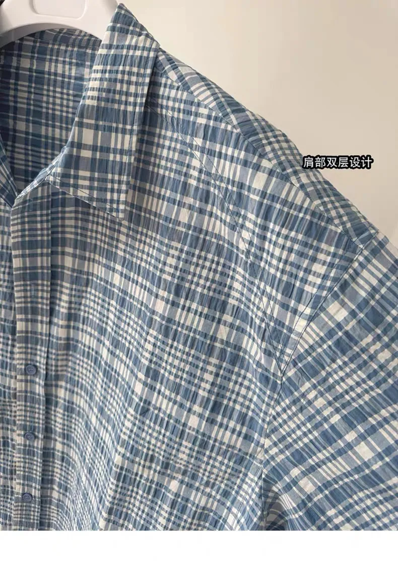 AUROCEAN MIU系穿搭 小格子 襯衫(淺藍)