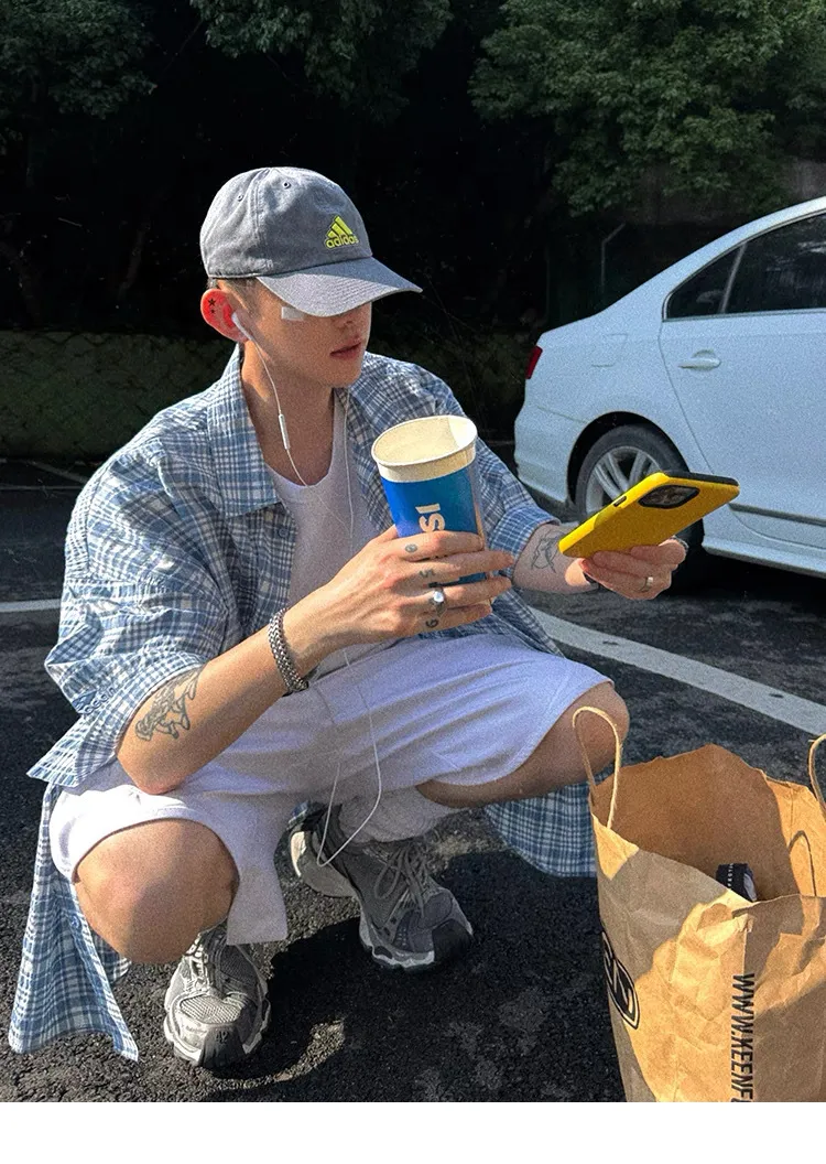 F4F OVERSIZE 卡通貼紙 格紋 襯衫(黃/紅)