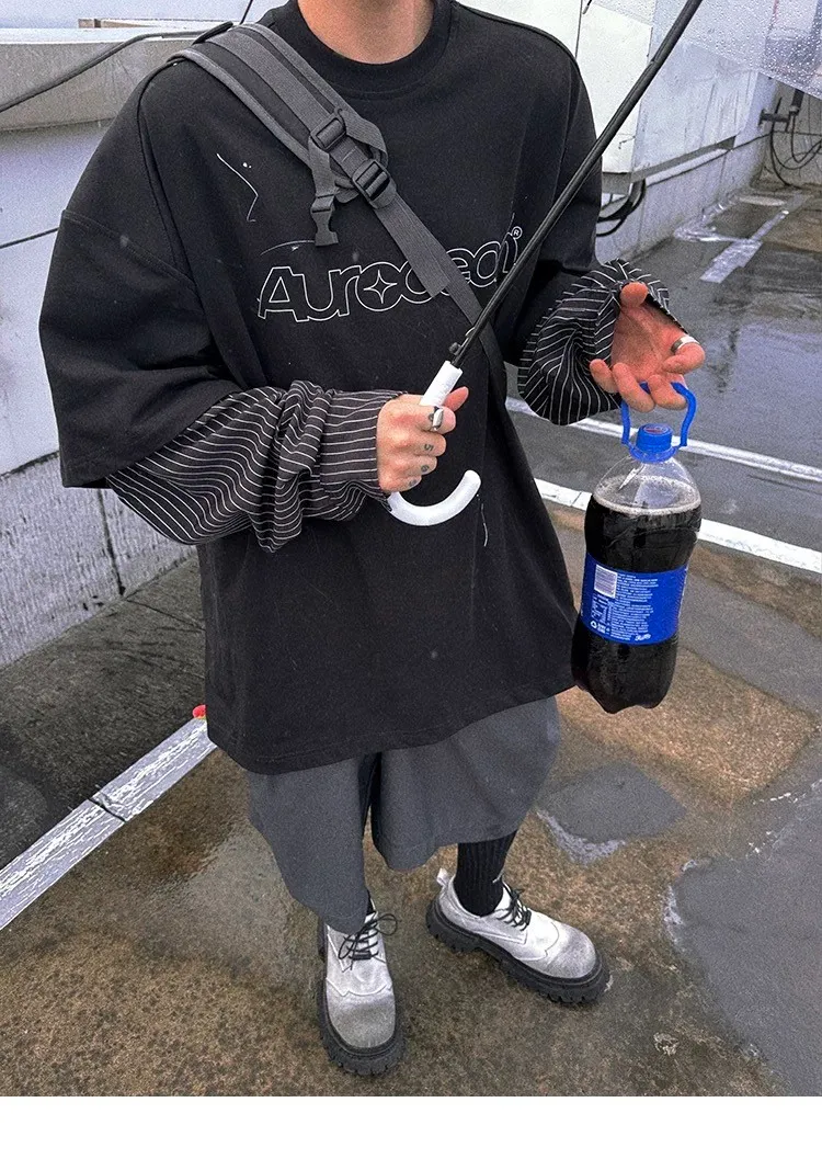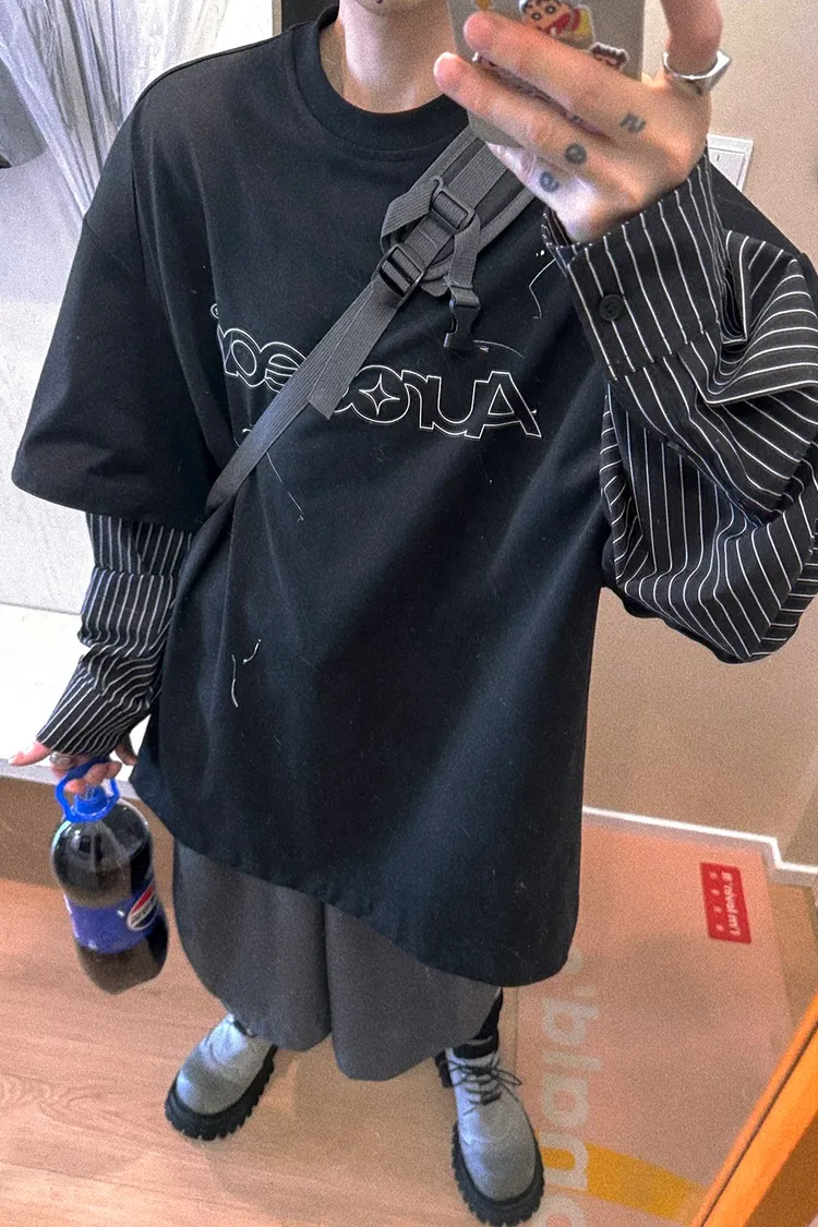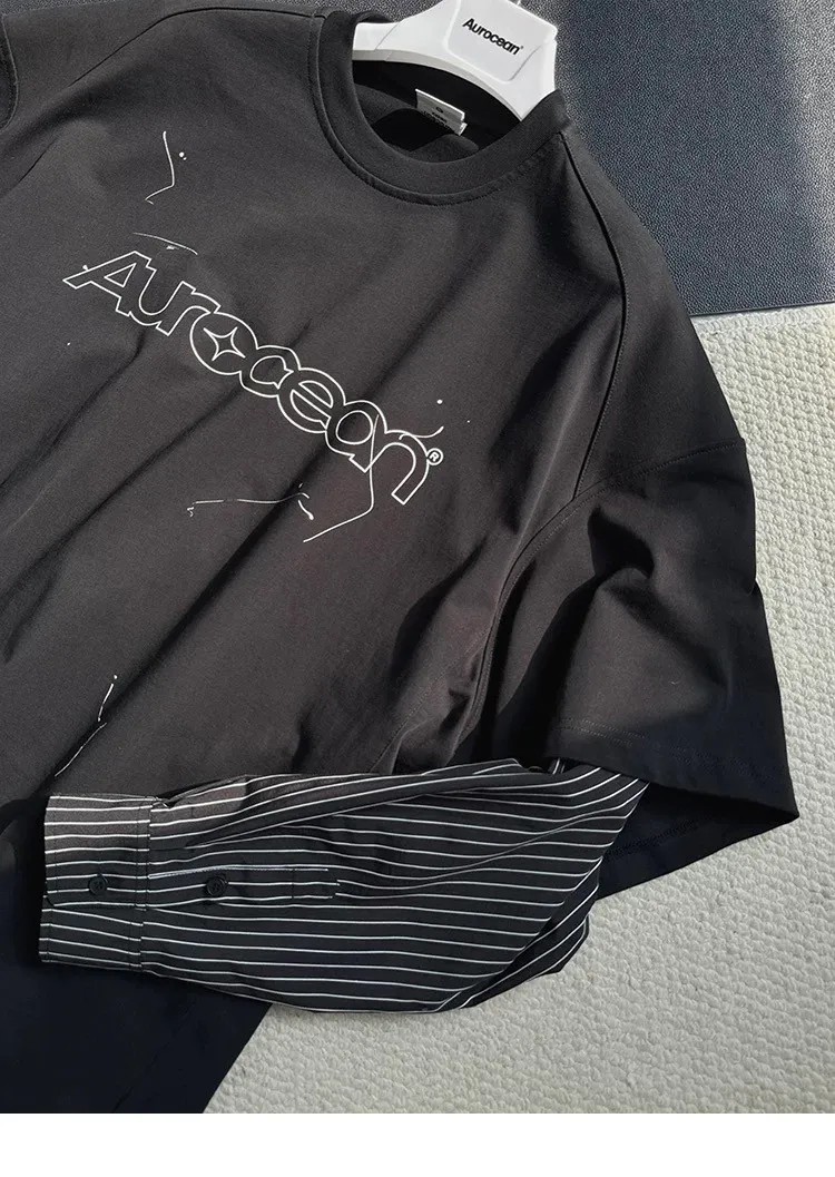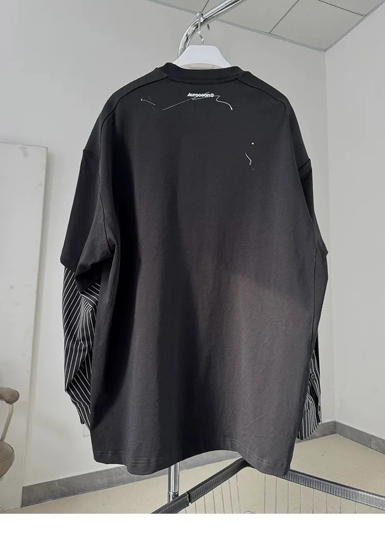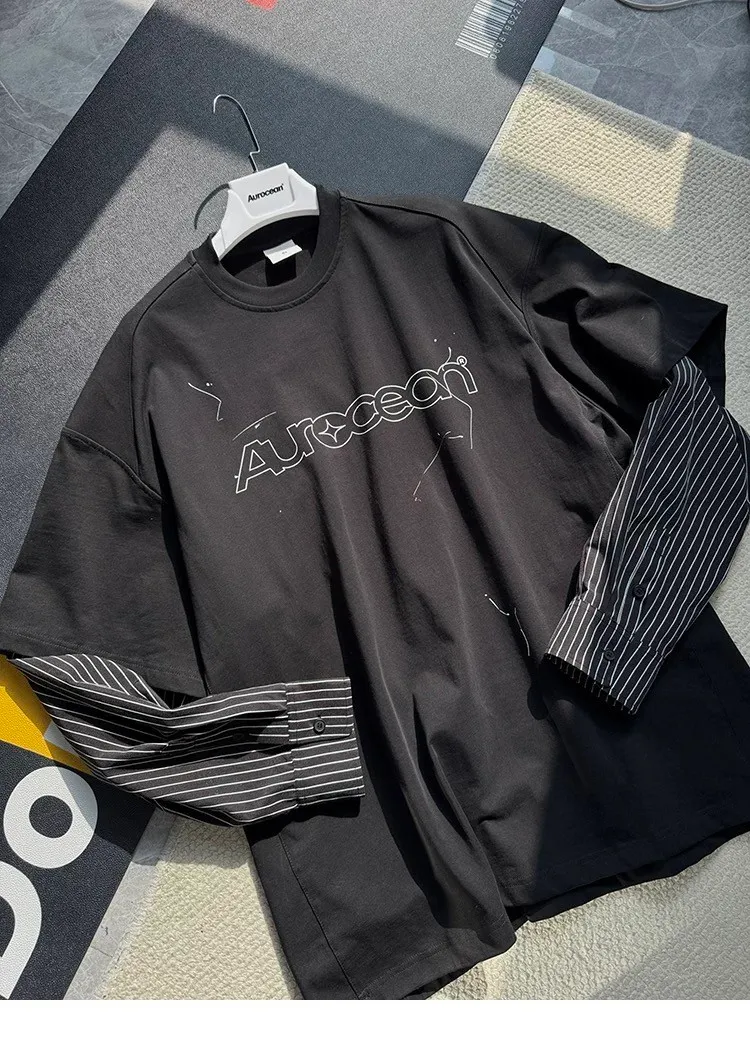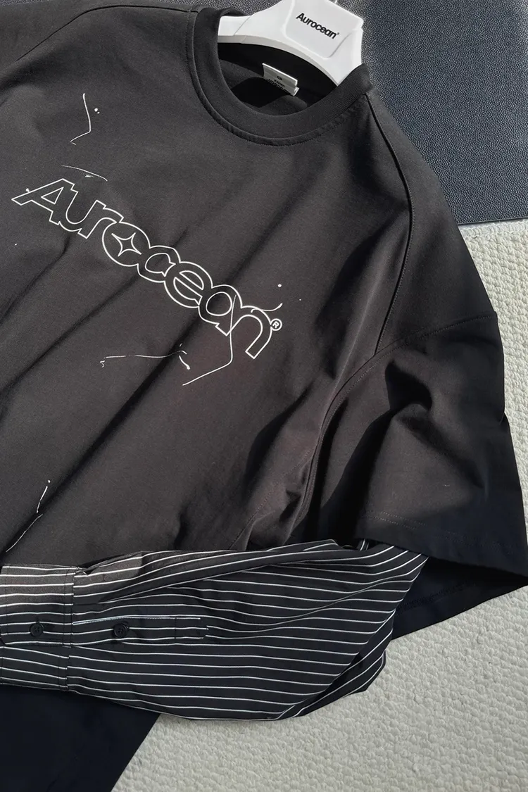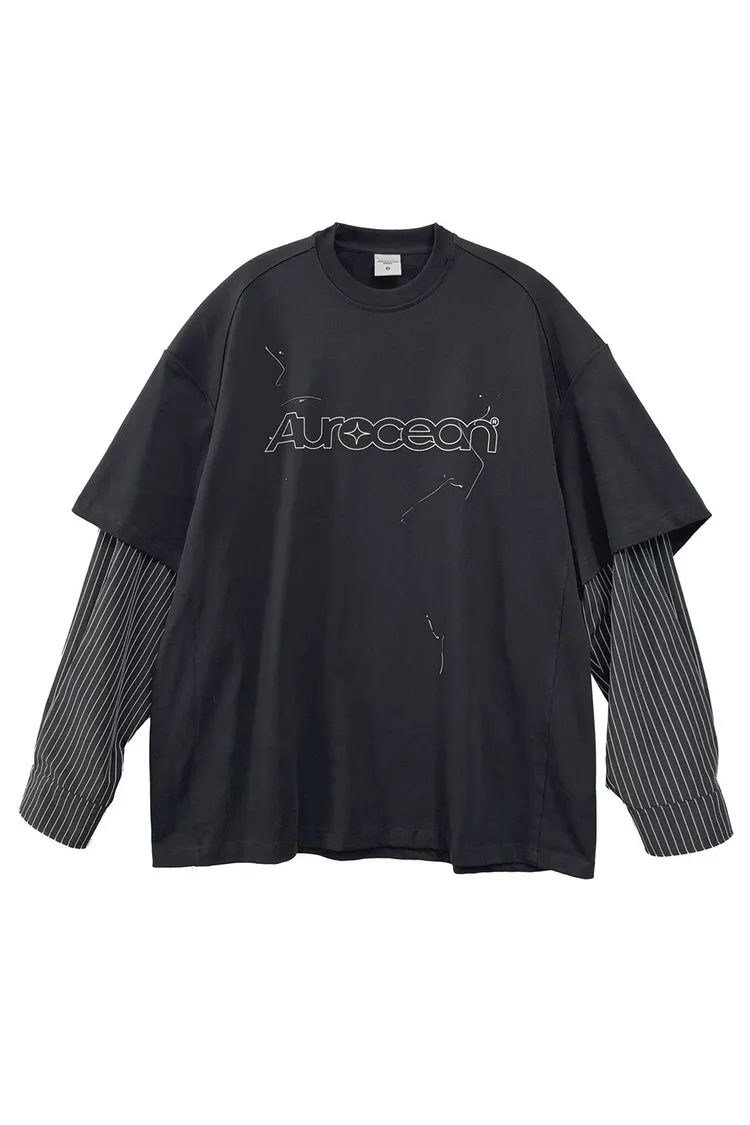 AUROCEAN 假兩件 襯衫袖 塗鴉LOGO 長袖(黑色)