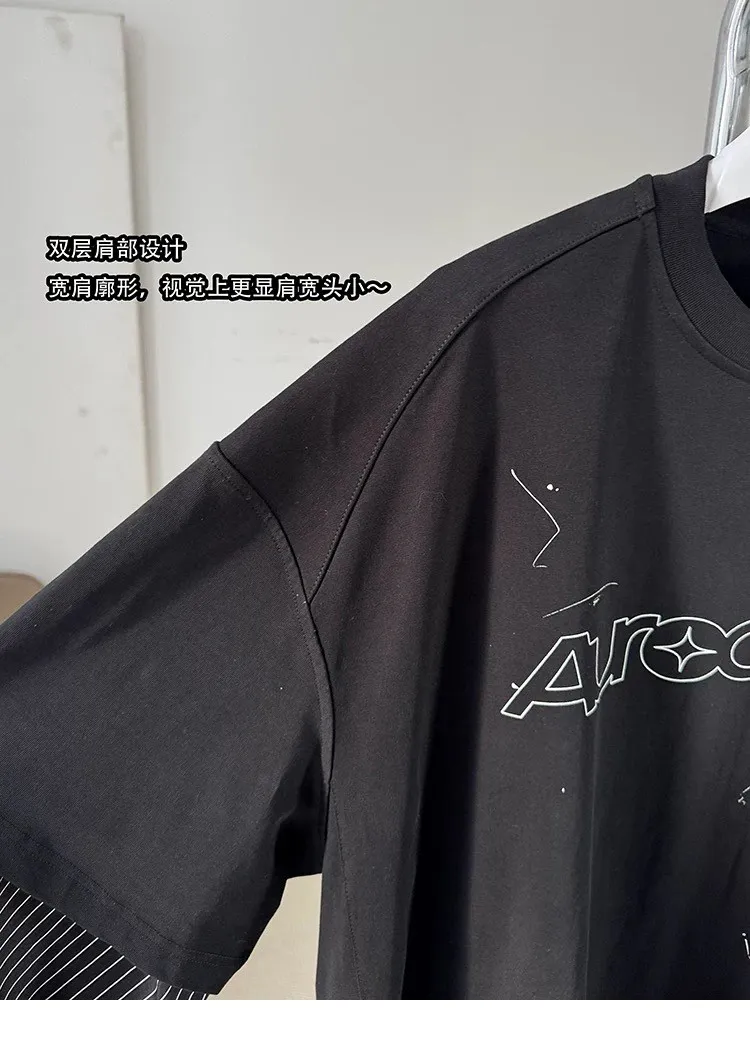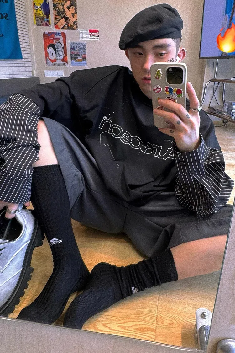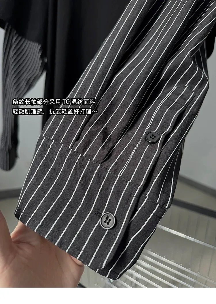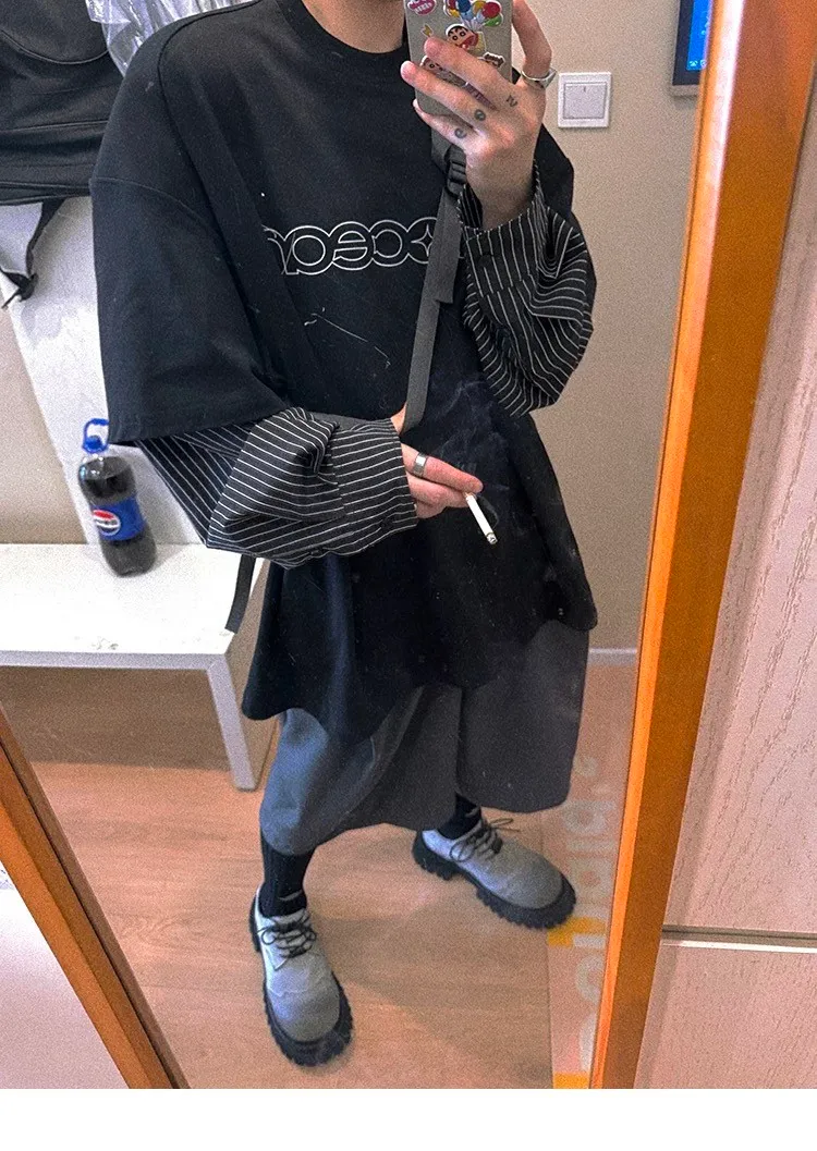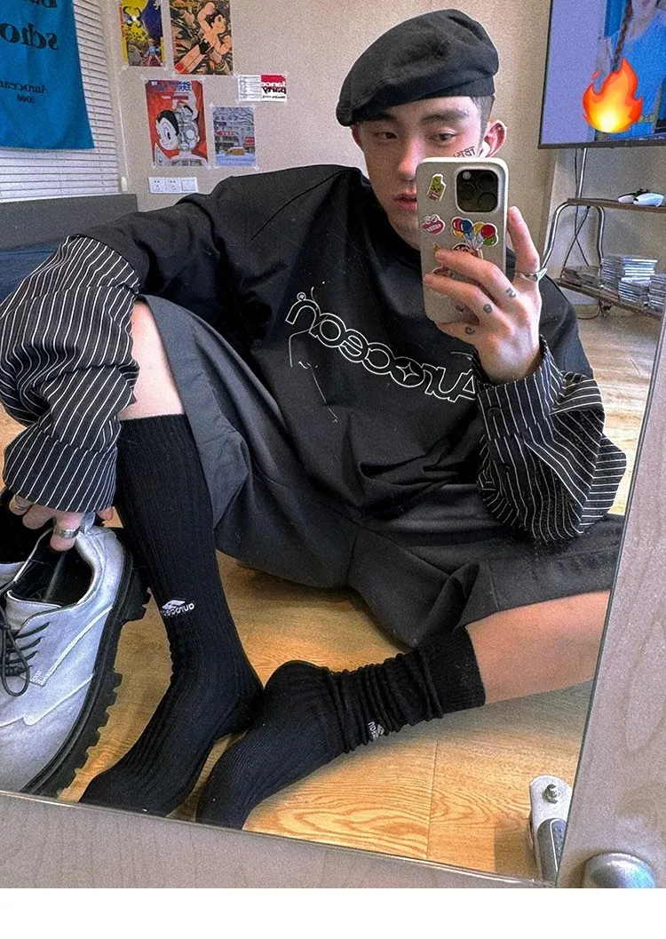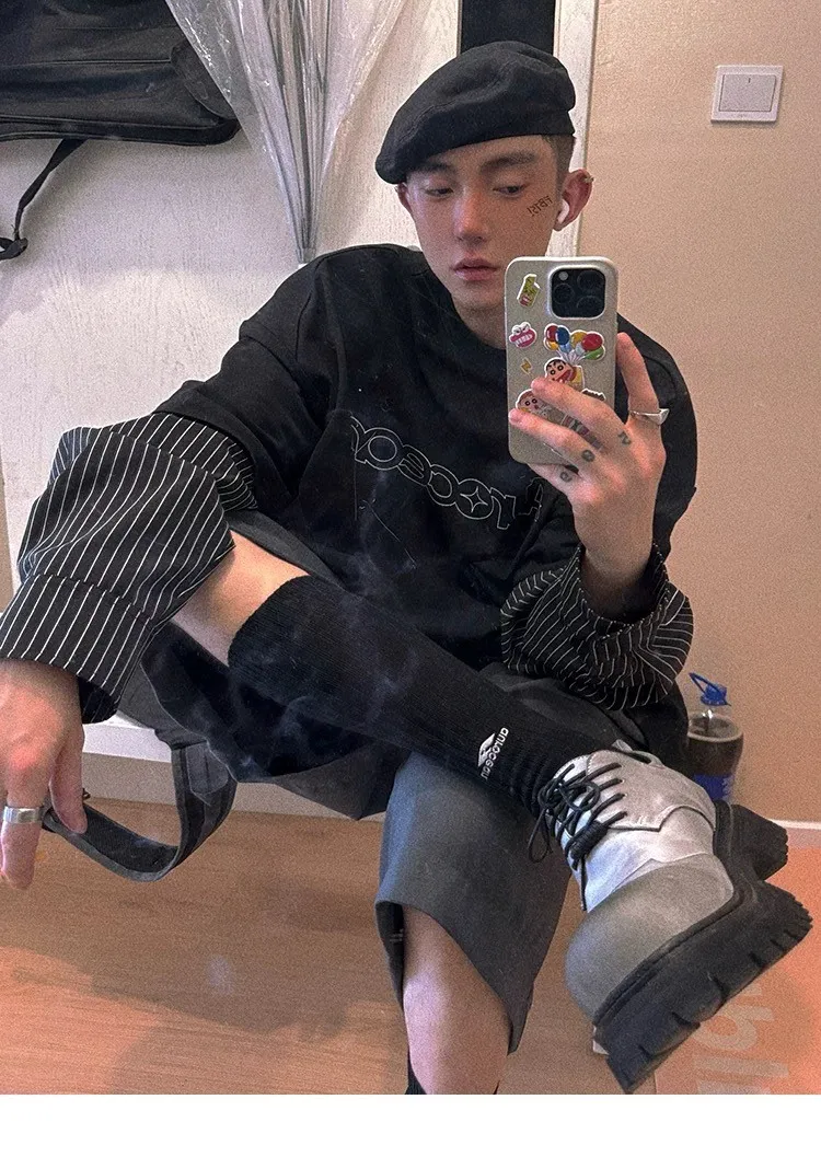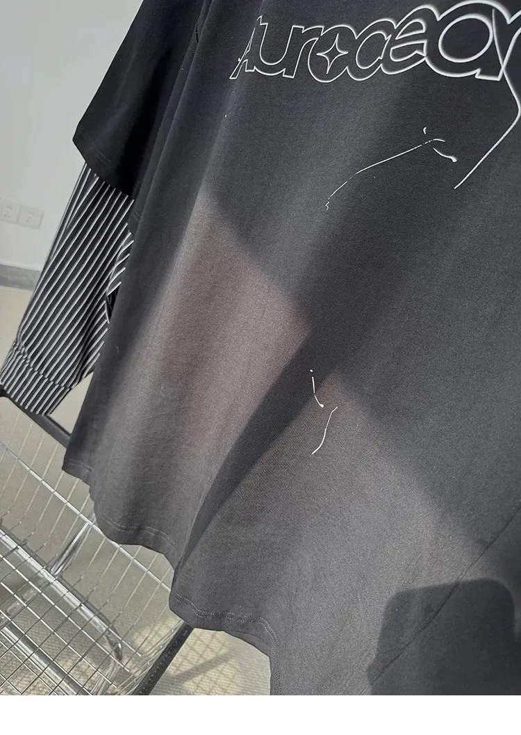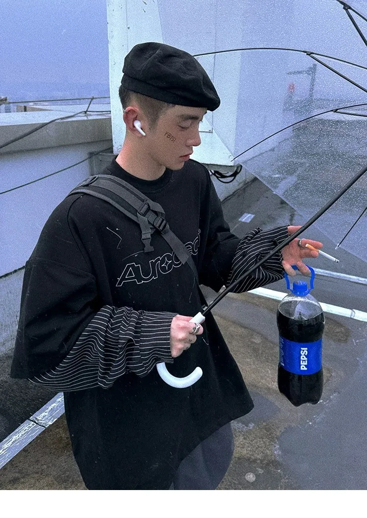 AUROCEAN 假兩件 襯衫袖 塗鴉LOGO 長袖(黑色)