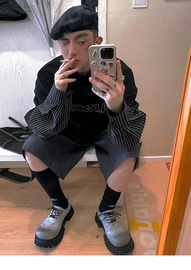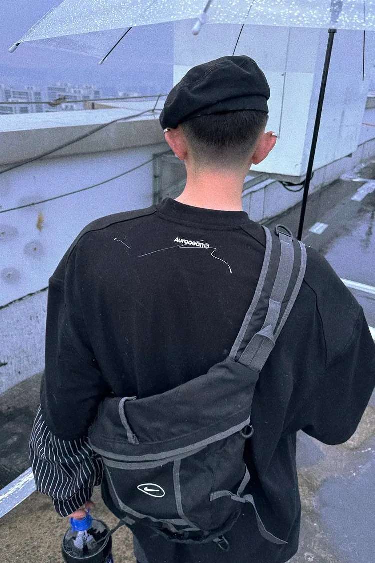 AUROCEAN 古著少年 撞色拼接 尼龍 長袖(灰色)