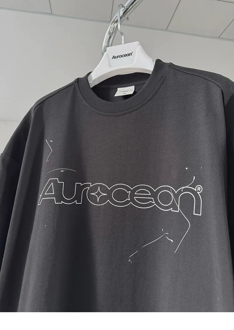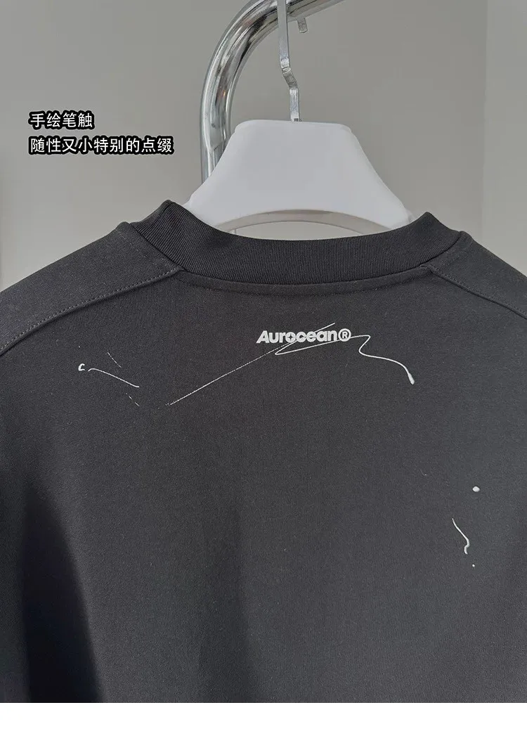 AUROCEAN 小高領 破壞水洗 LOGO 長袖(水洗灰)