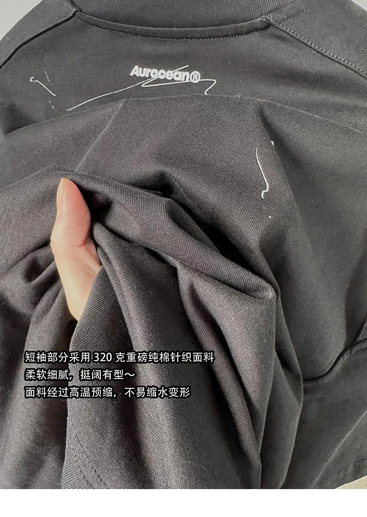 AUROCEAN 小高領 破壞水洗 LOGO 長袖(水洗黑)