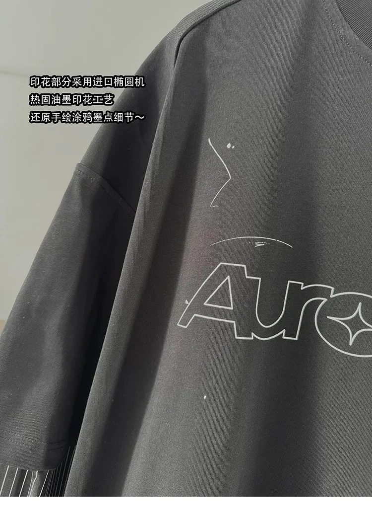 AUROCEAN 假兩件 襯衫袖 塗鴉LOGO 長袖(灰色)