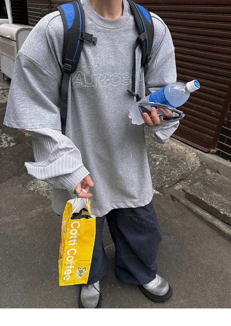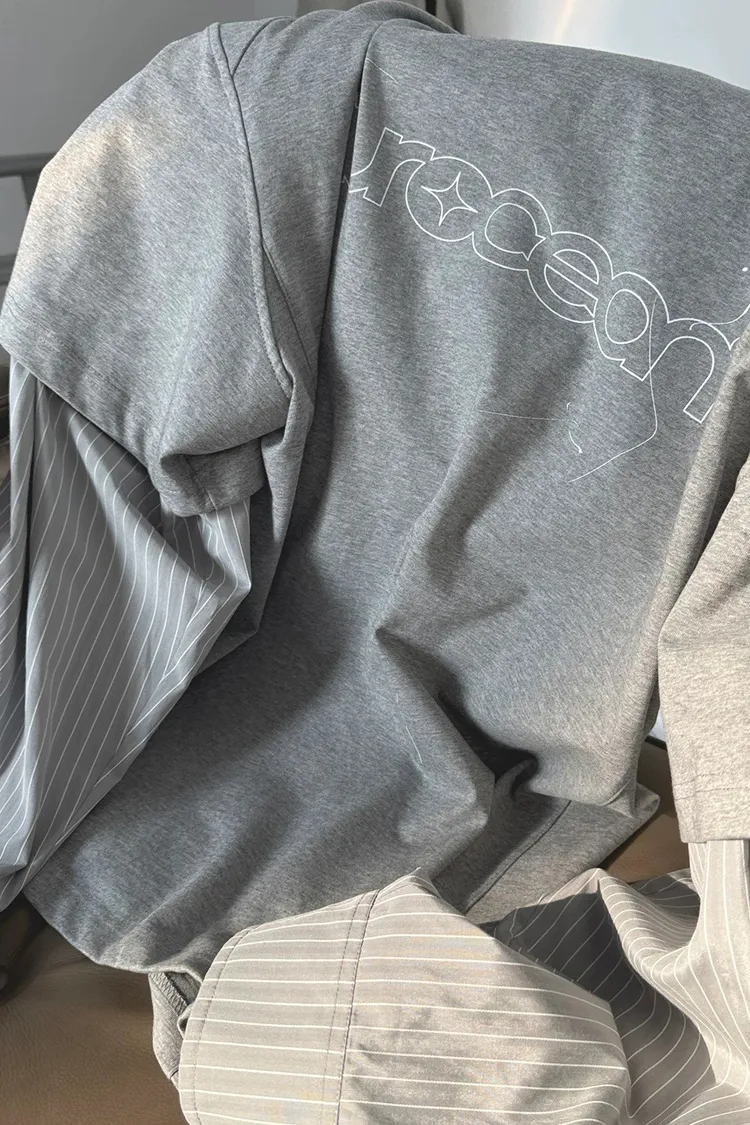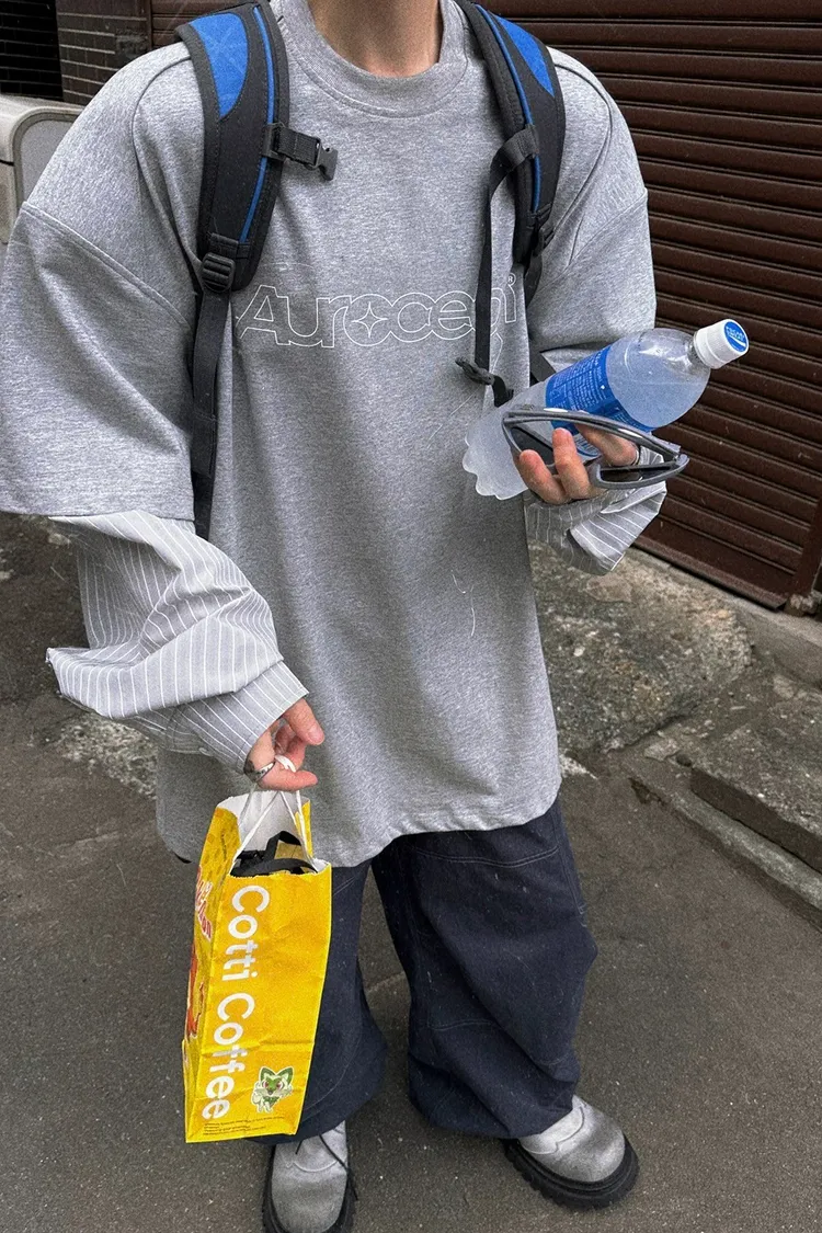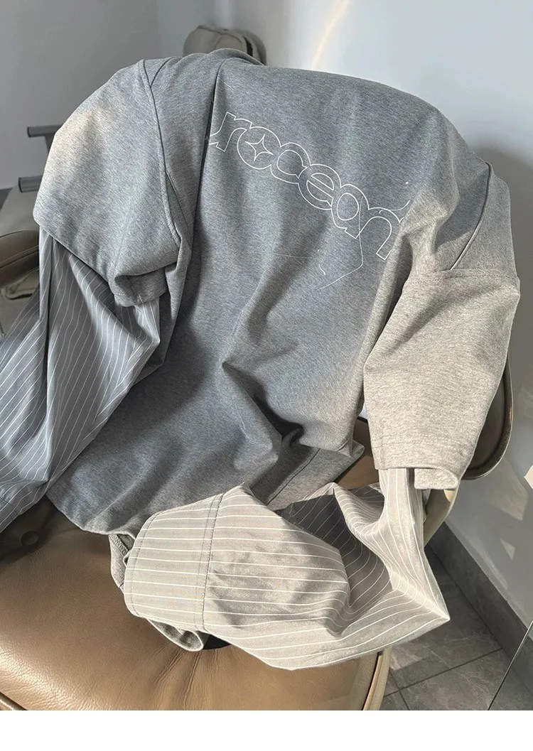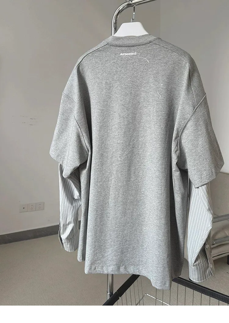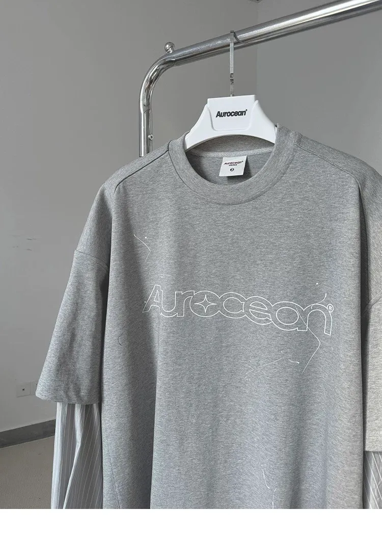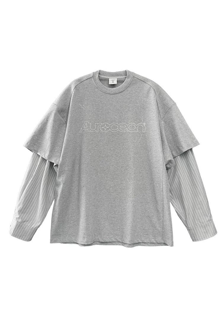 AUROCEAN 假兩件 襯衫袖 塗鴉LOGO 長袖(灰色)