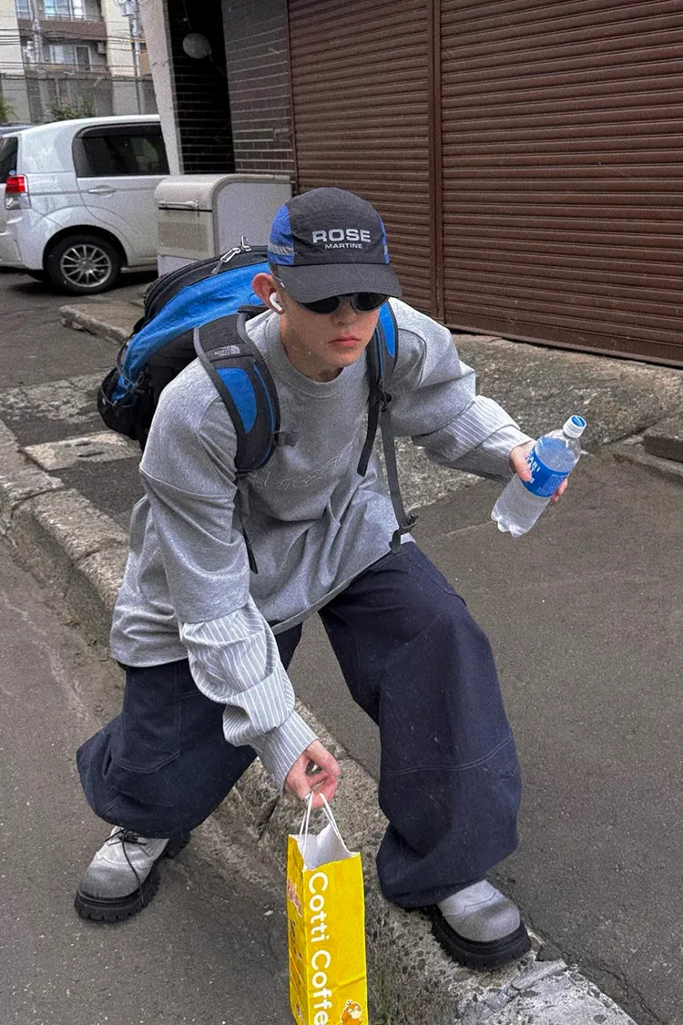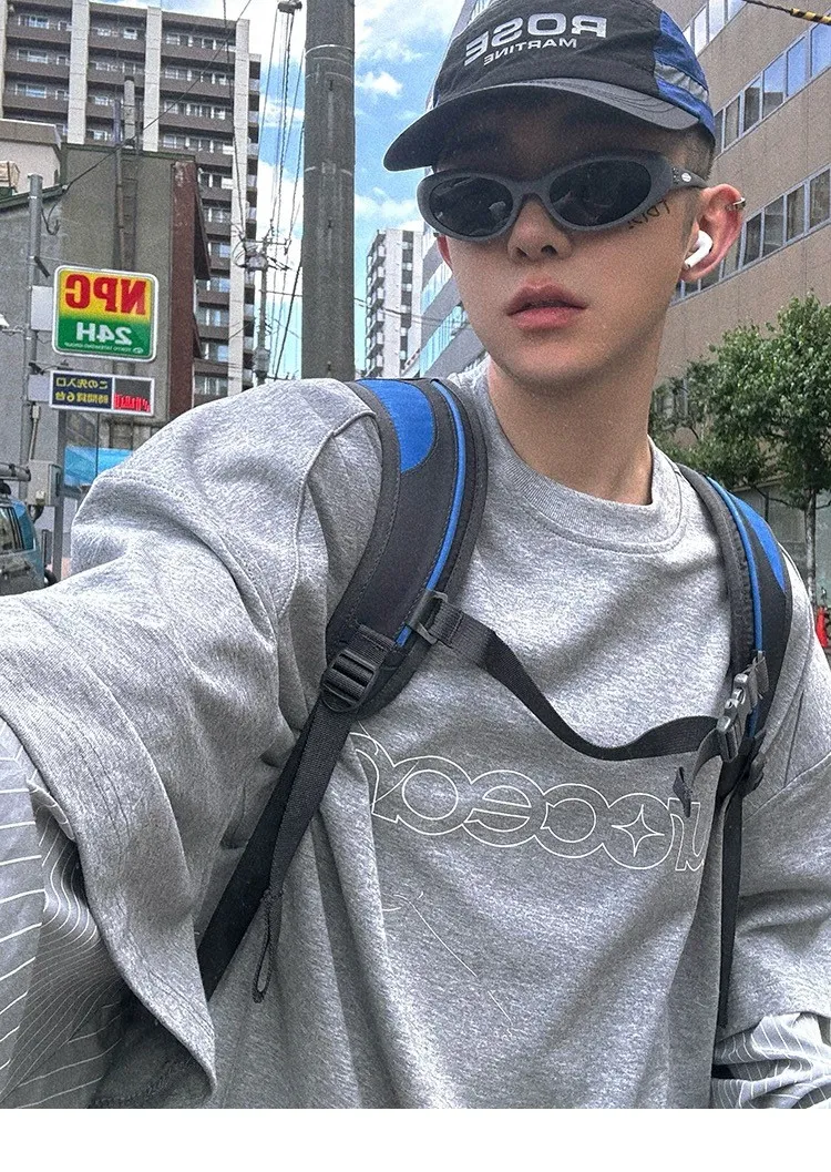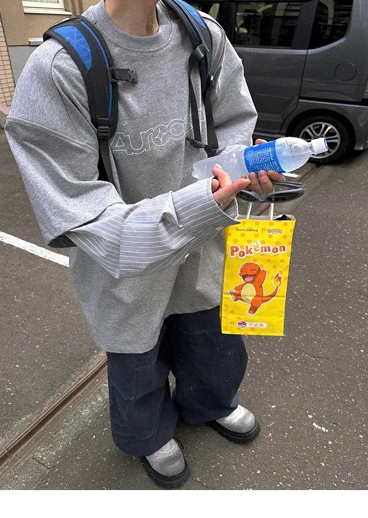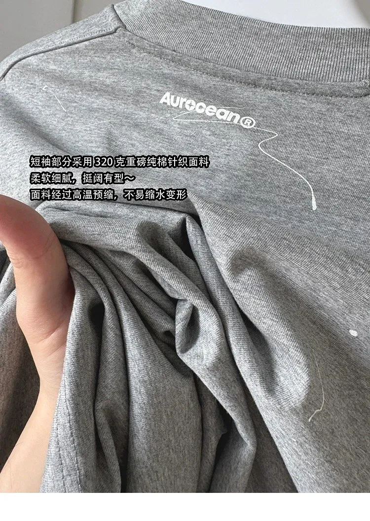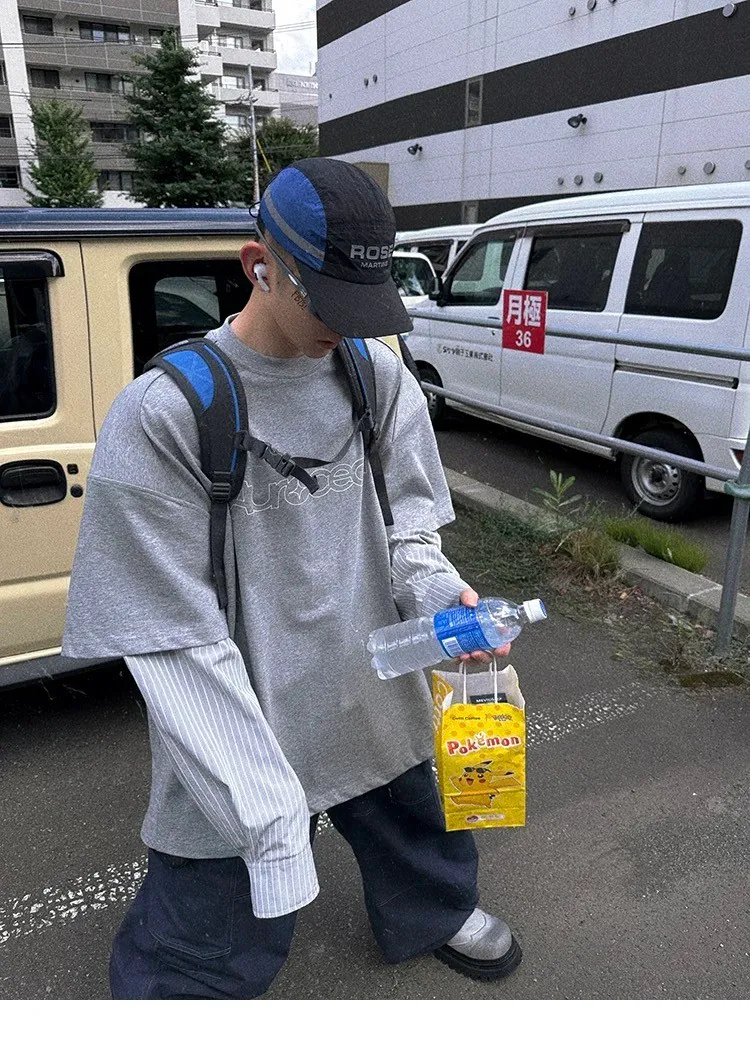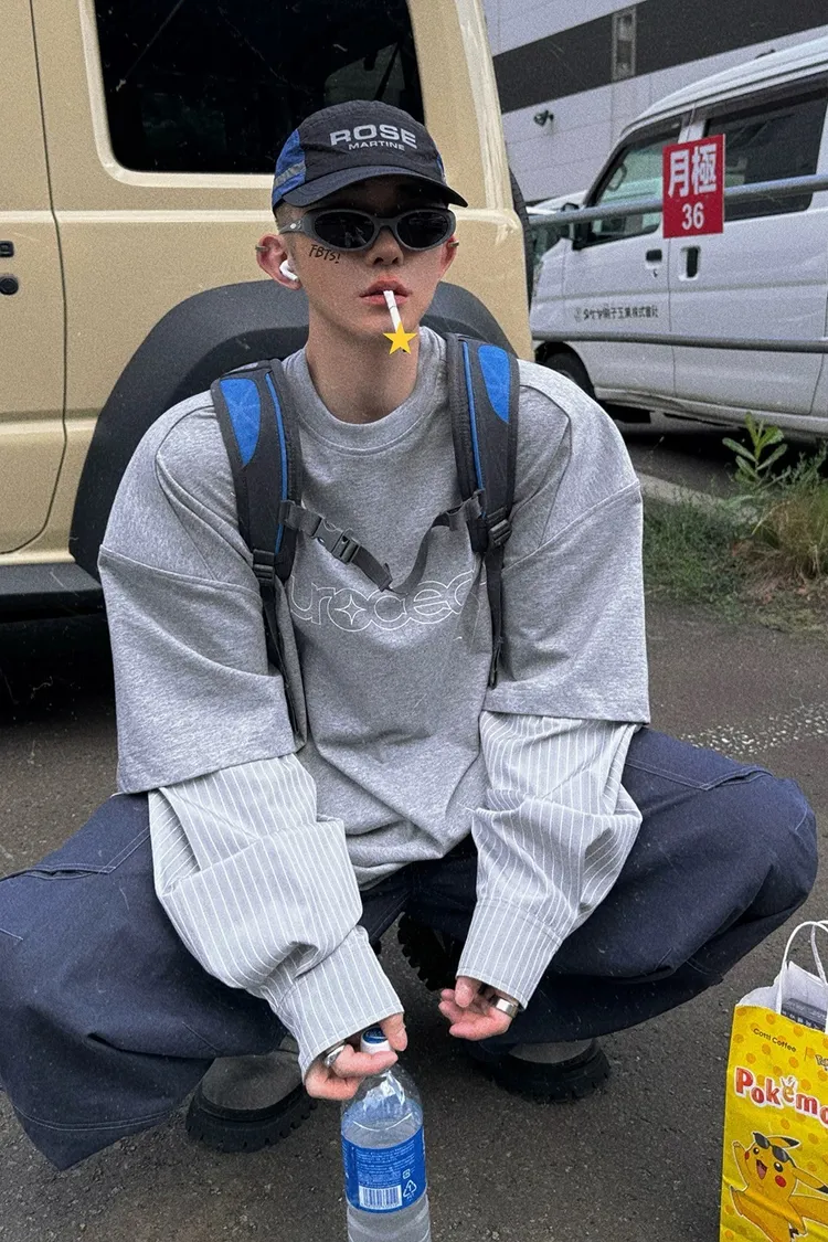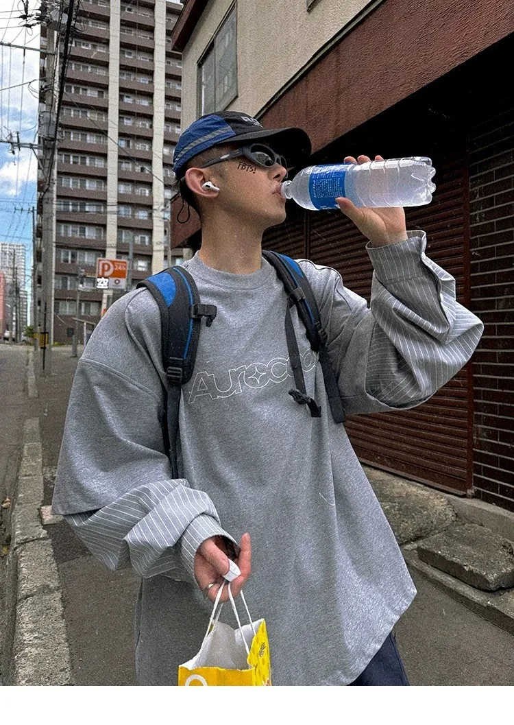AUROCEAN 假兩件 襯衫袖 塗鴉LOGO 長袖(灰色)