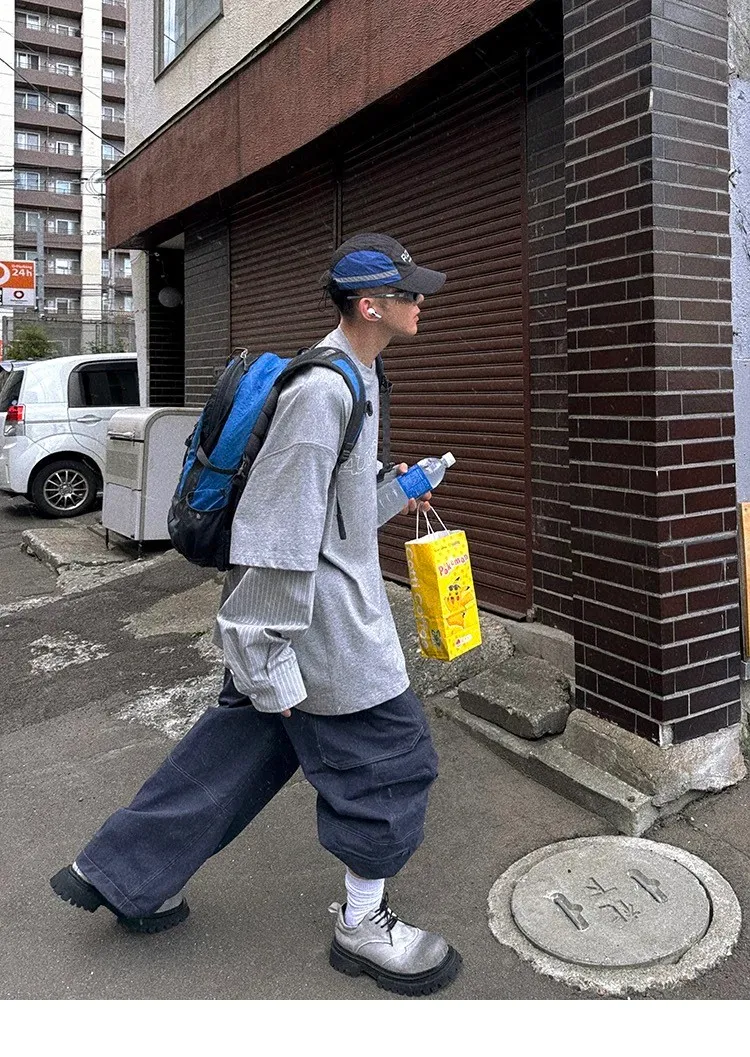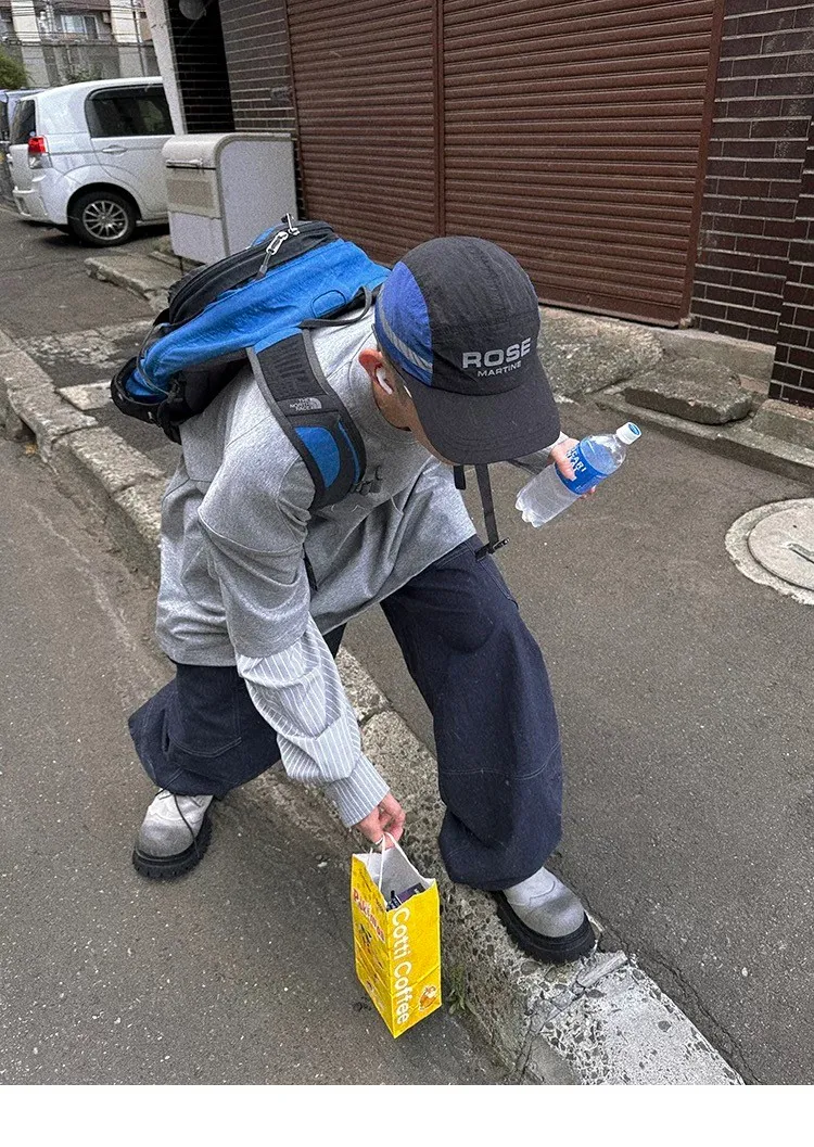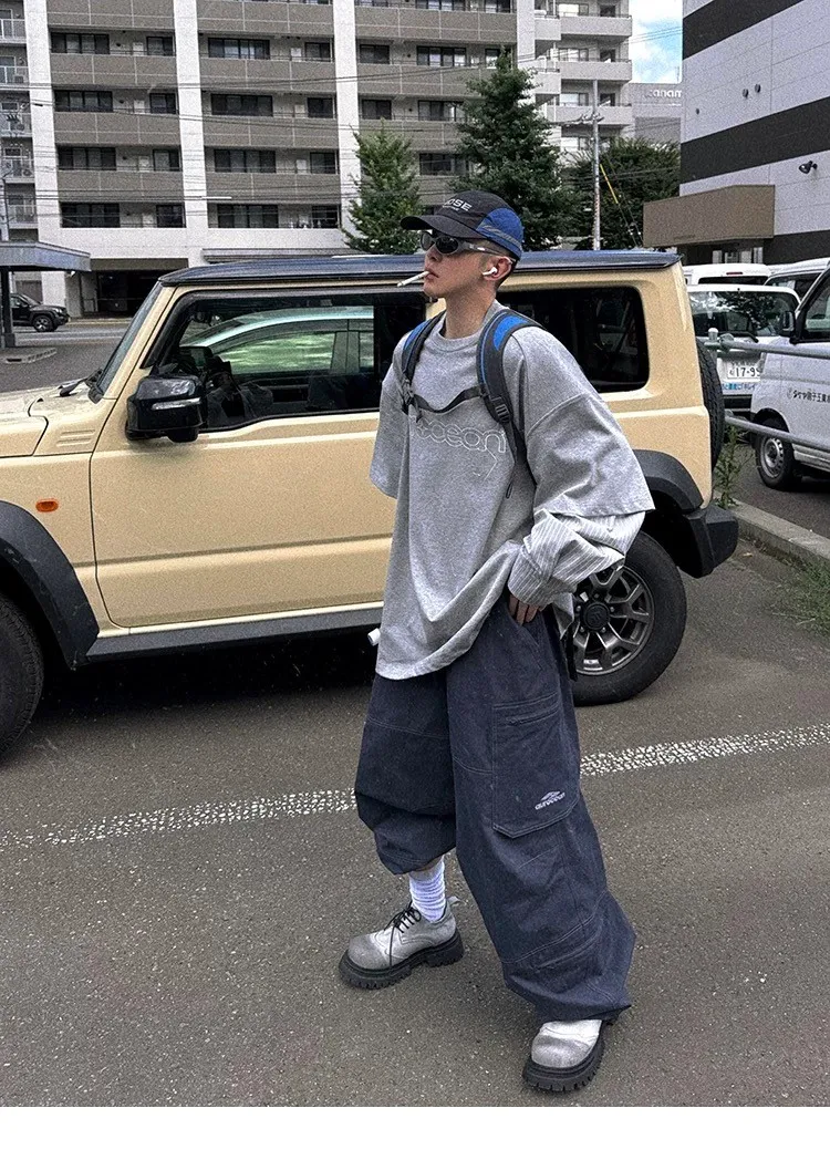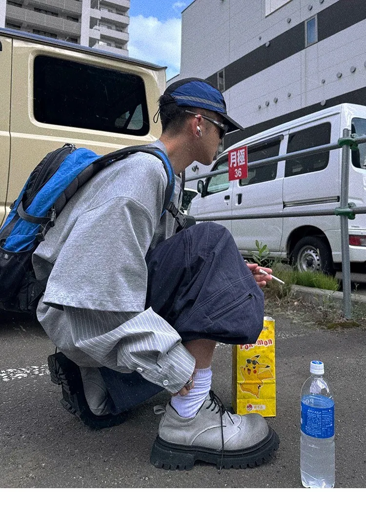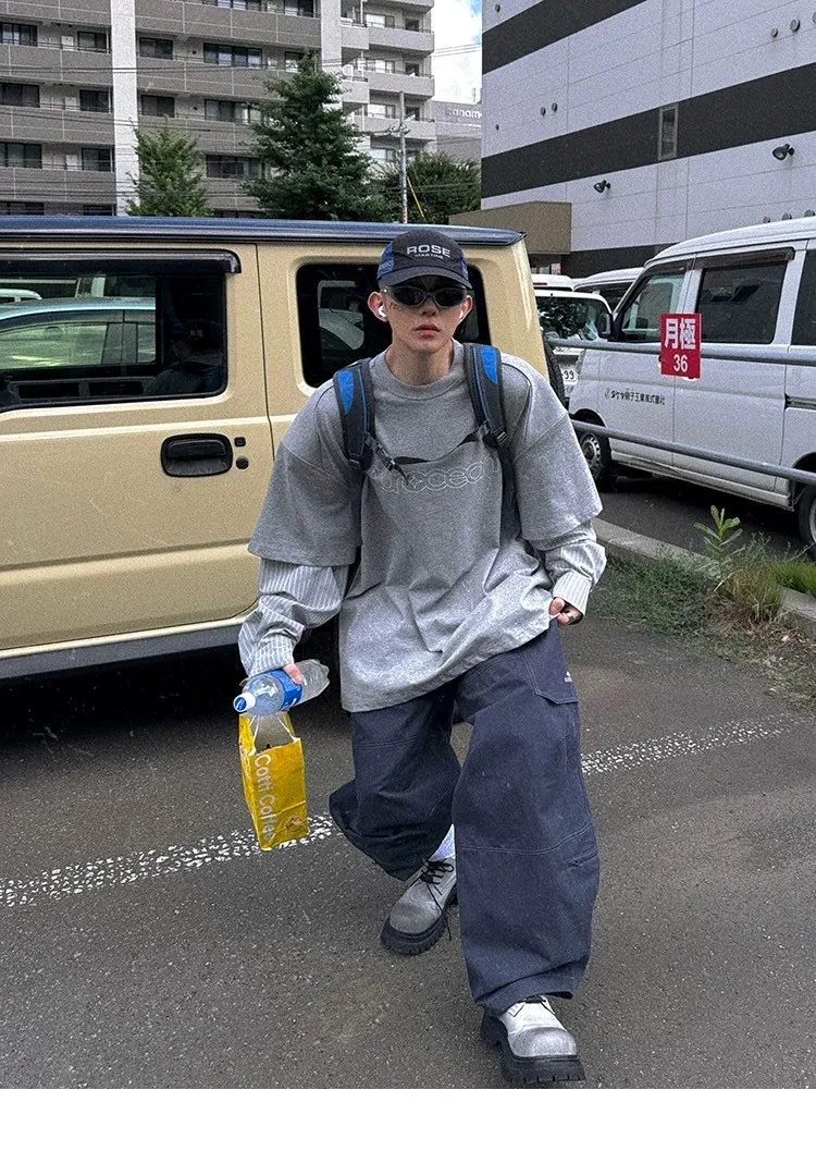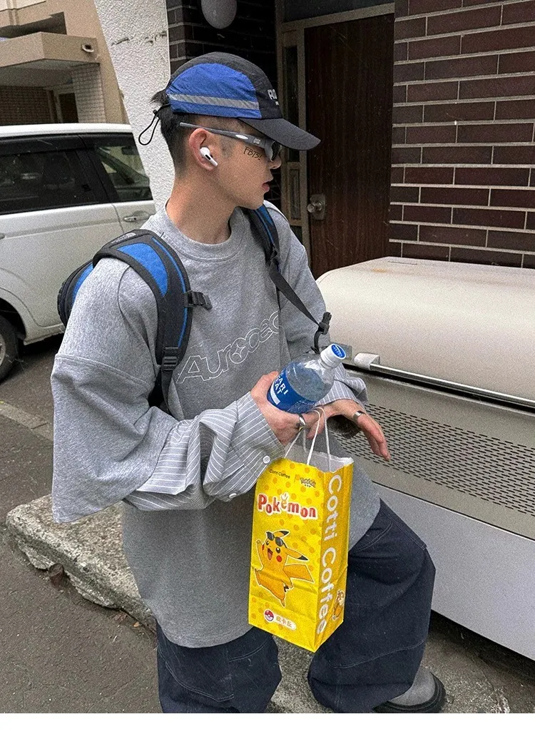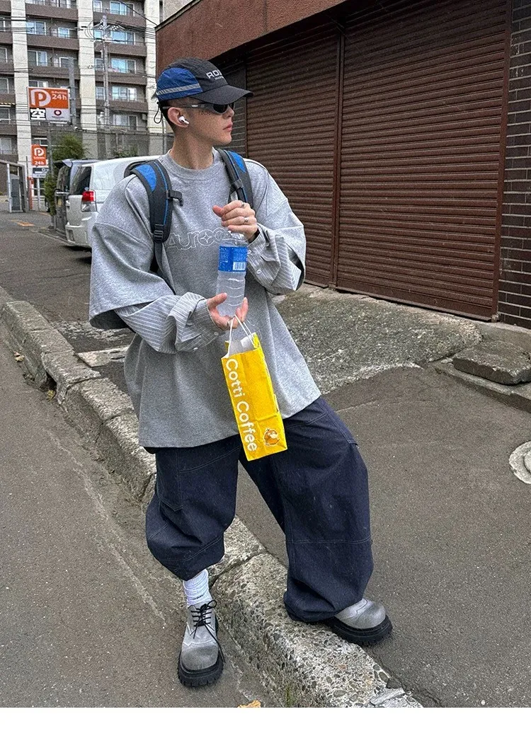 AUROCEAN 假兩件 襯衫袖 塗鴉LOGO 長袖(灰色)
