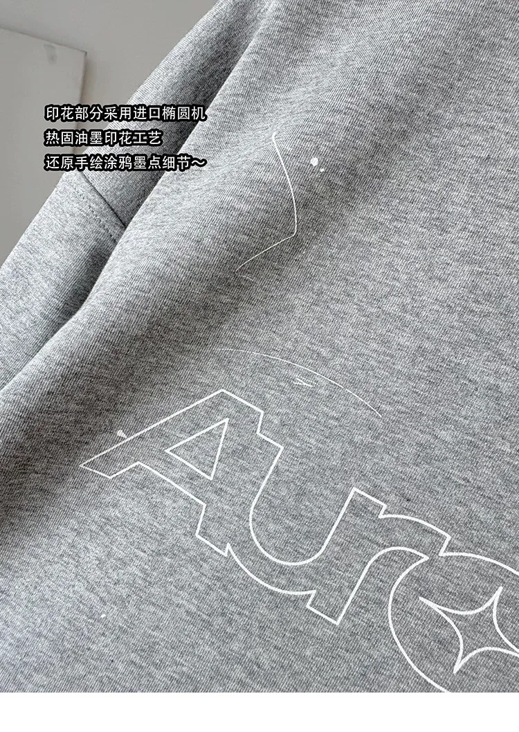 AUROCEAN 小高領 破壞水洗 LOGO 長袖(水洗灰)