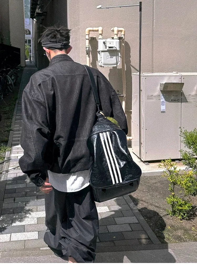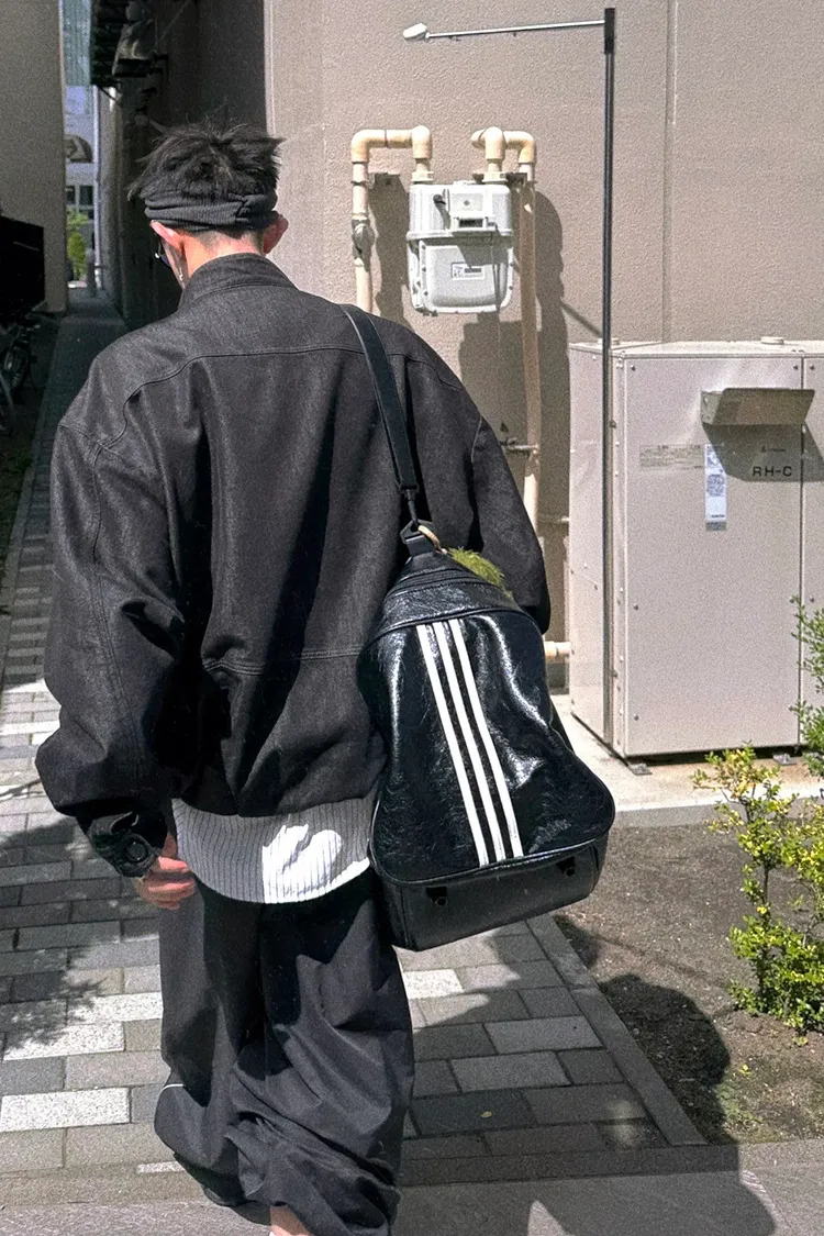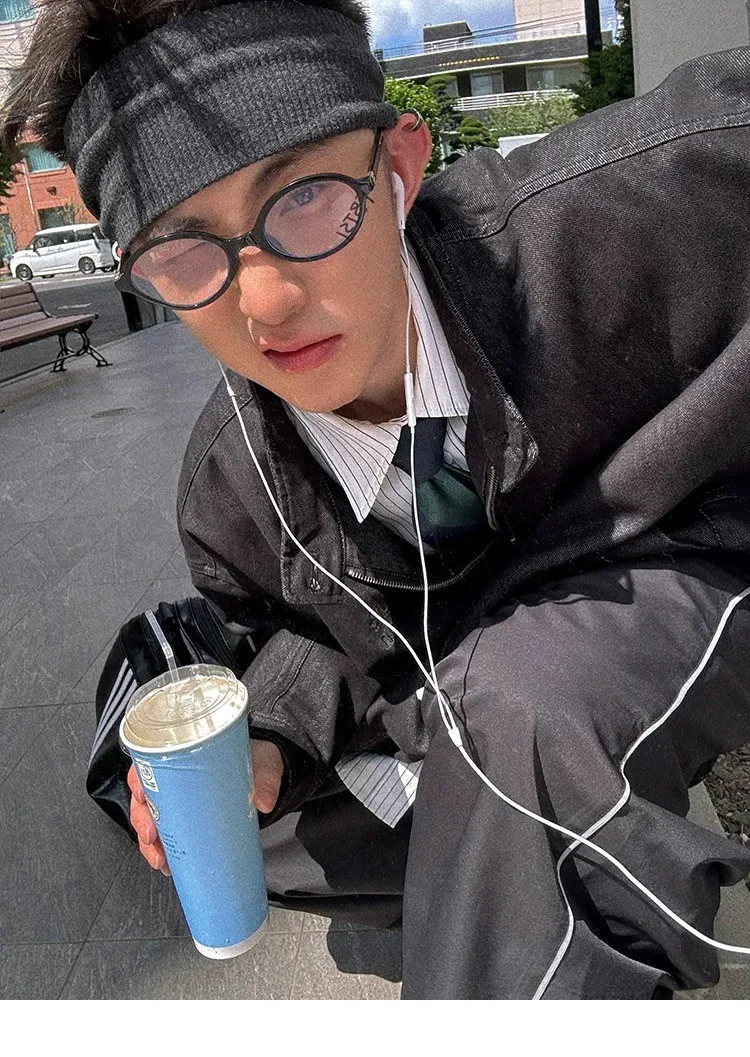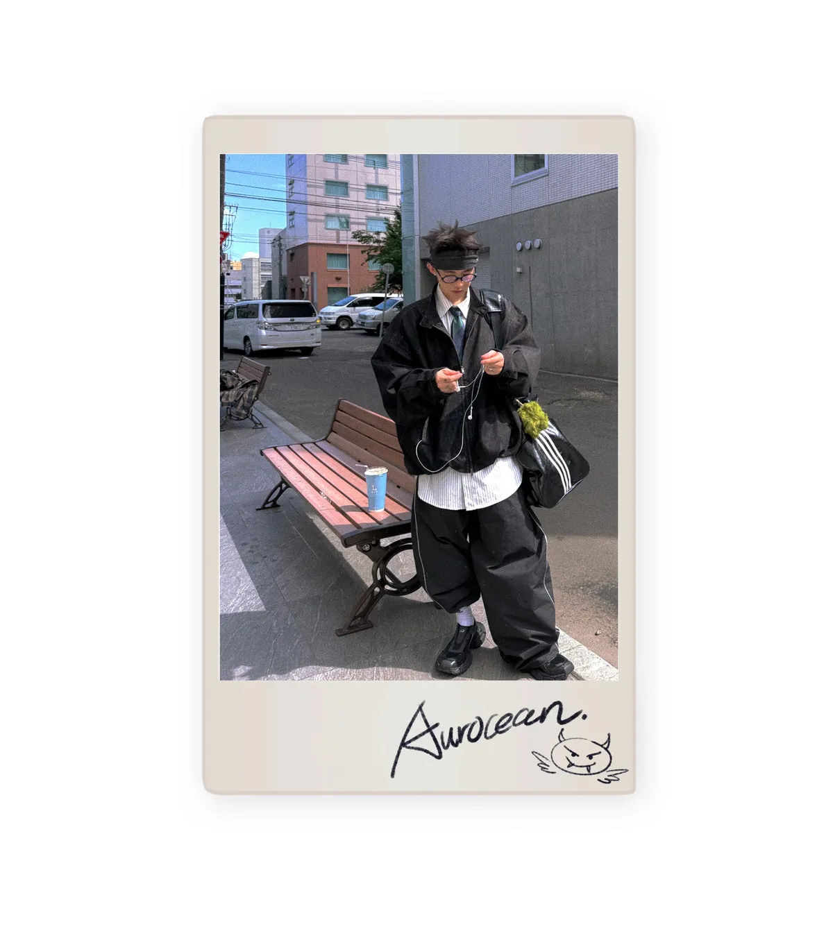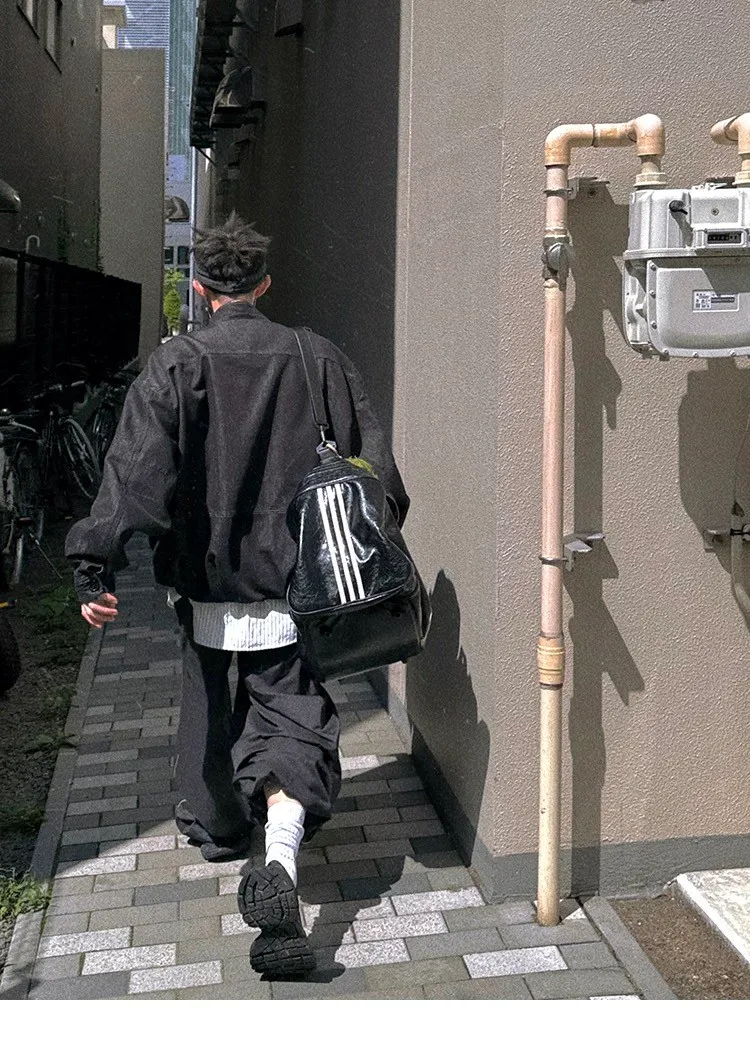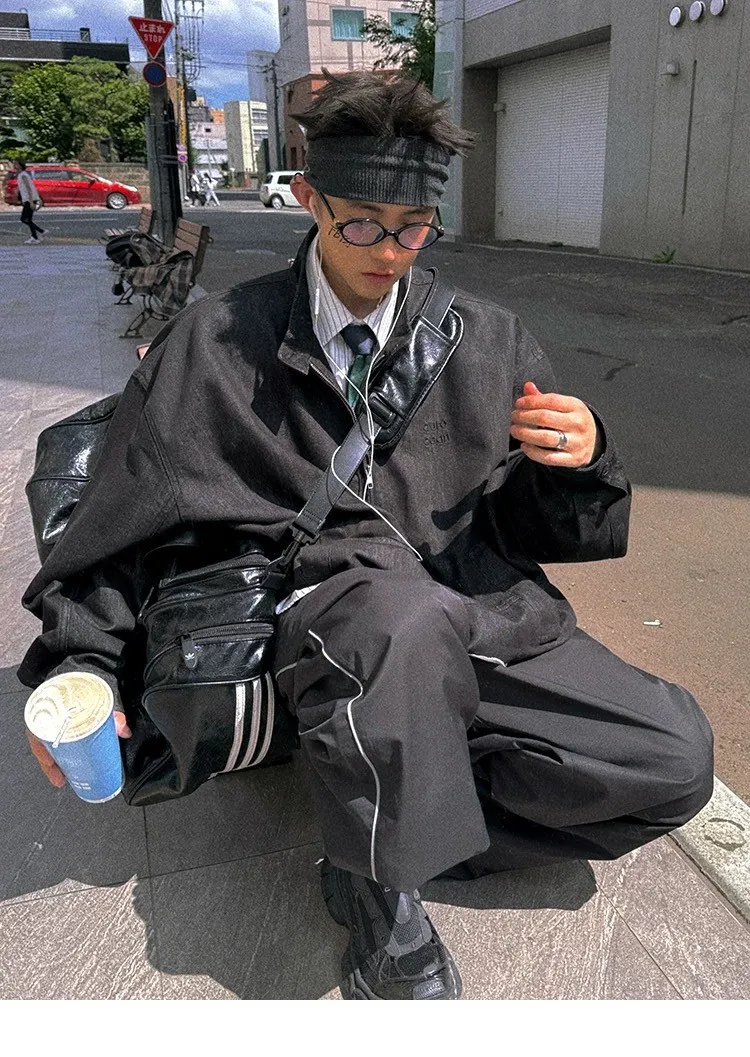做舊水洗 雙層拼接 帽踢 Taped 棉褲 套裝(水洗黑)