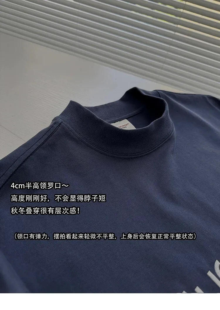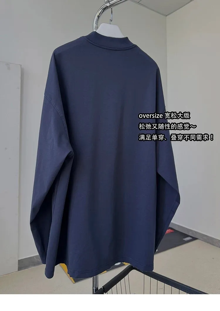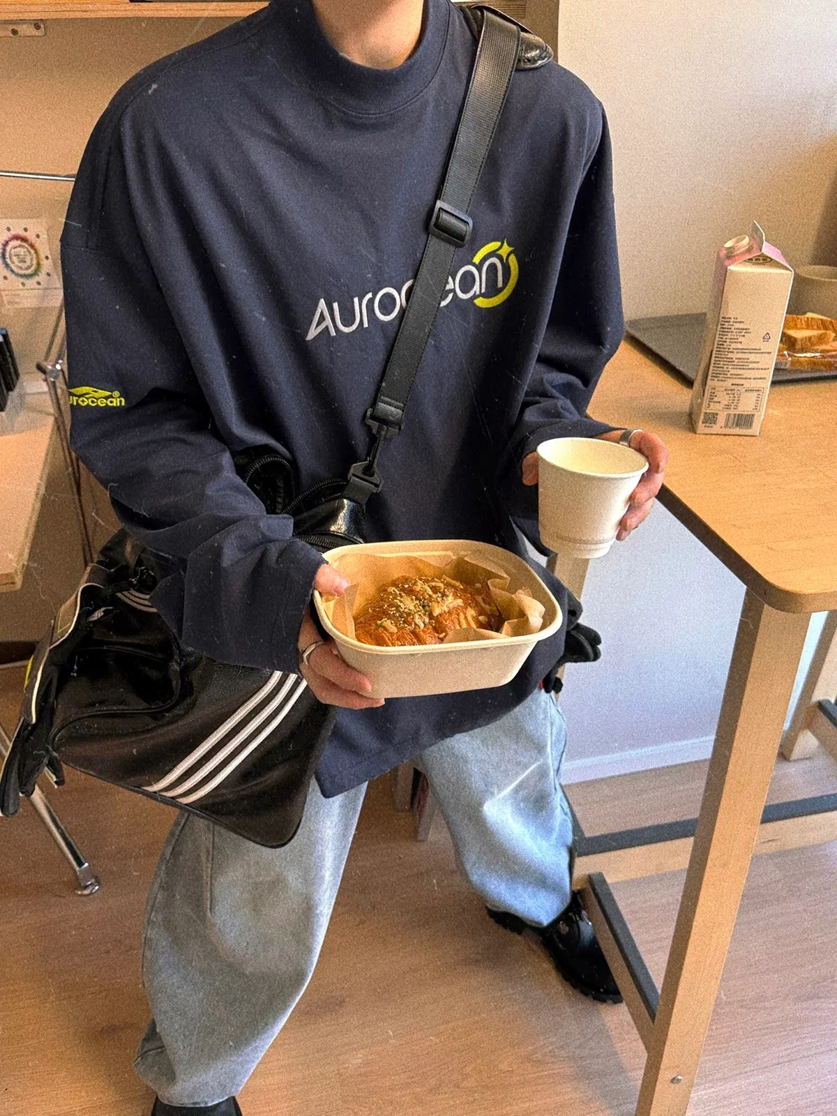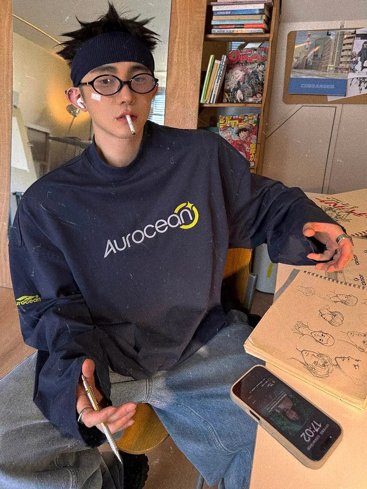 AUROCEAN 小高領 破壞水洗 LOGO 長袖(藏青)