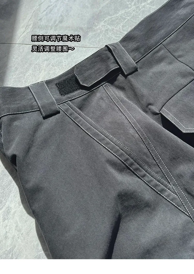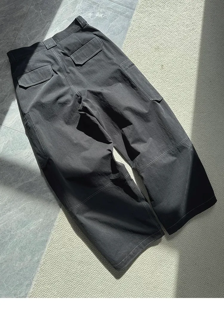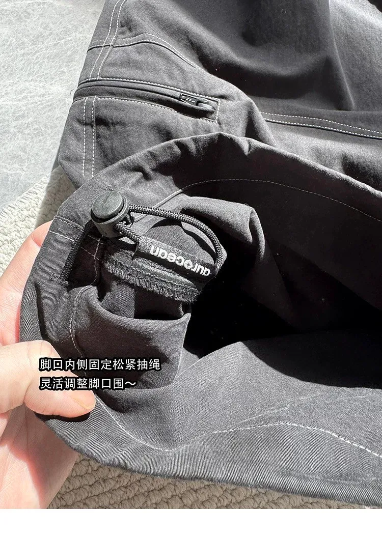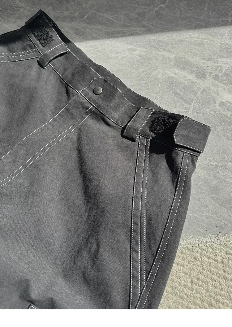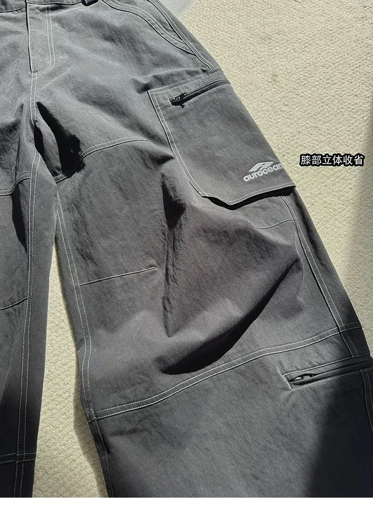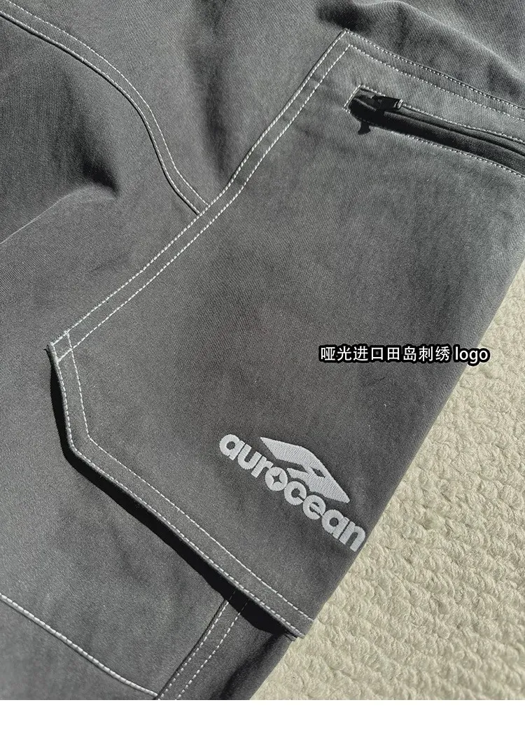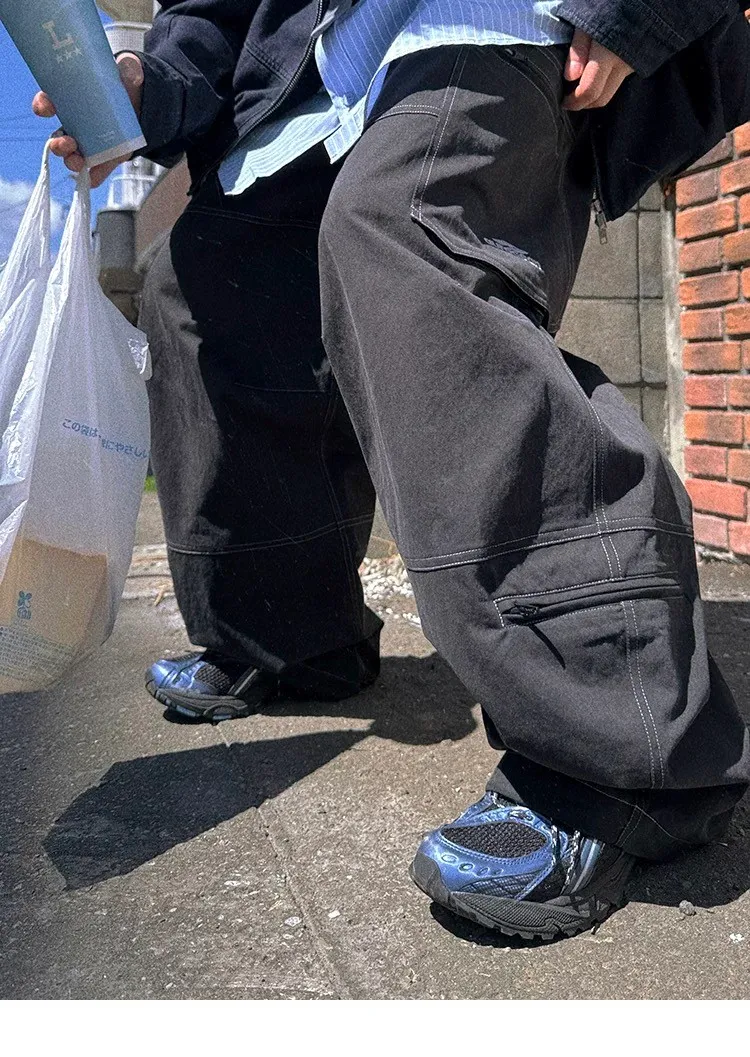 AUROCEAN 機能小子 多口袋縫線 寬鬆 長褲(黑色)