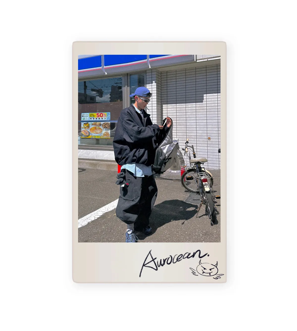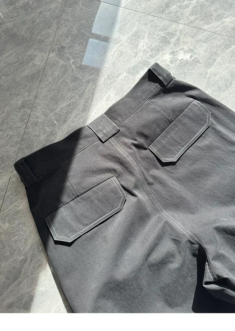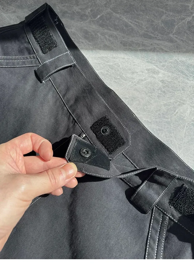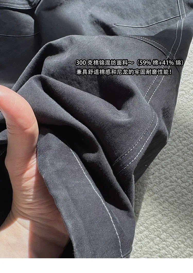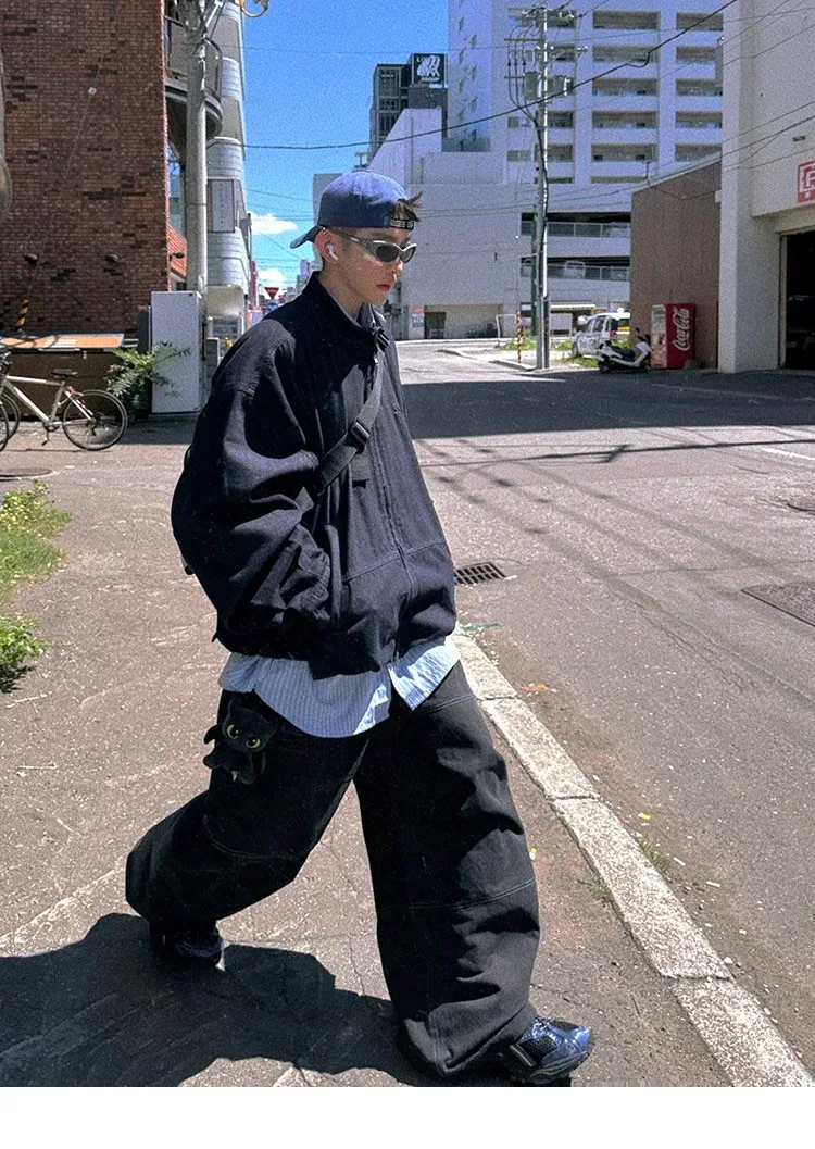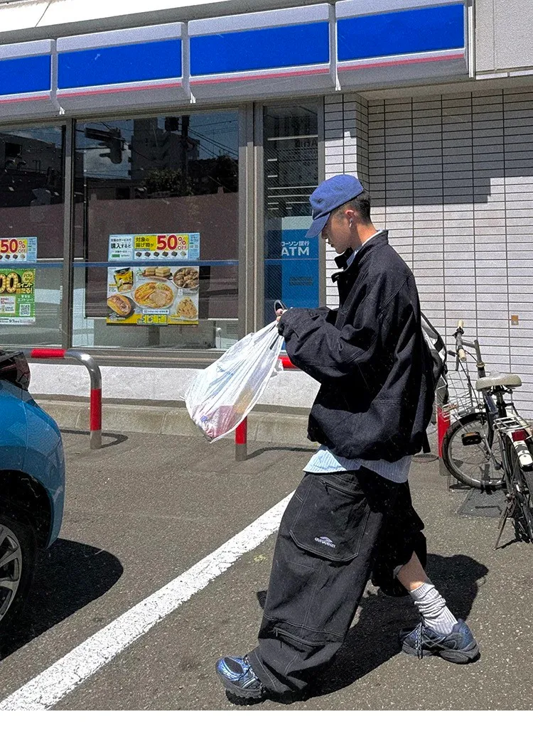 AUROCEAN 機能小子 多口袋縫線 寬鬆 長褲(黑色)