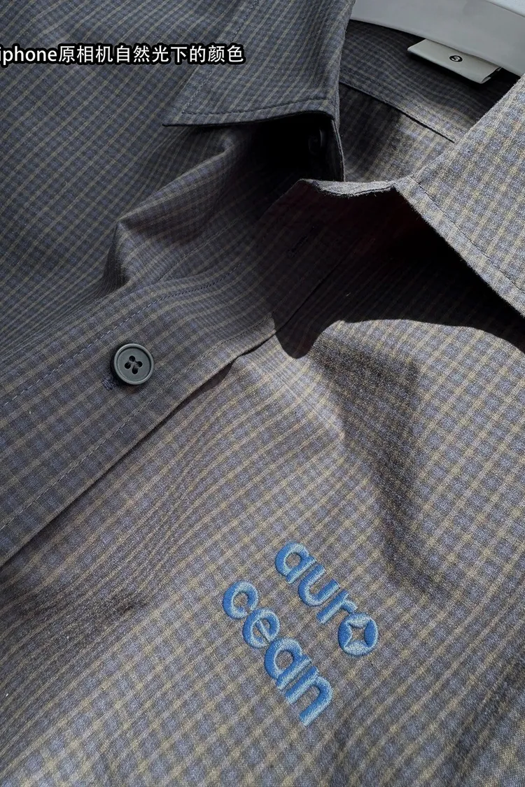 AUROCEAN MIU系穿搭 小格子 襯衫(灰紫)