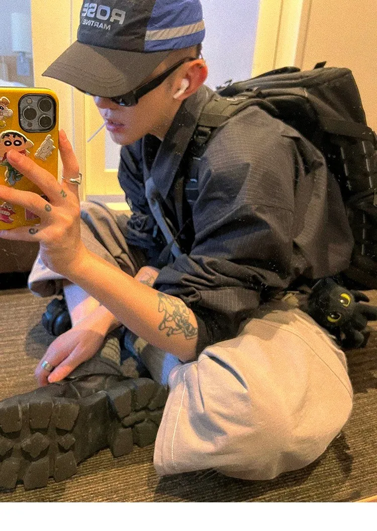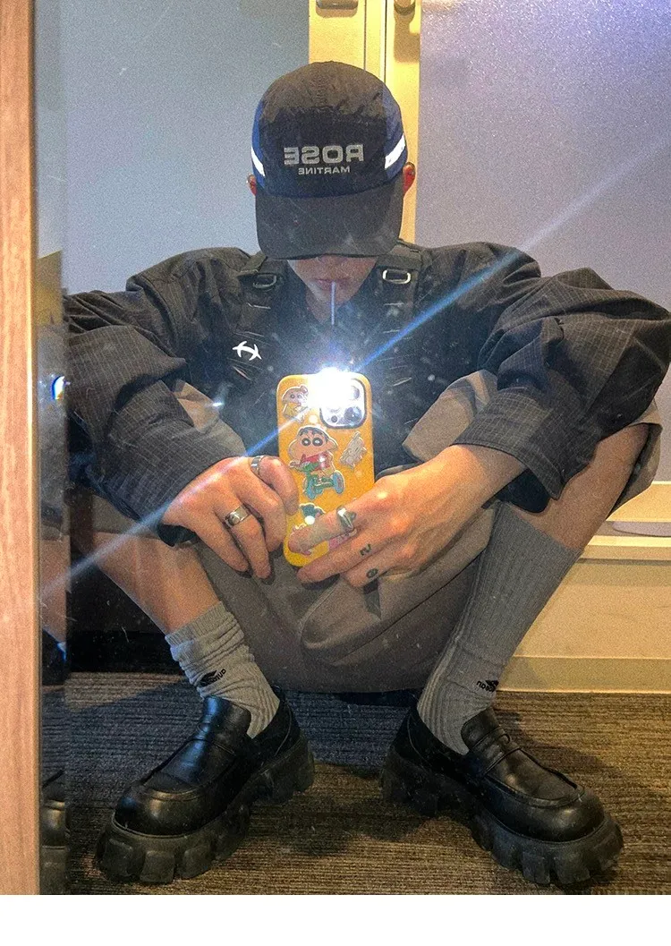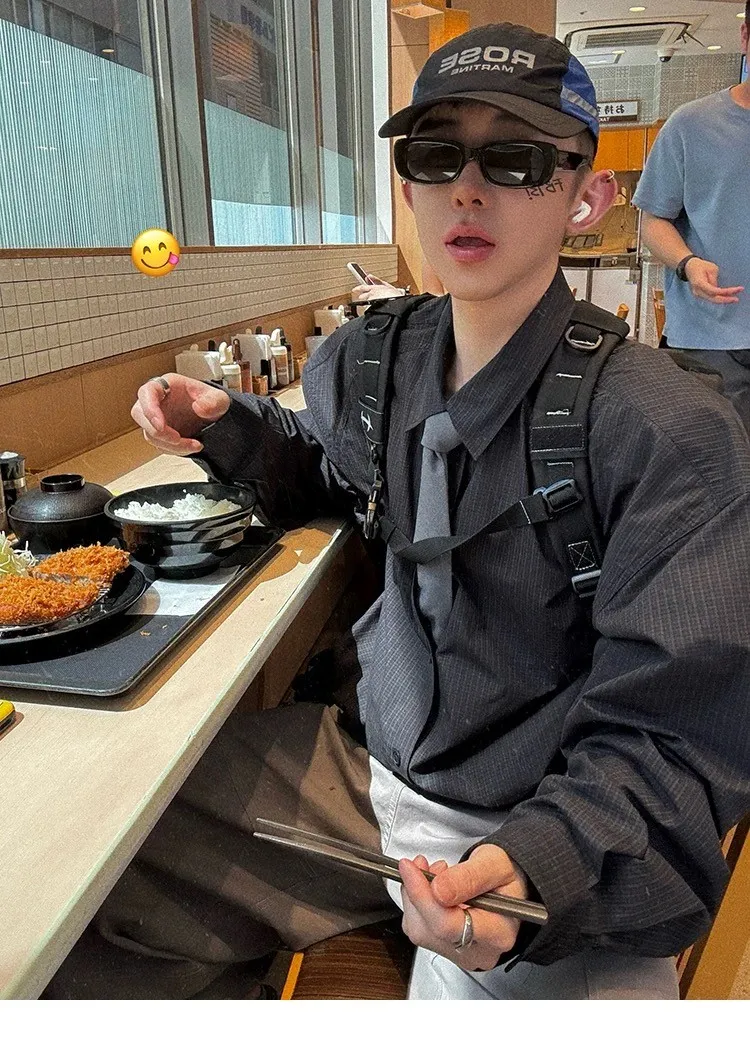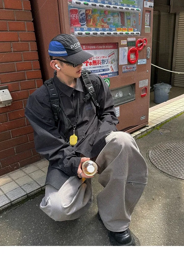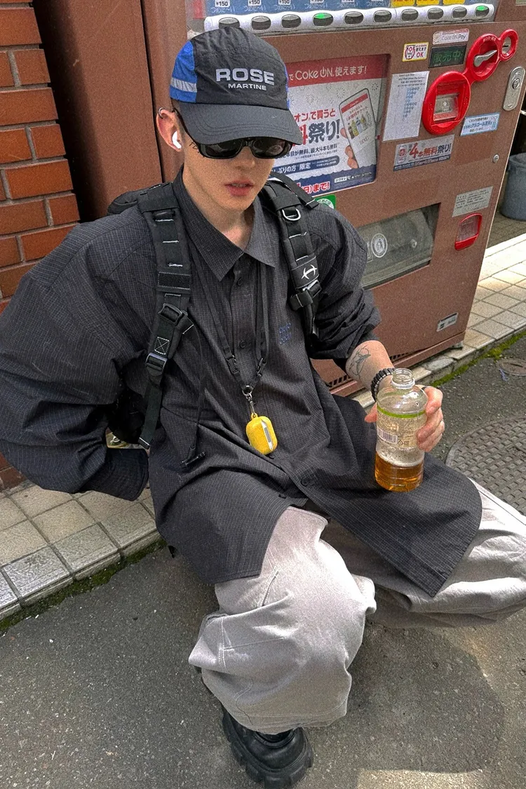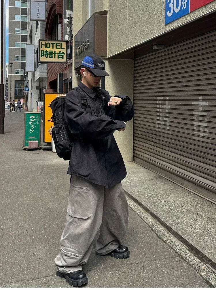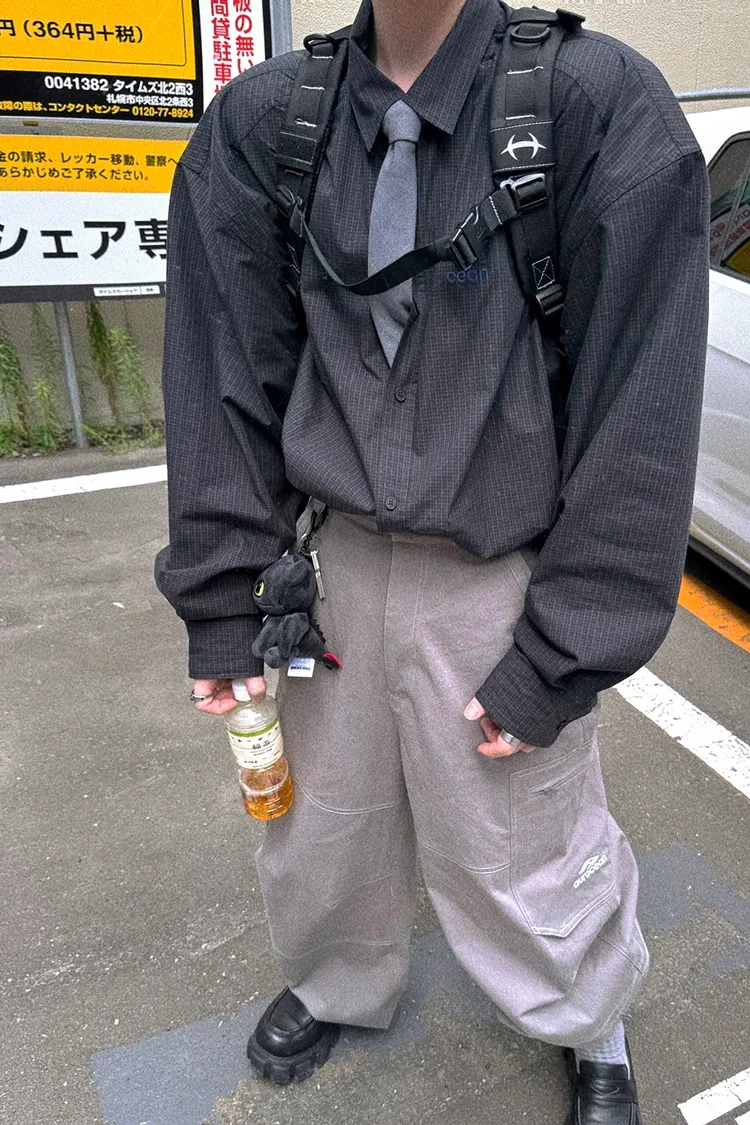 ARGUE 襯衫拼接 簡約舒適 襯衫 棉褲 套裝(黑/灰)