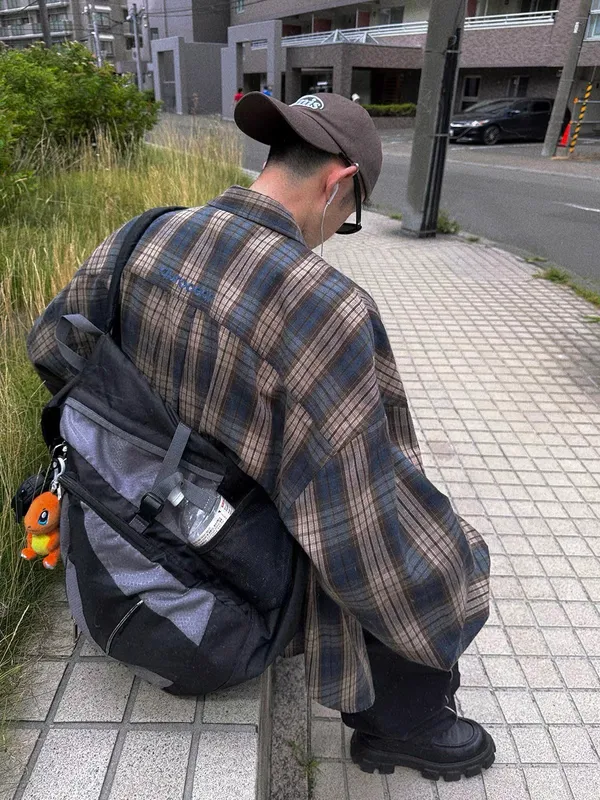 AUROCEAN 復古少年 大格紋 純棉磨毛 襯衫(深咖)