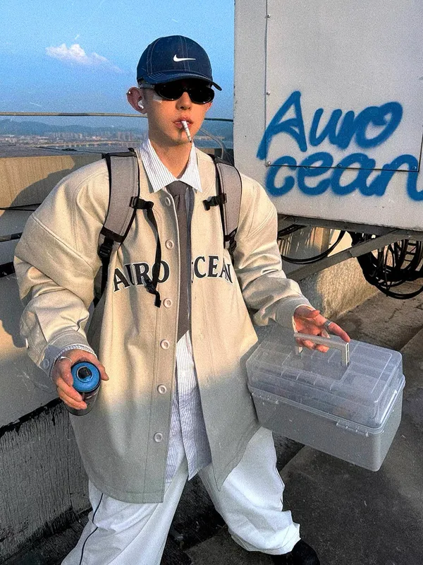 AUROCEAN 撞色刺繡 布章 棒球外套(奶灰)