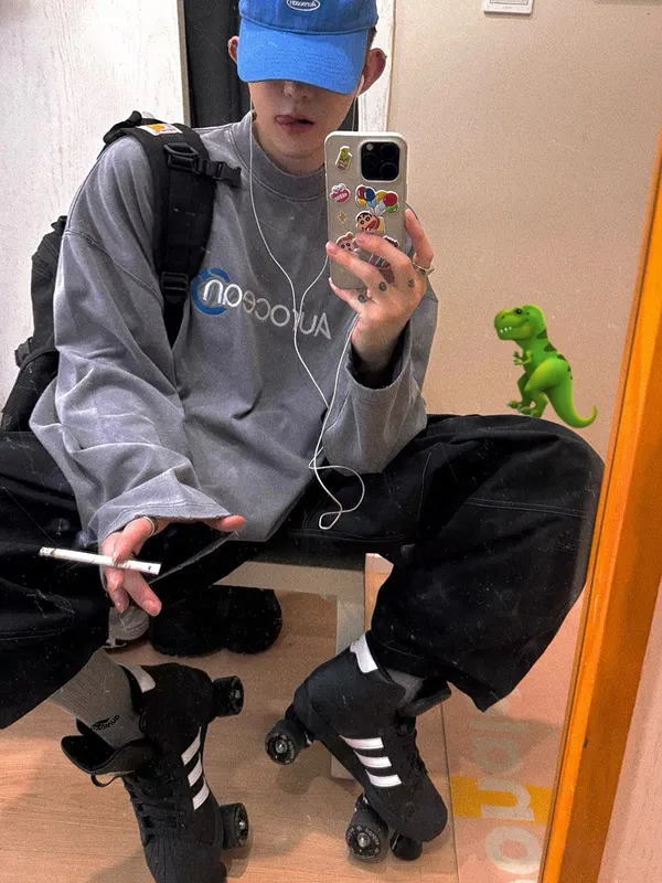 AUROCEAN 小高領 破壞水洗 LOGO 長袖(水洗灰)