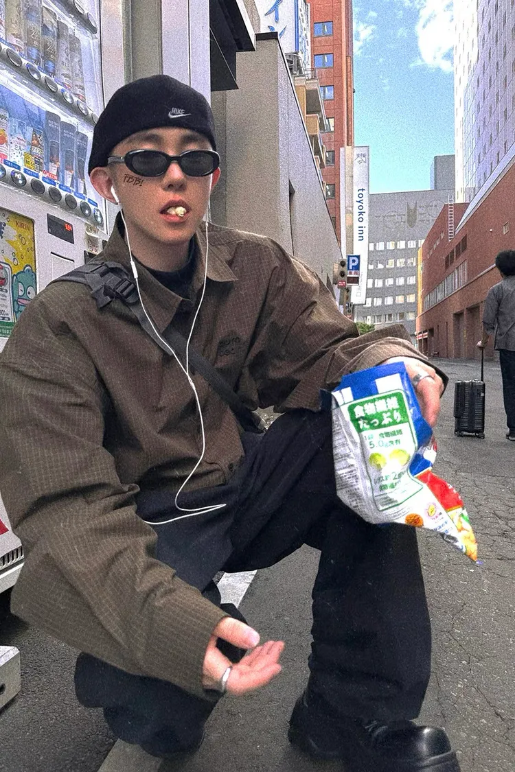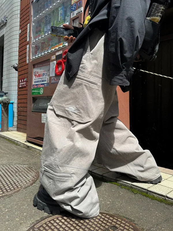 AUROCEAN 機能小子 多口袋縫線 寬鬆 長褲(灰色)