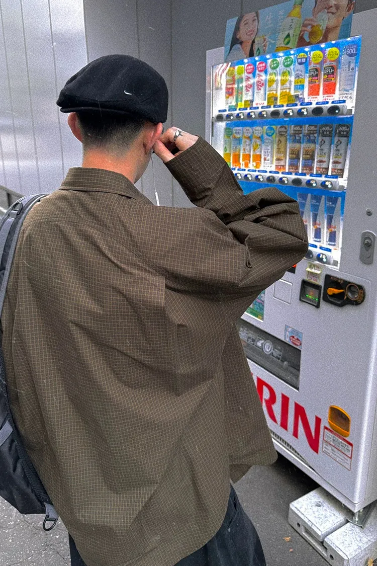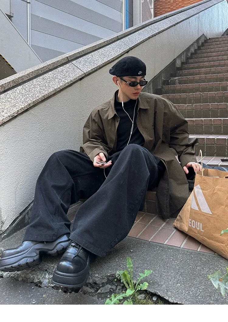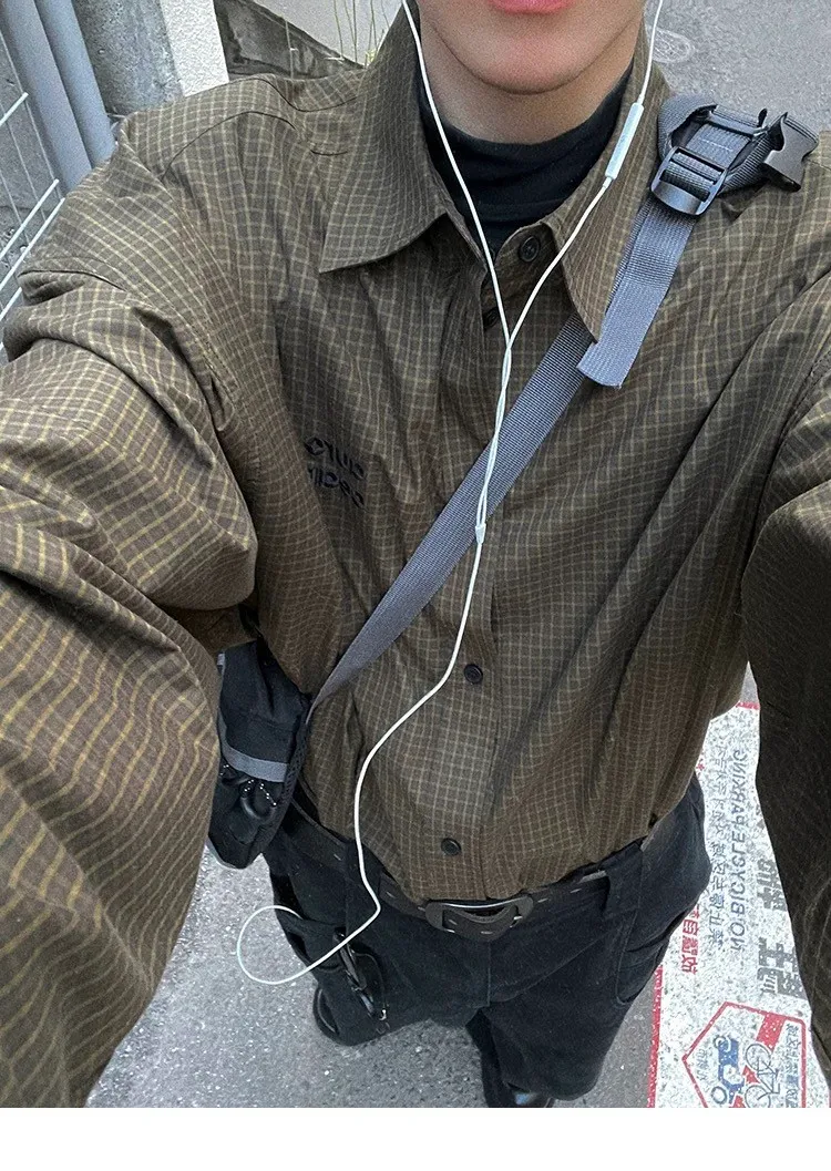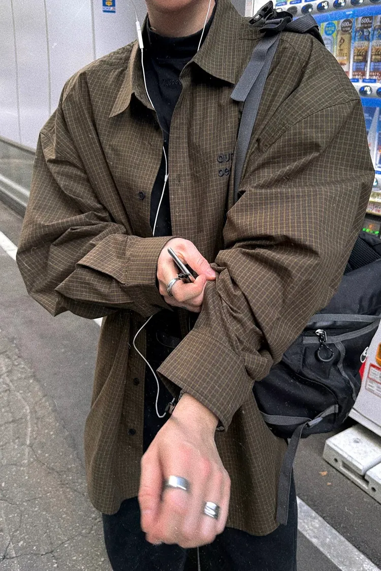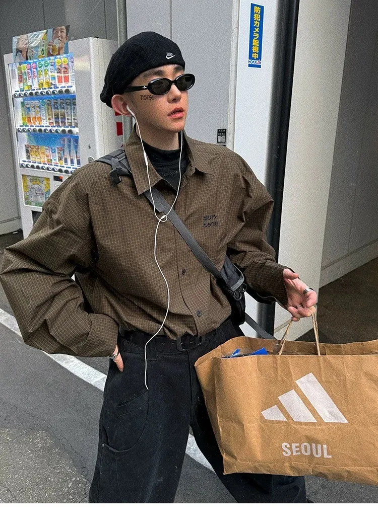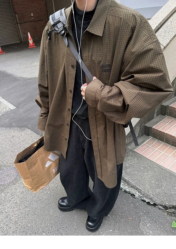 AUROCEAN 復古少年 大格紋 純棉磨毛 襯衫(深咖)