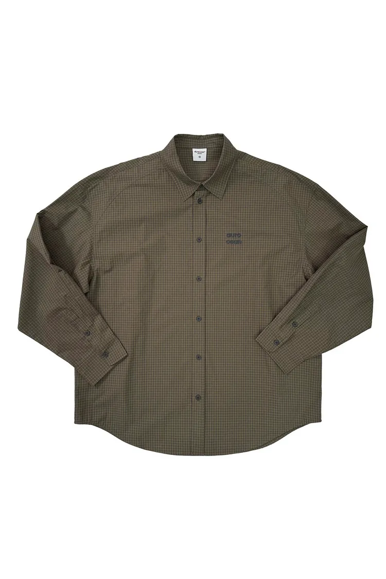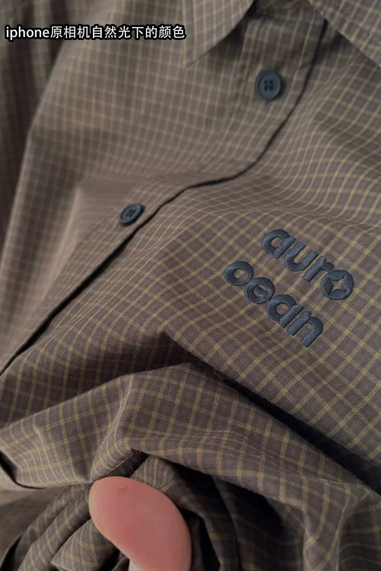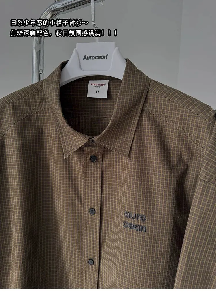 AUROCEAN 撞色刺繡 小格紋 學院 襯衫(焦糖)