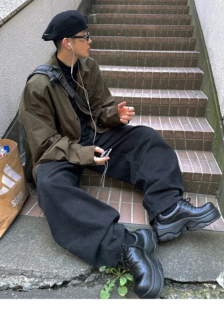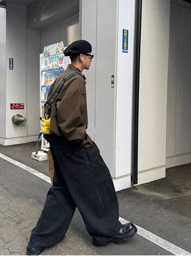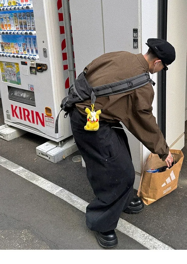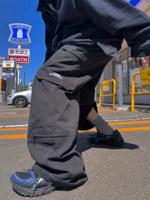 AUROCEAN 機能小子 多口袋縫線 寬鬆 長褲(黑色)