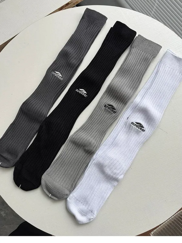AUROCEAN 學院少年 刺繡LOGO 小腿襪 堆堆襪 兩件組(黑/白/淺灰/深灰)