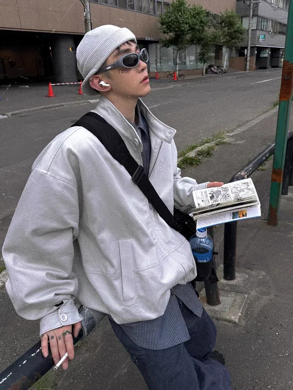 AUROCEAN 復古寬短 學院小立領 外套(奶灰)