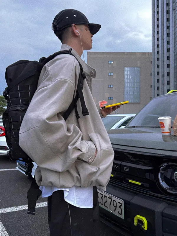 AUROCEAN 復古寬短 學院小立領 外套(卡其)