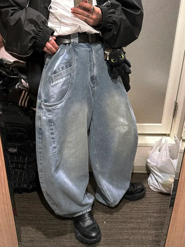 AUROCEAN 立體廓形 雙層口袋 彎刀 牛仔褲(淺藍)