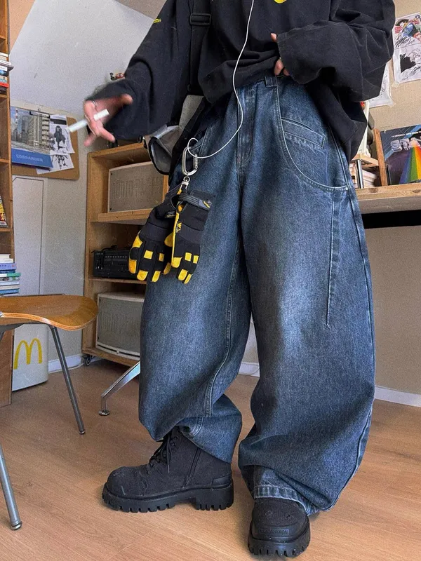 AUROCEAN 立體廓形 雙層口袋 彎刀 牛仔褲(深藍)