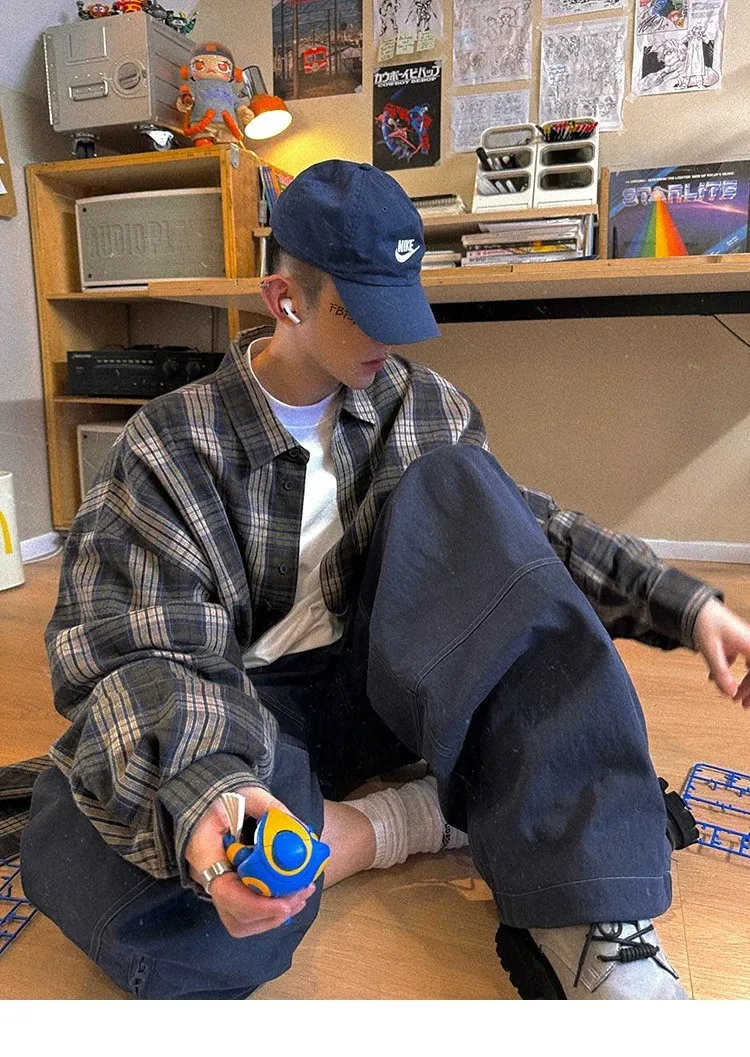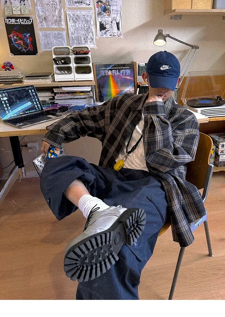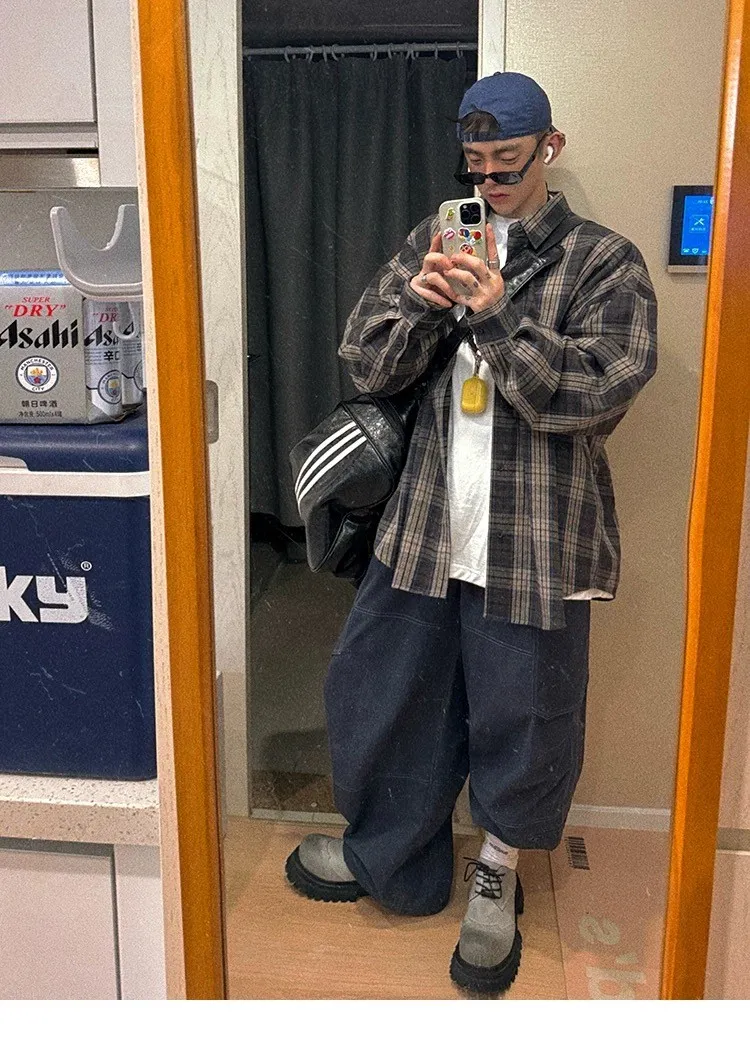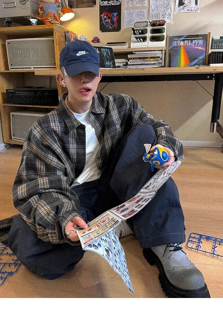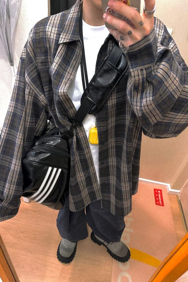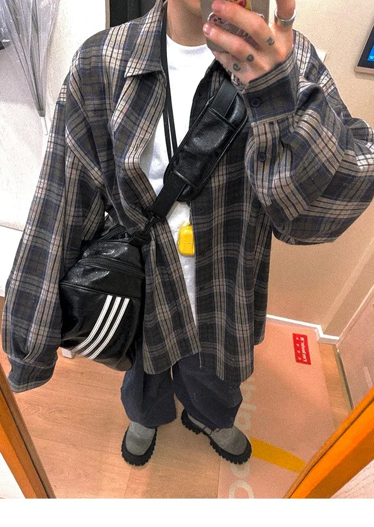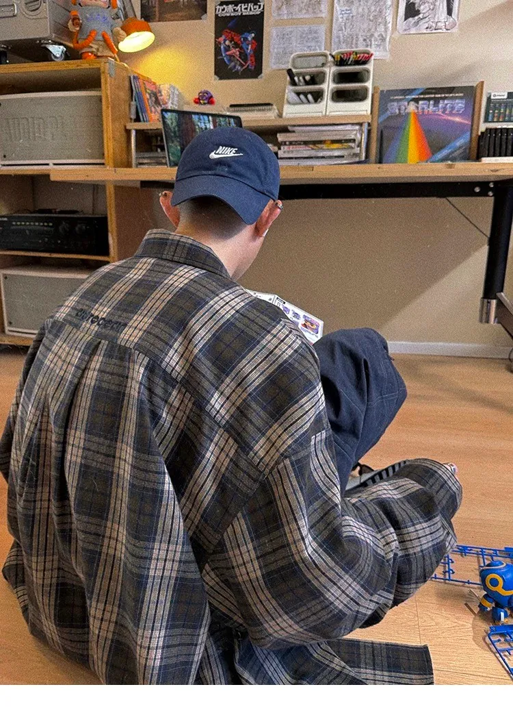AUROCEAN 復古少年 大格紋 純棉磨毛 襯衫(深咖)