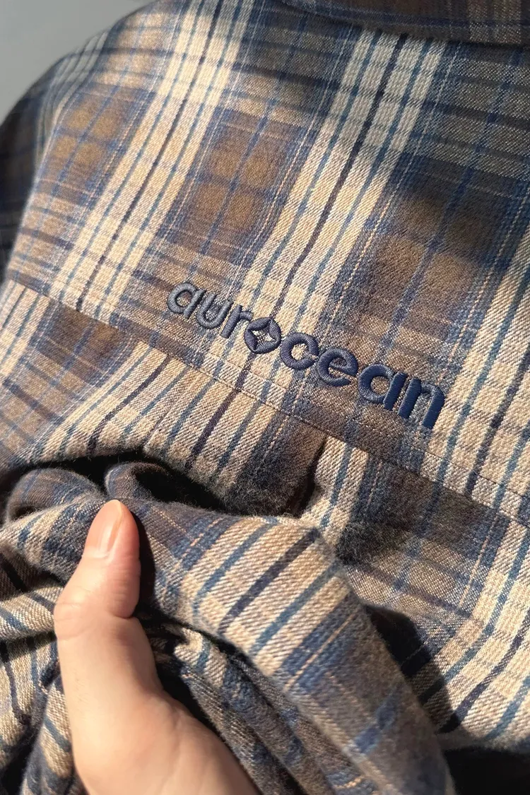 AUROCEAN 復古少年 大格紋 純棉磨毛 襯衫(藍咖)