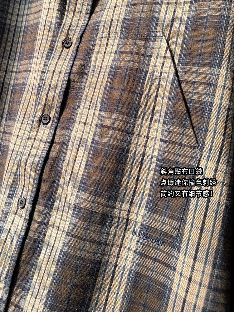 AUROCEAN 撞色刺繡 小格紋 學院 襯衫(焦糖)