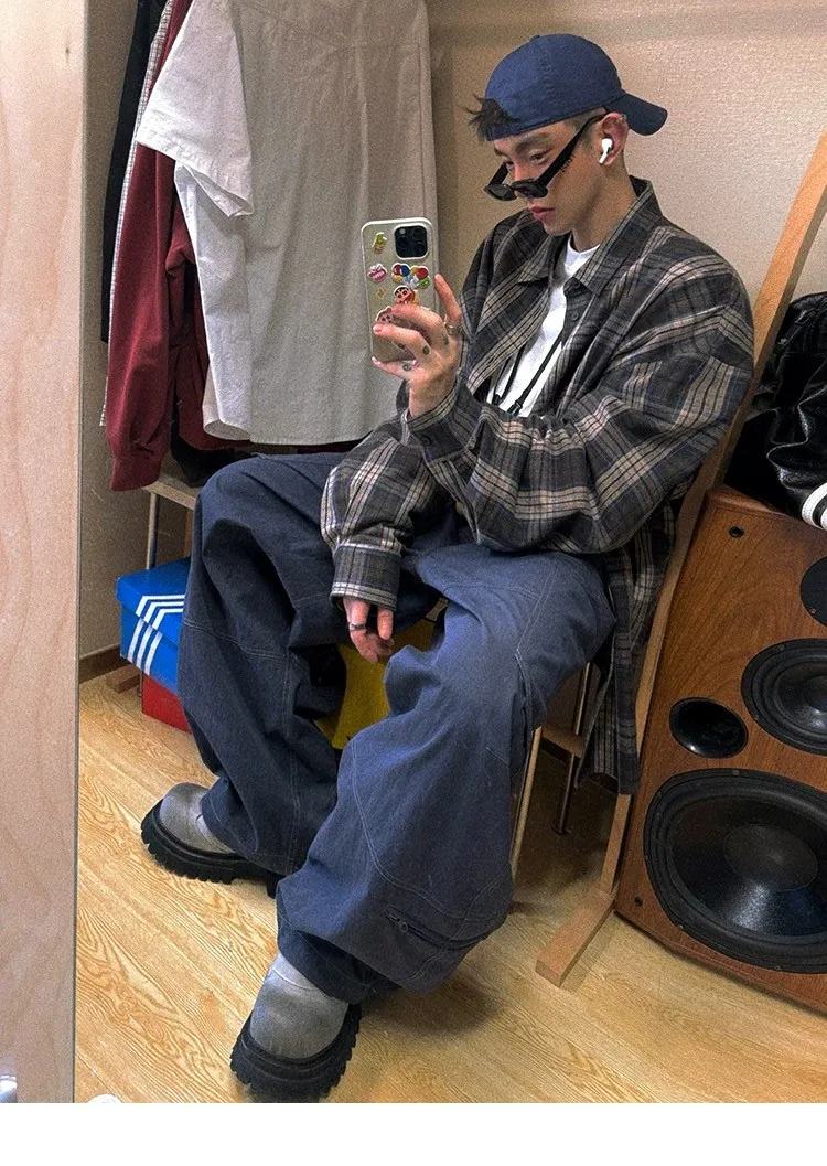 AUROCEAN MIU系穿搭 小格子 襯衫(深藍)