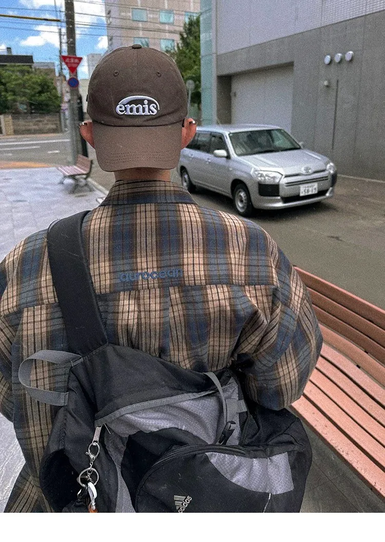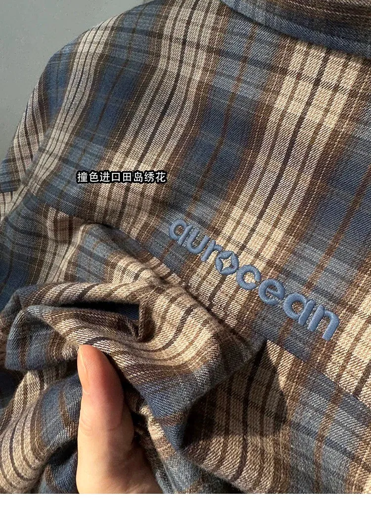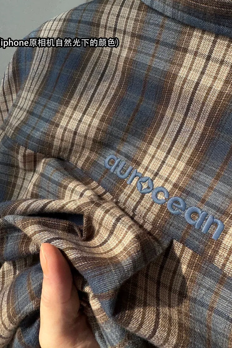 AUROCEAN 撞色刺繡 小格紋 學院 襯衫(焦糖)