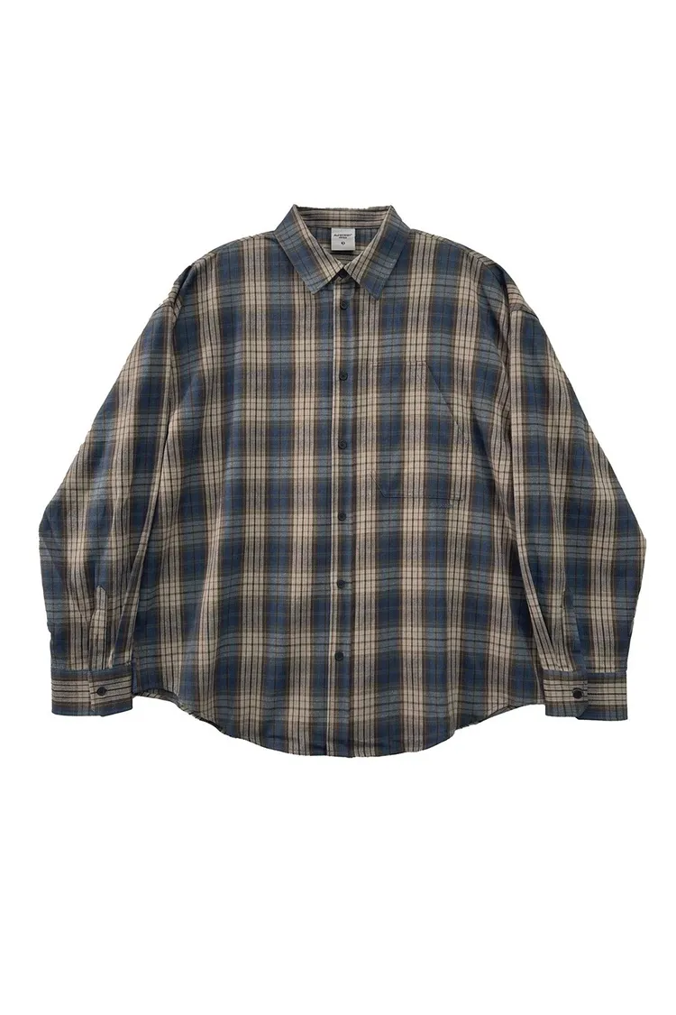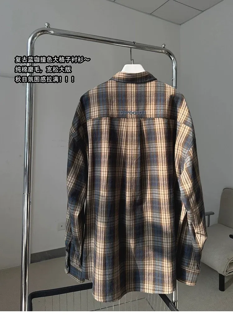 AUROCEAN 復古少年 大格紋 純棉磨毛 襯衫(藍咖)
