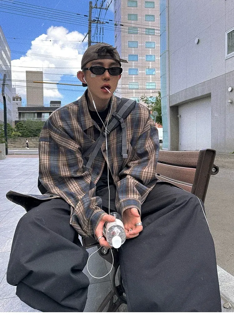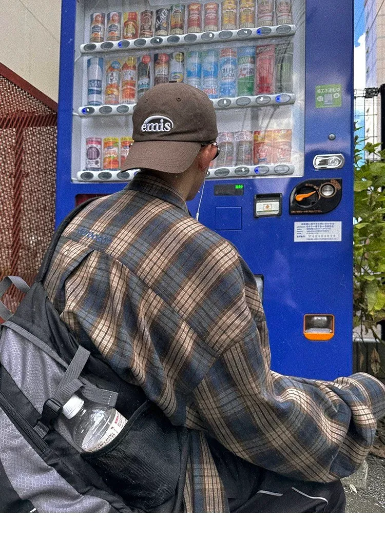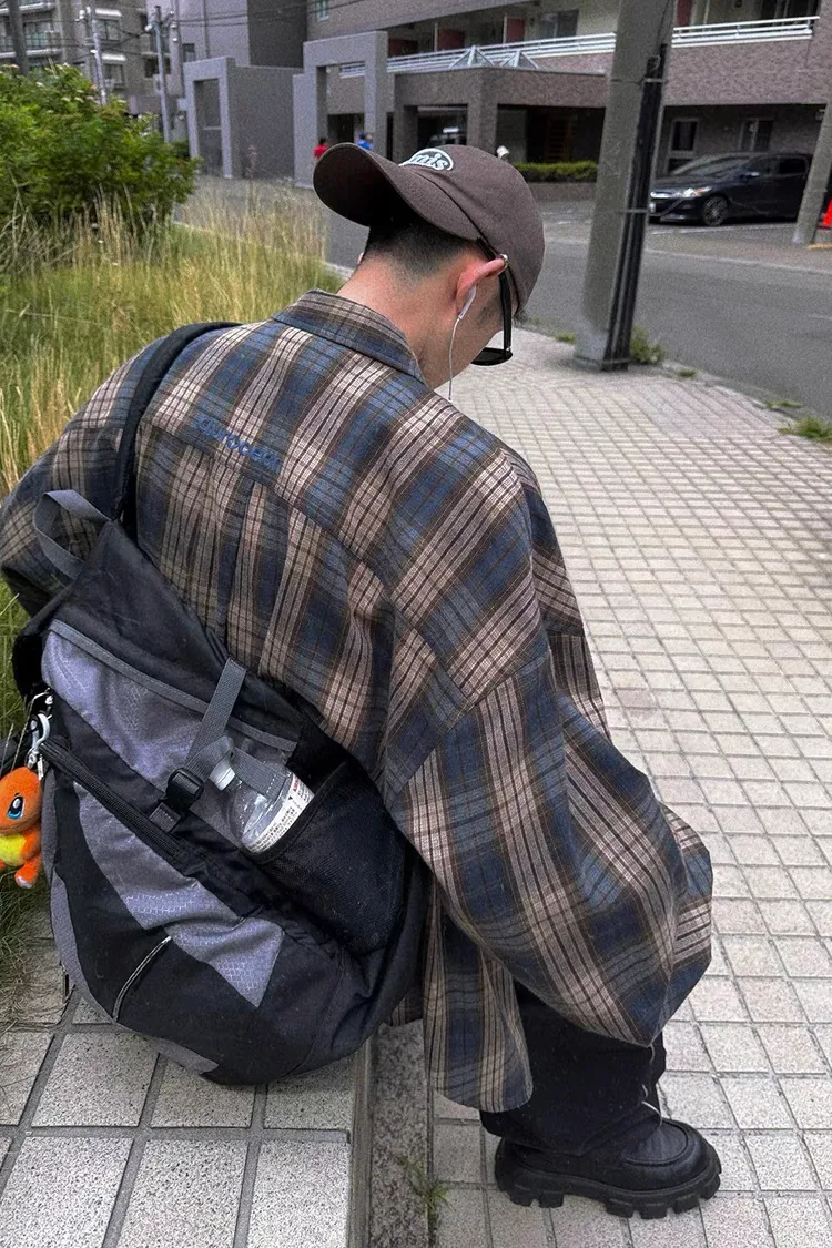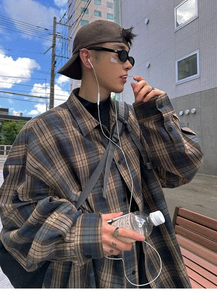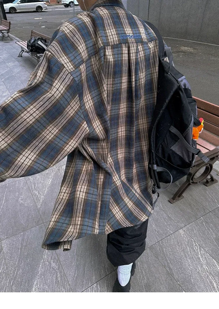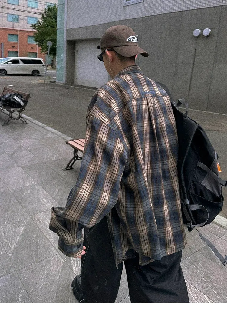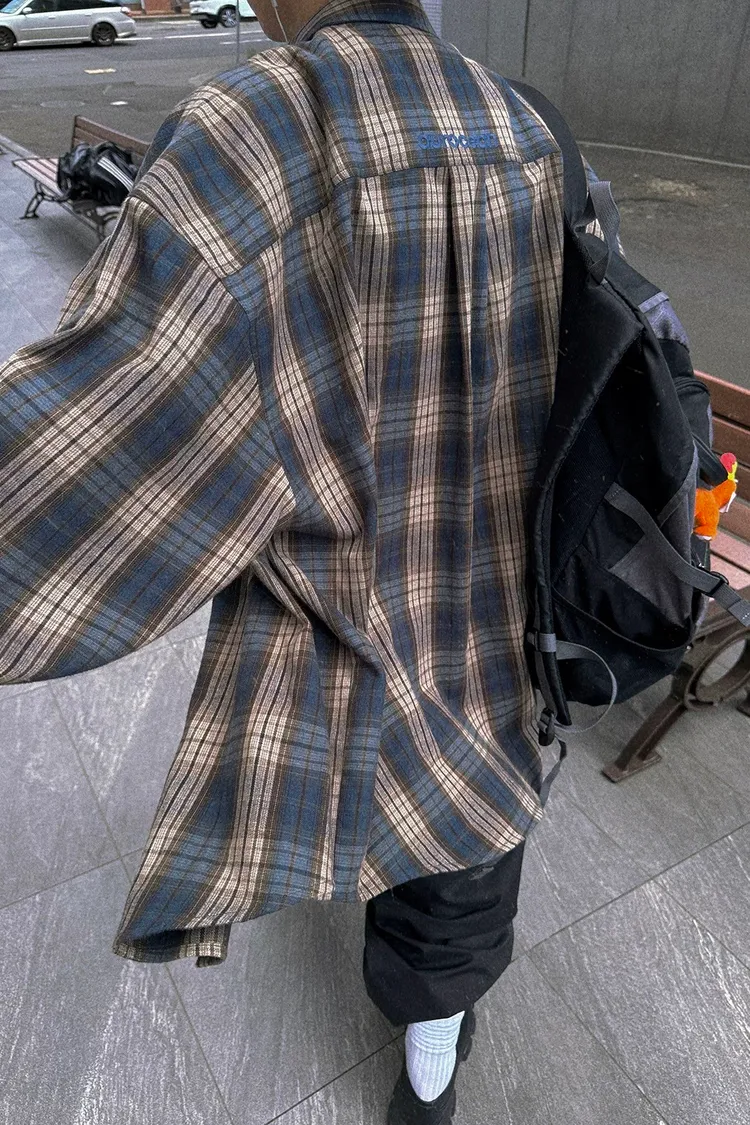 AUROCEAN 復古少年 大格紋 純棉磨毛 襯衫(深咖)