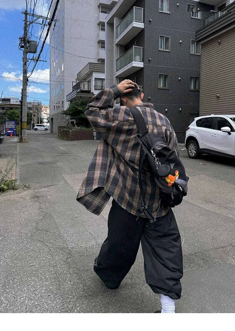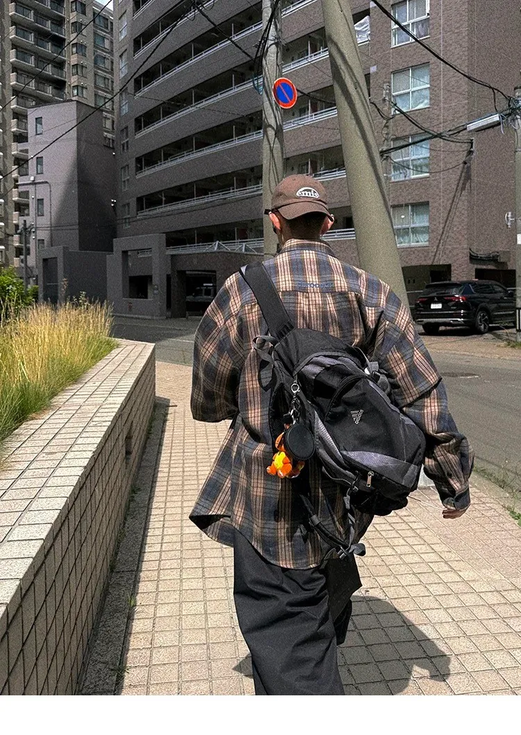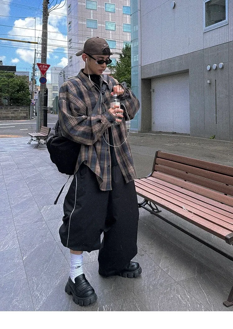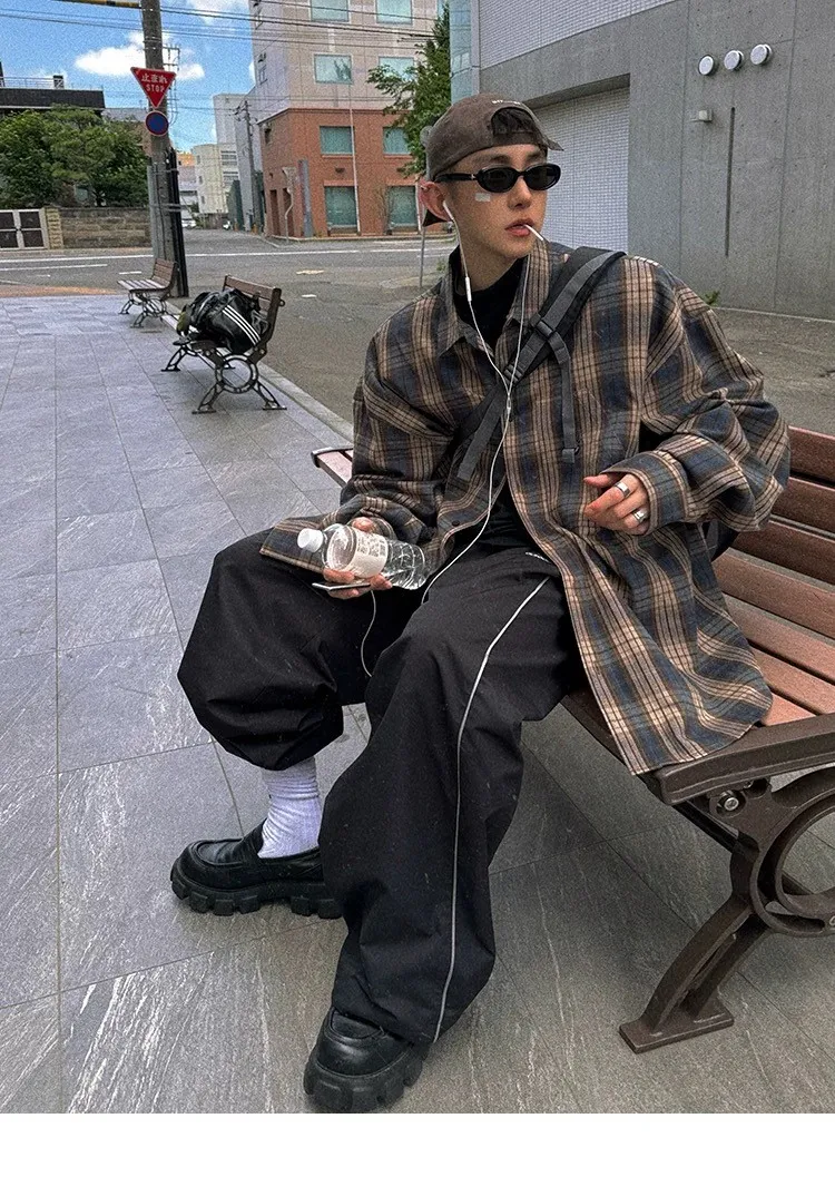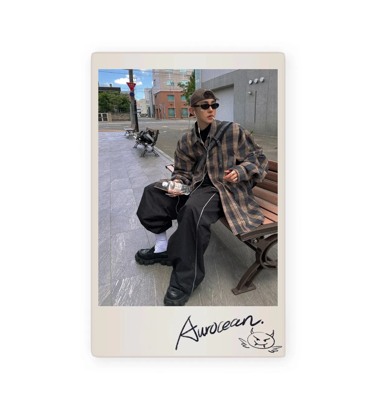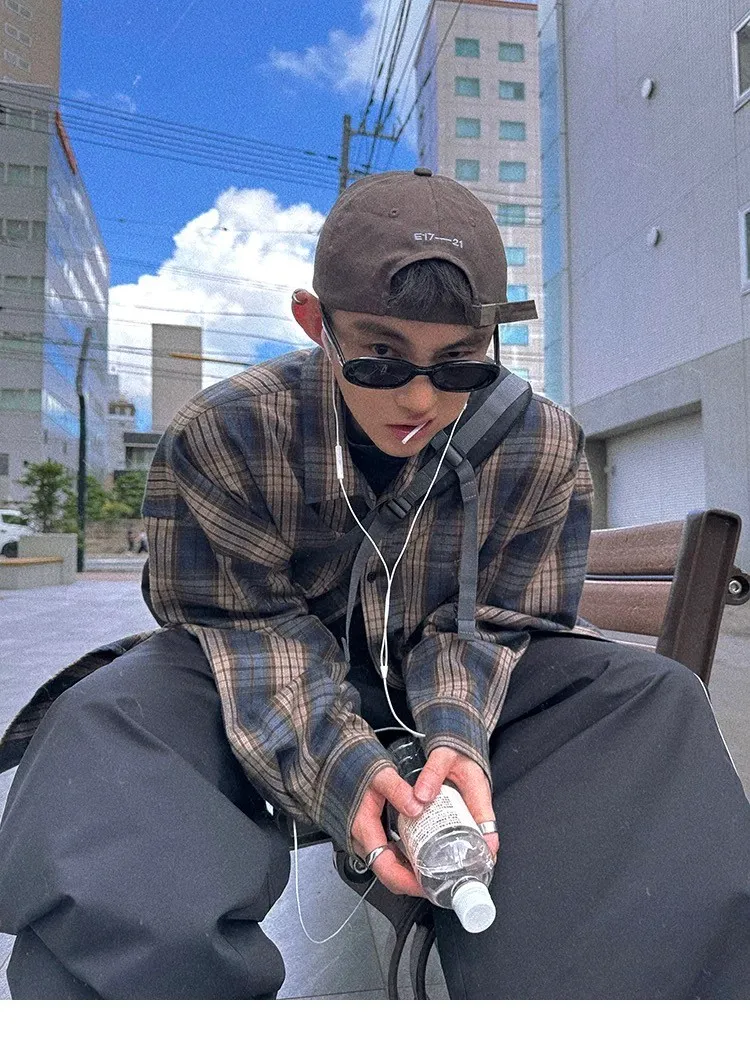 AUROCEAN 復古少年 大格紋 純棉磨毛 襯衫(深咖)